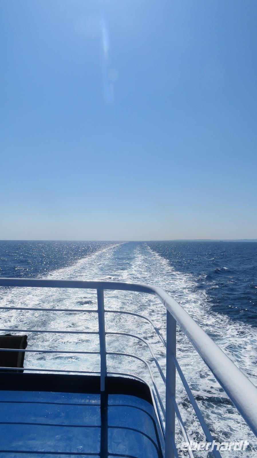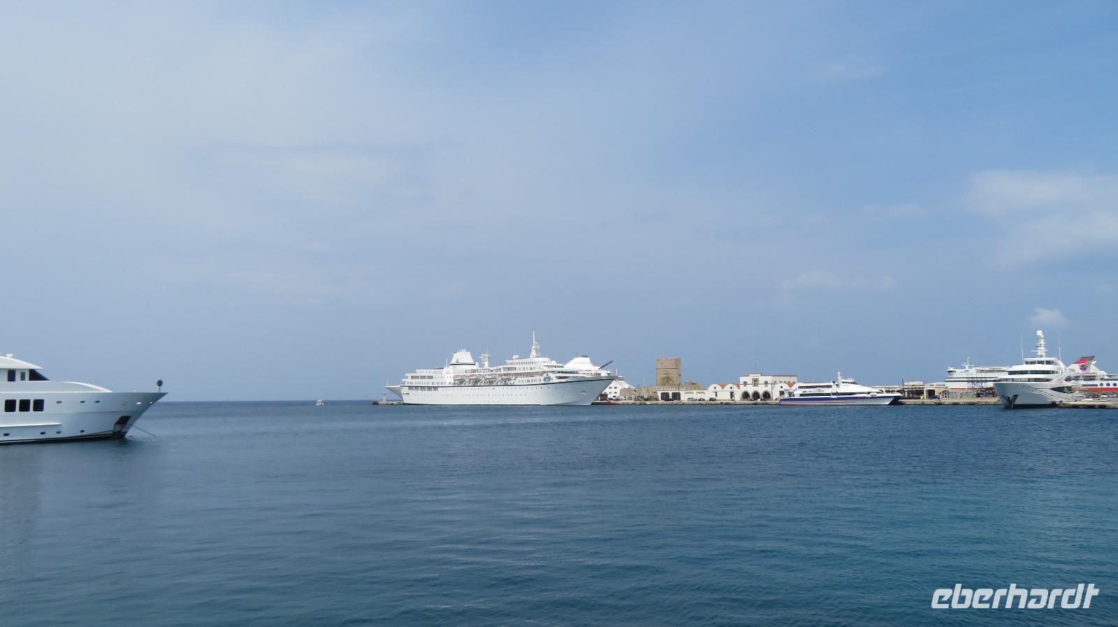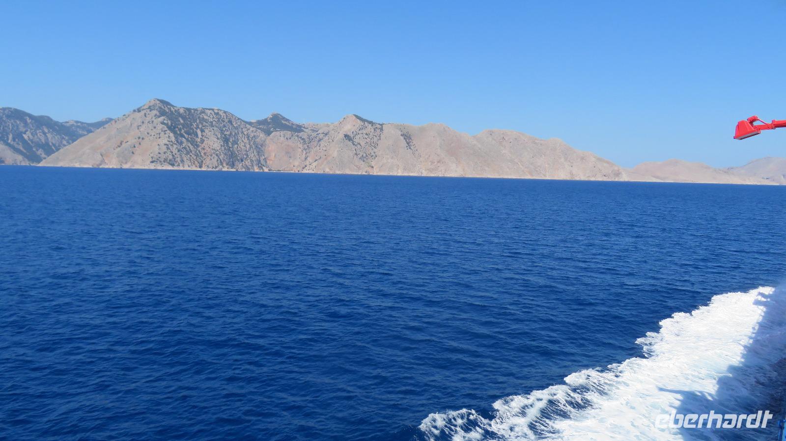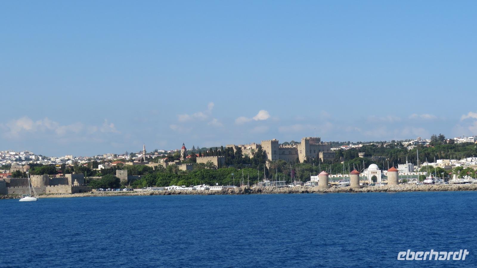Pünktlich 16.30 Uhr legt die Fähre wieder ab und wir fahren zurück nach Rhodos. Am Hafen wartet bereits der Bus der uns zum Hotel bringt.