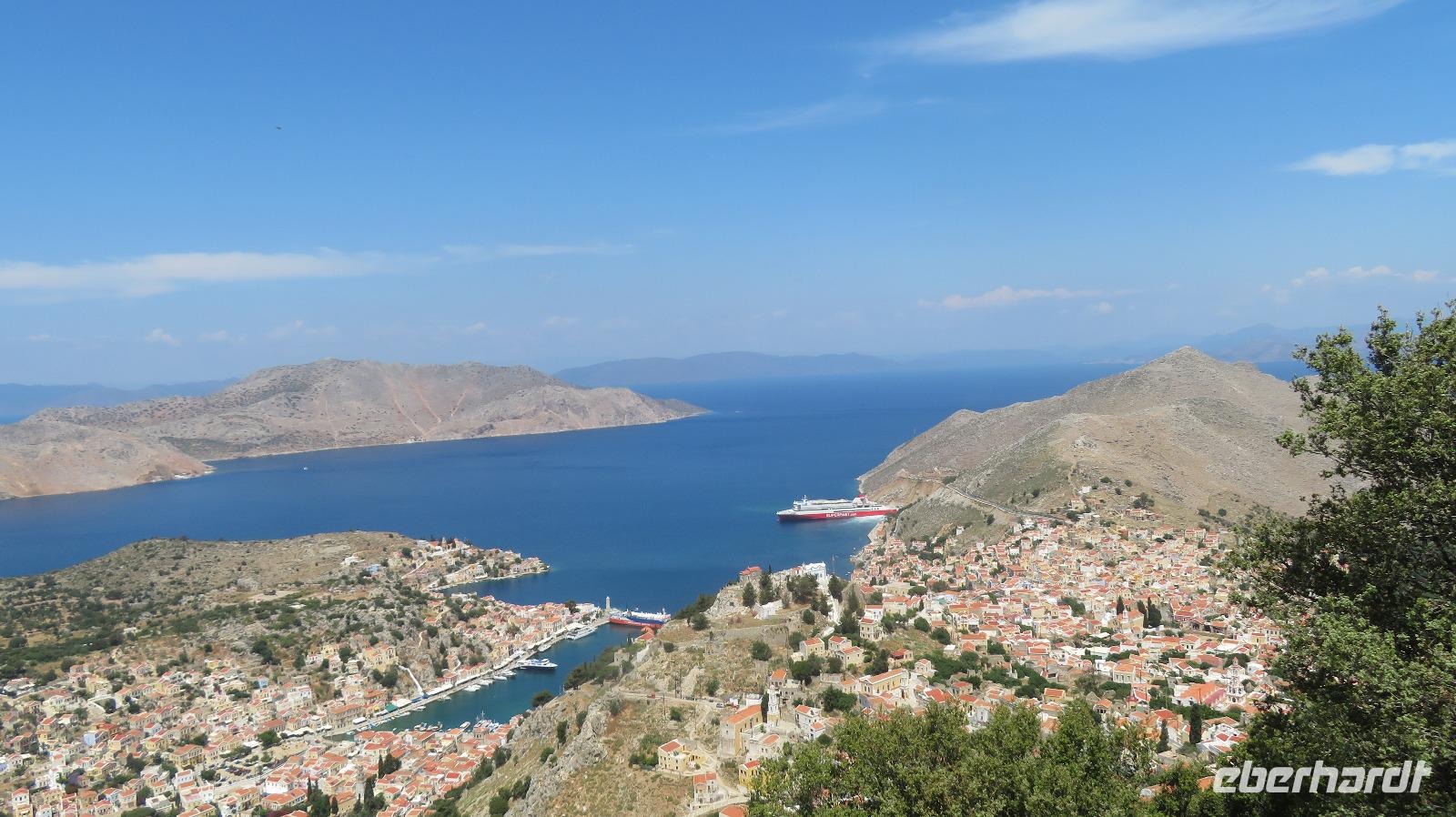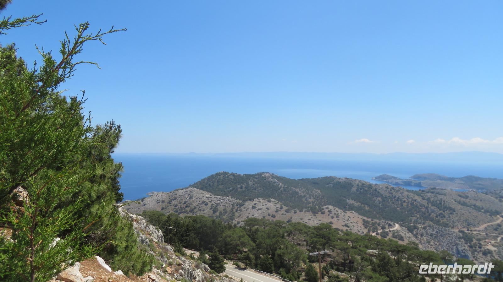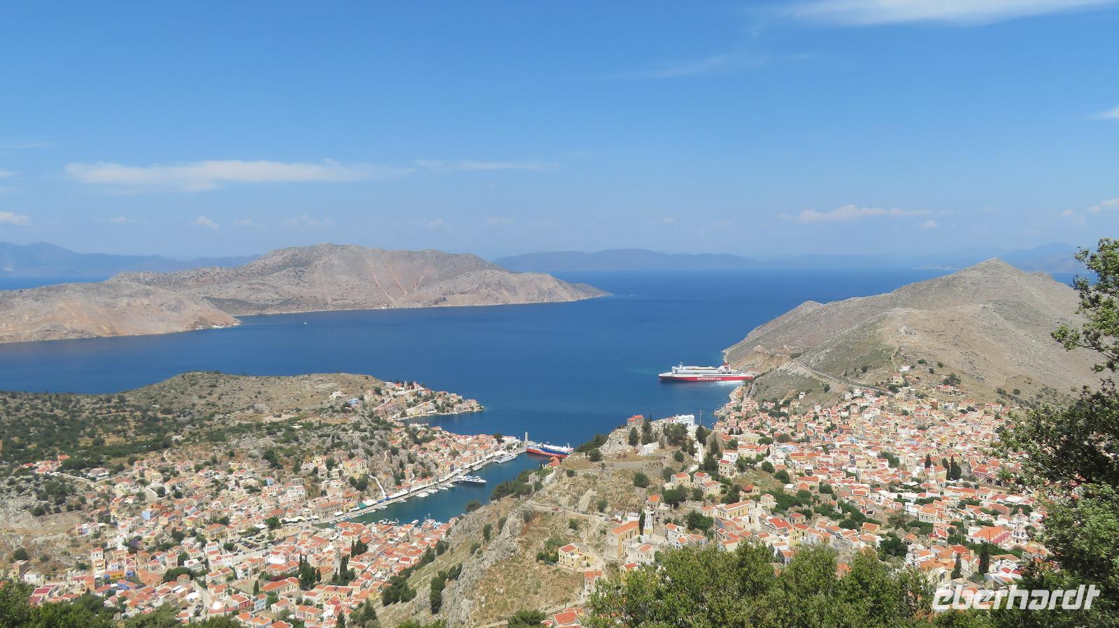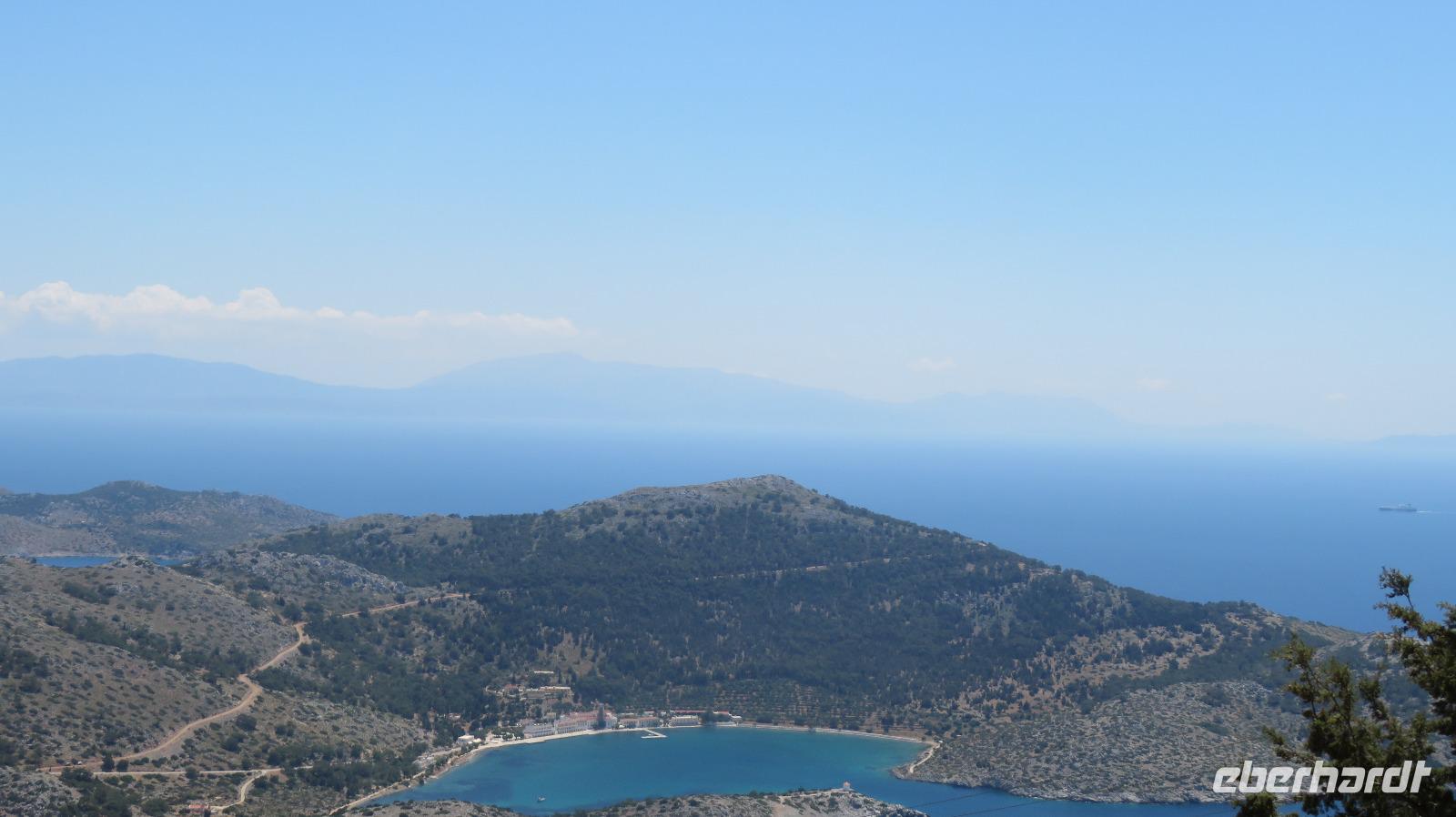 Auf der Rückfahrt zum Hafen machen wir auch Fotostopps. Die wunderschöne Aussicht, ob aufs Kloster, Meer oder Symi ist genial.