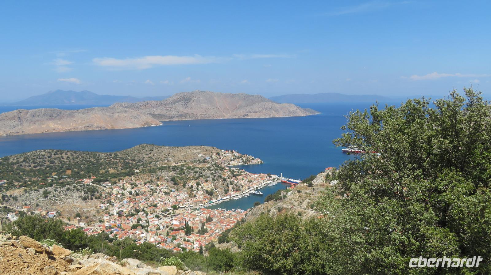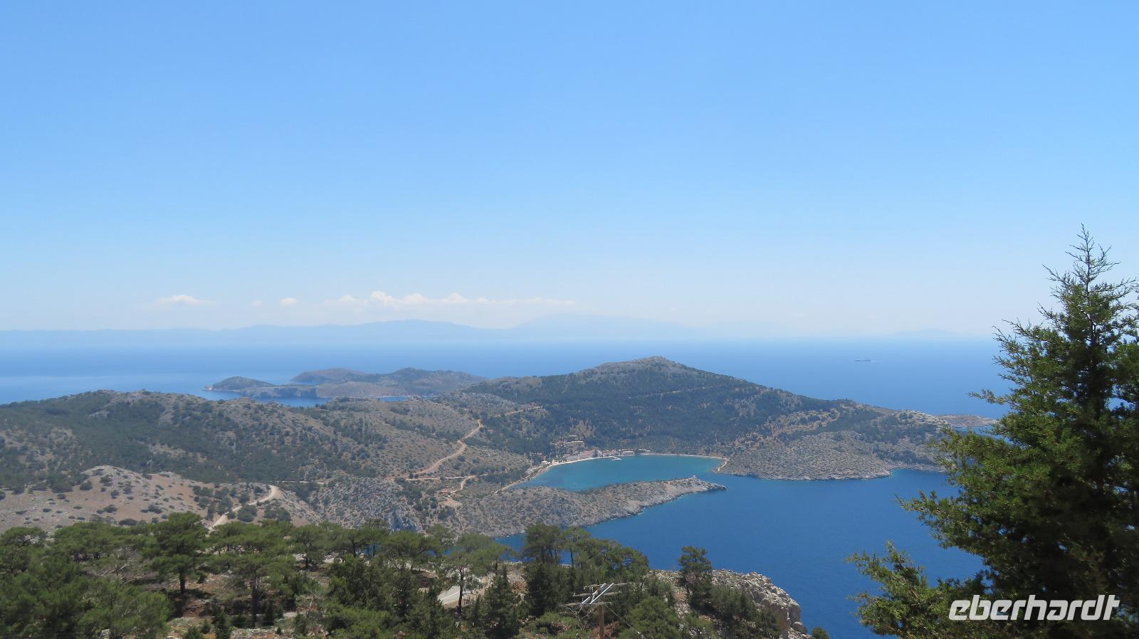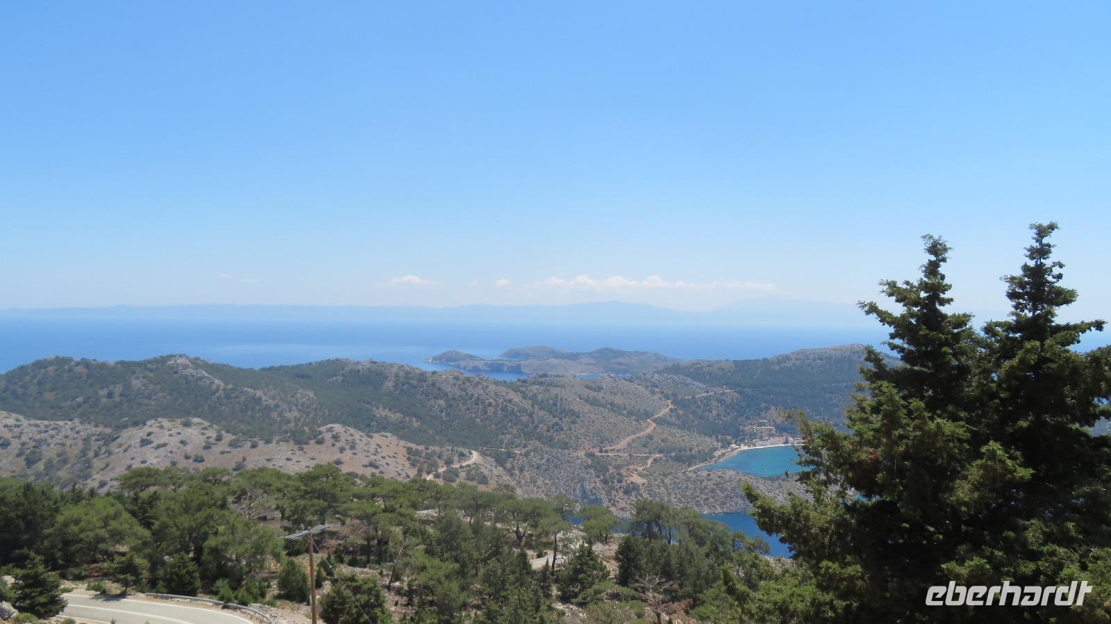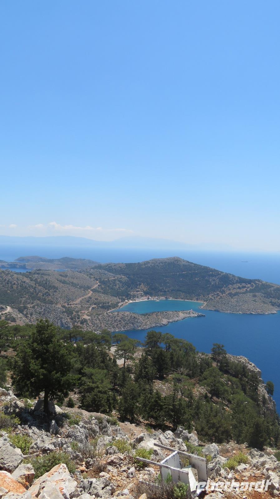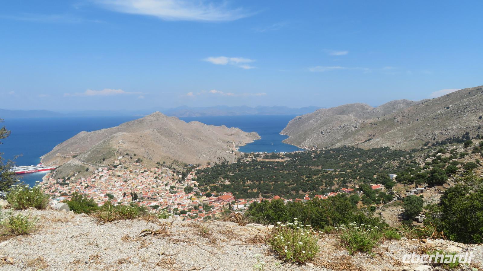 Auf der Rückfahrt zum Hafen machen wir auch Fotostopps. Die wunderschöne Aussicht, ob aufs Kloster, Meer oder Symi ist genial.