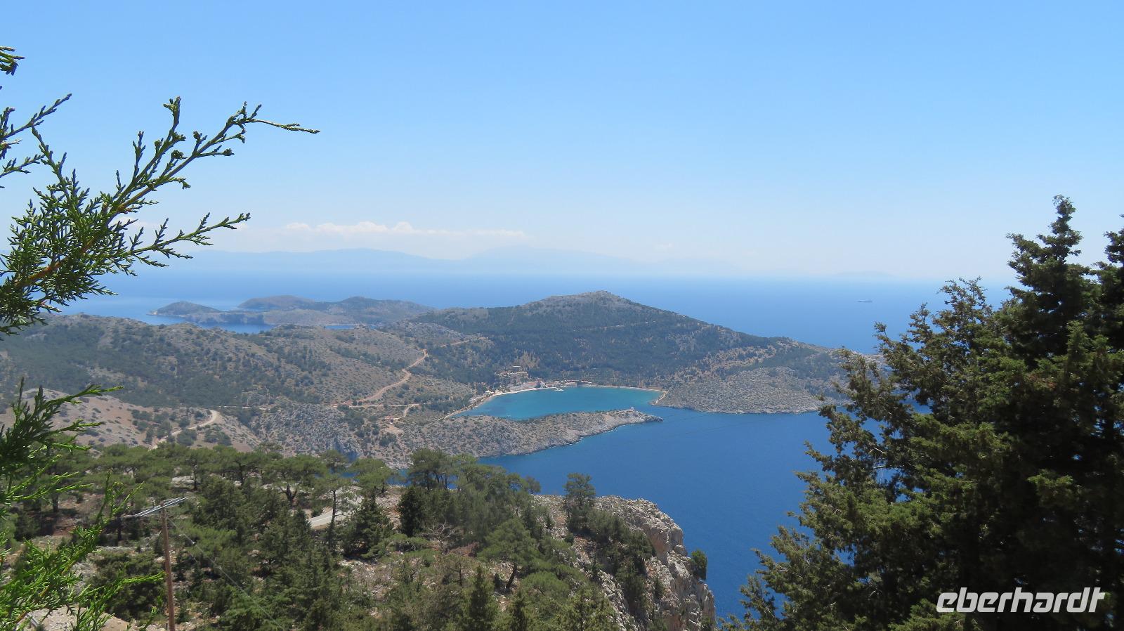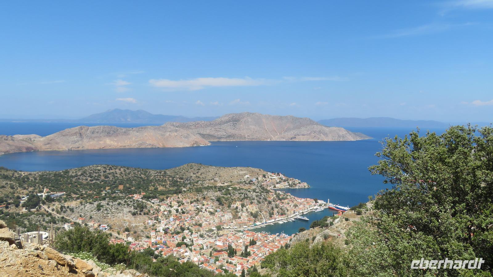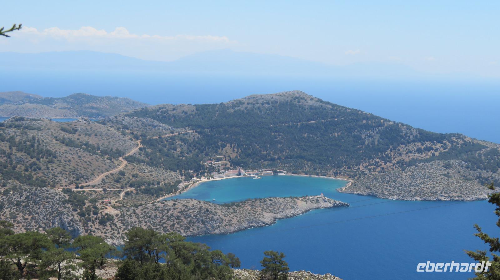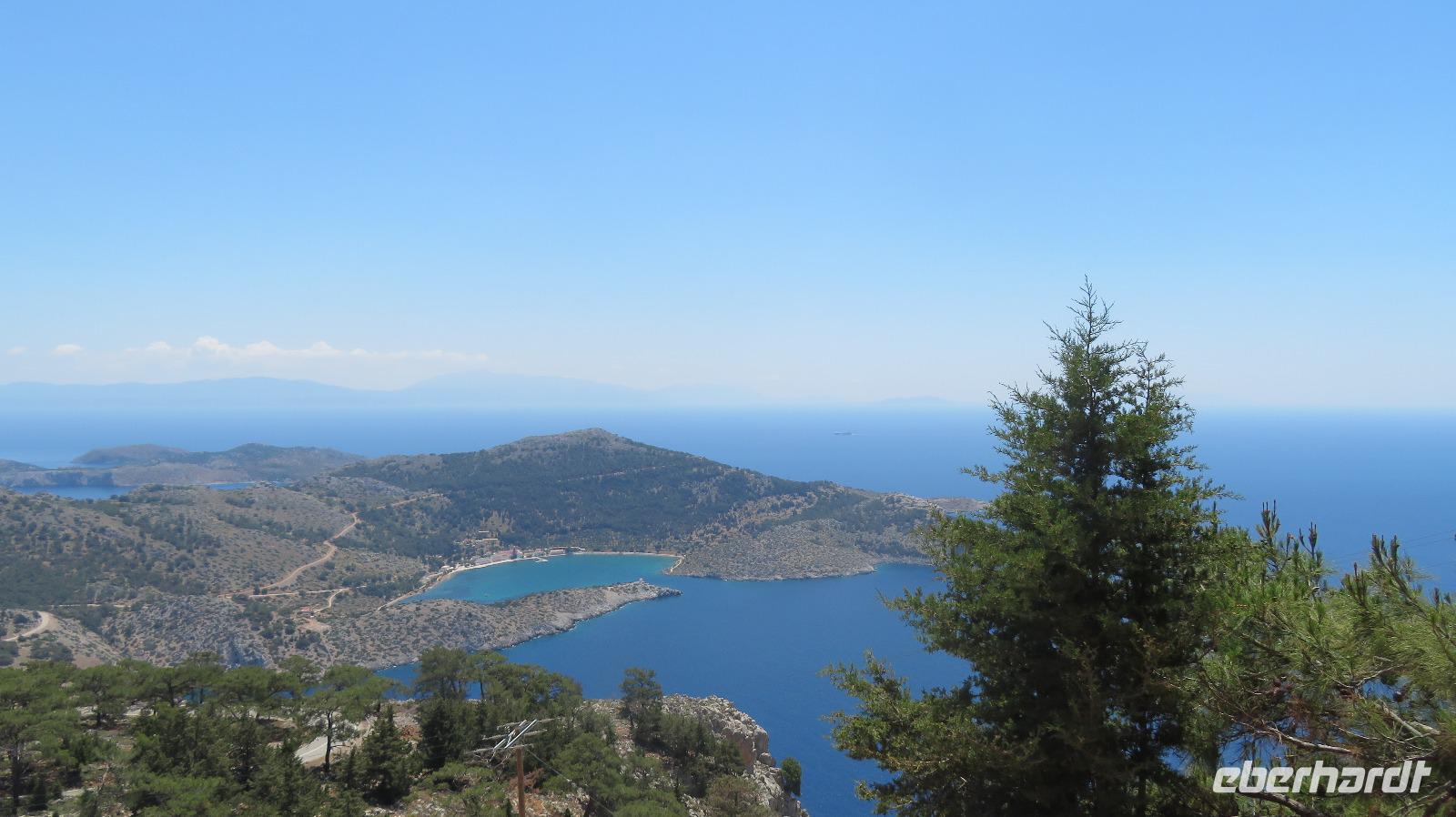 Auf der Rückfahrt zum Hafen machen wir auch Fotostopps. Die wunderschöne Aussicht, ob aufs Kloster, Meer oder Symi ist genial.