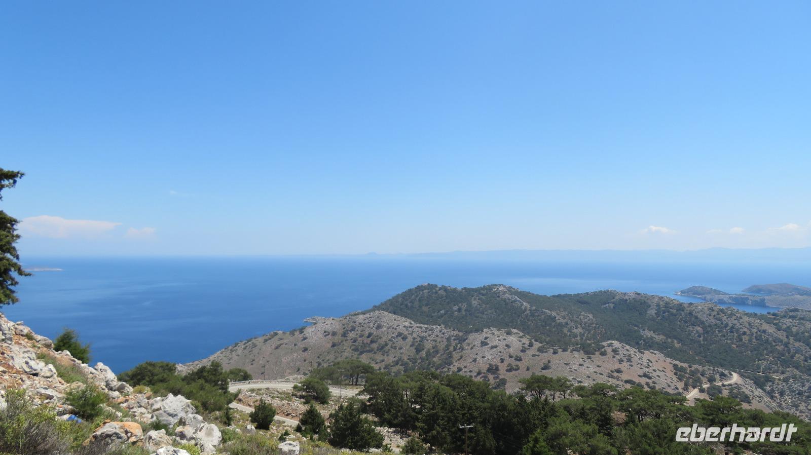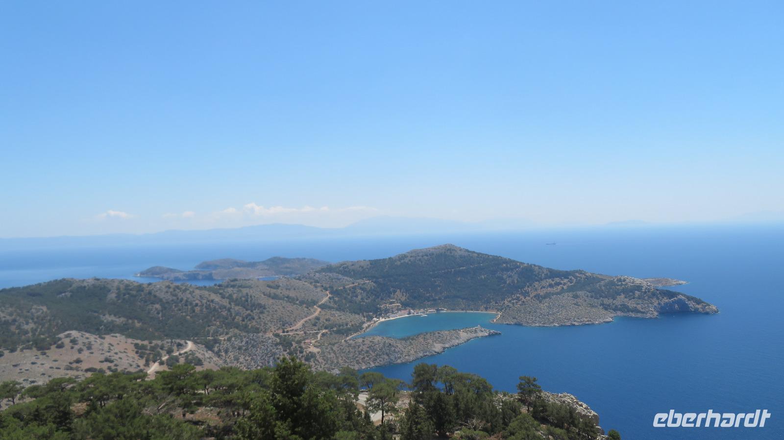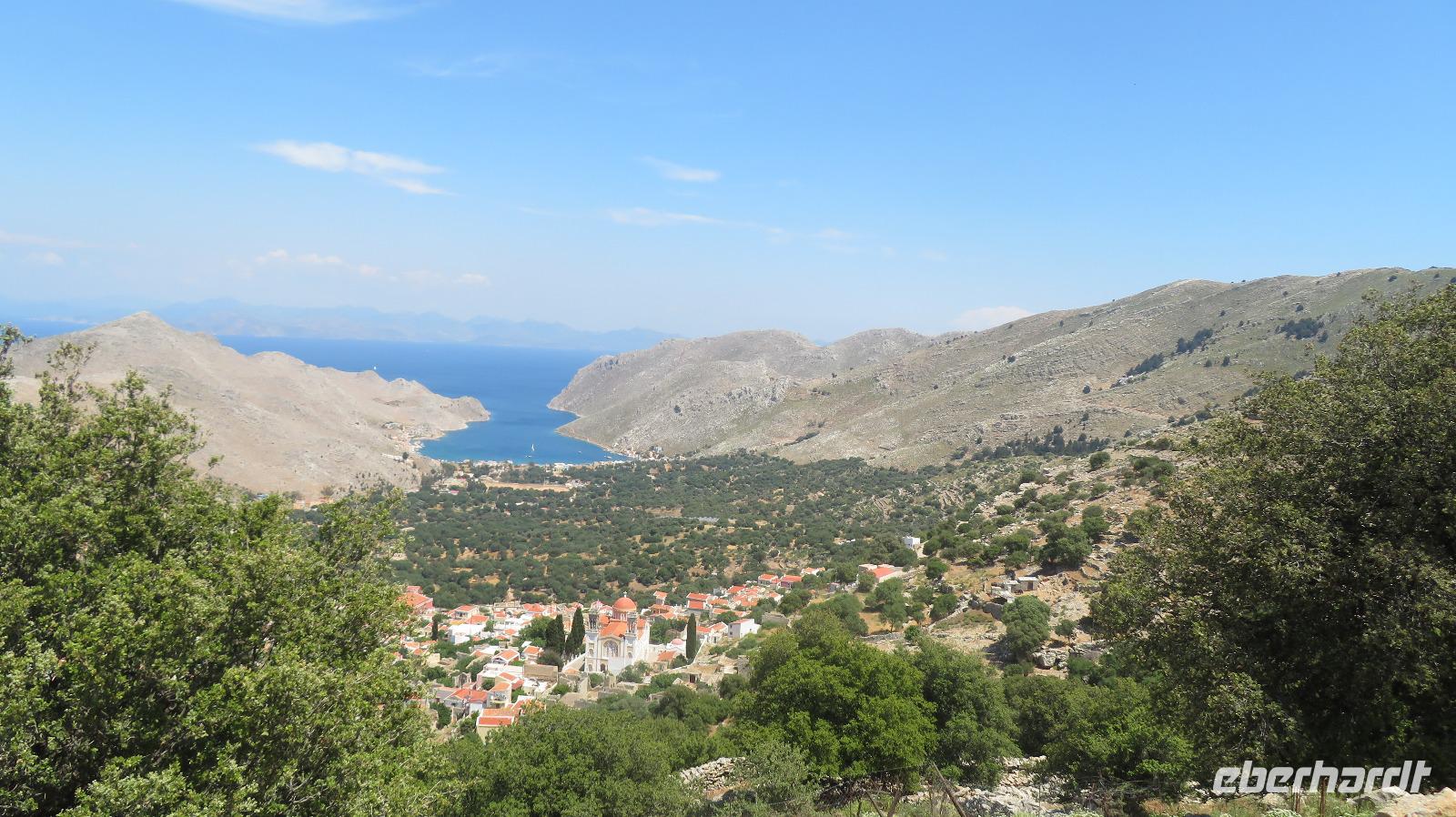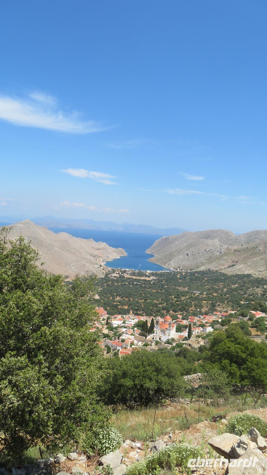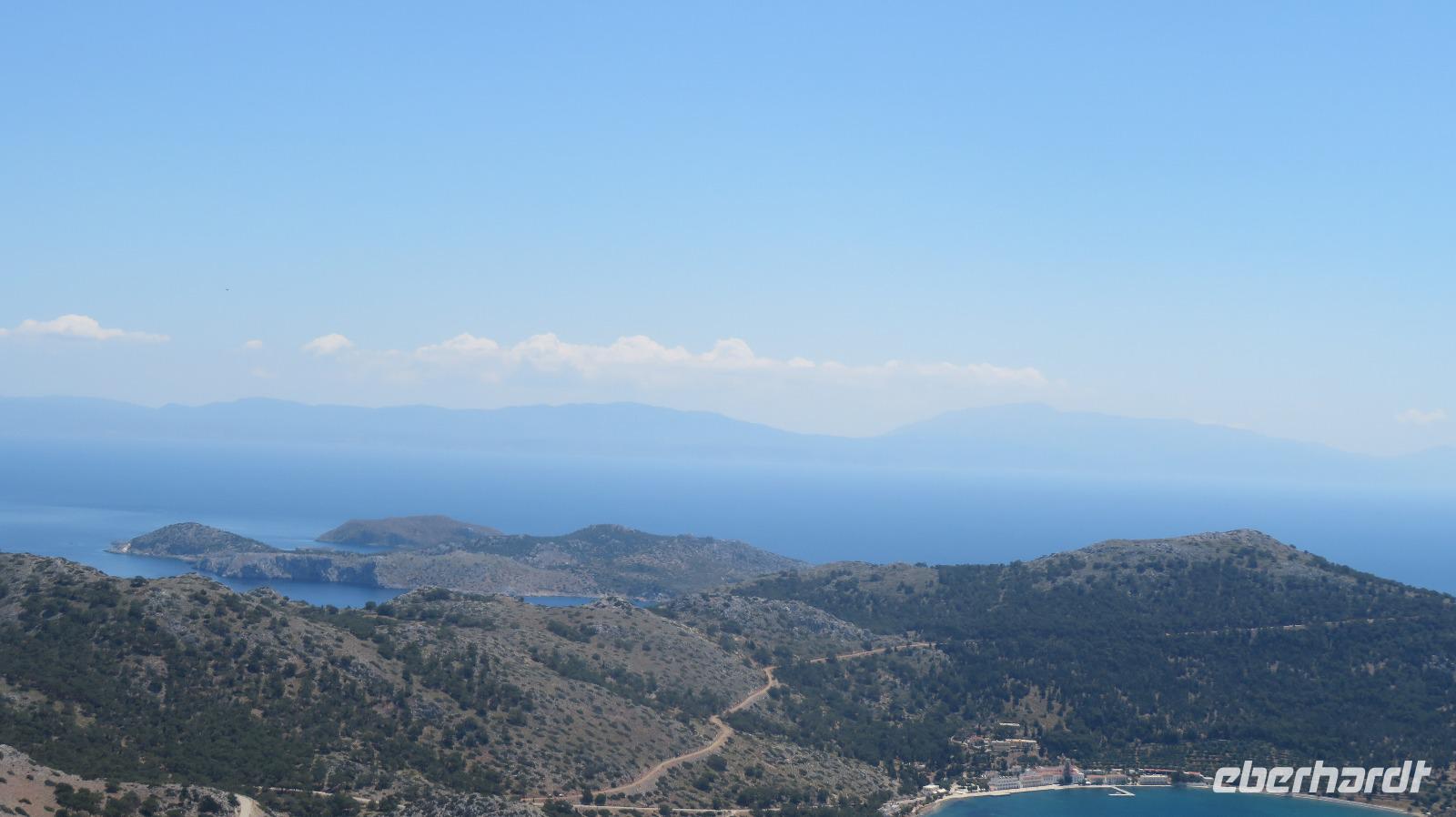 Auf der Rückfahrt zum Hafen machen wir auch Fotostopps. Die wunderschöne Aussicht, ob aufs Kloster, Meer oder Symi ist genial.