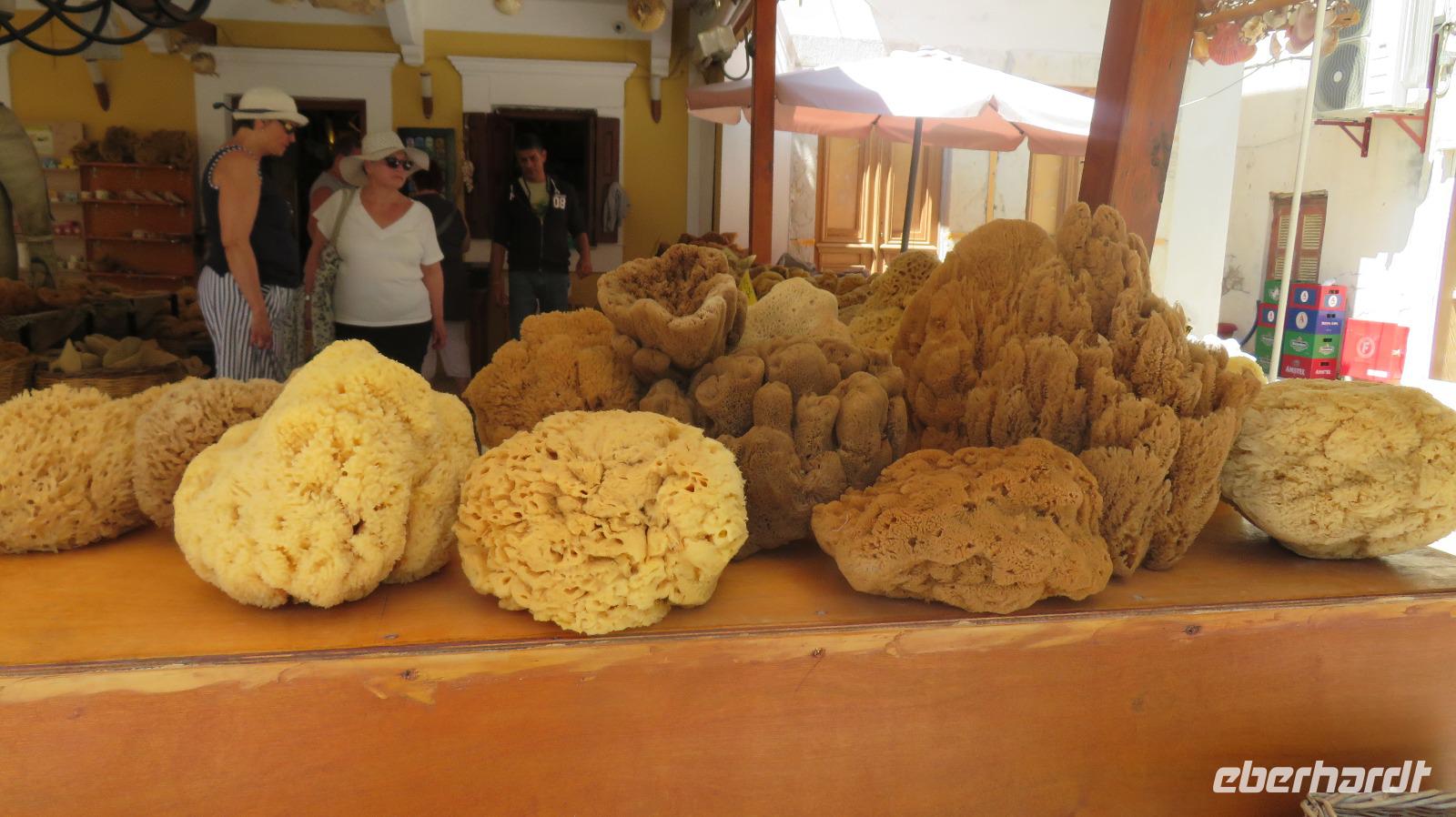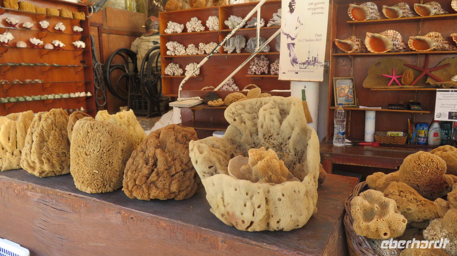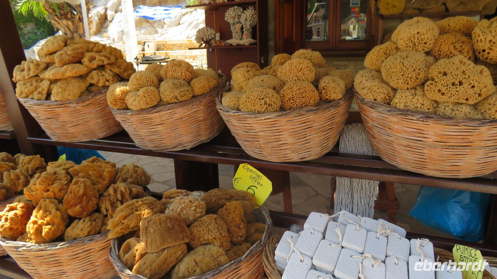 Heute leben hier nur noch 2.500 Menschen, früher waren es über 20.000! Sie lebten hauptsächlich vom Schwammtauchen. Überall werden hier Schwämme angeboten und Bilder zeugen aus dieser Zeit. Wir bummeln die vielen kleinen Gassen entlang und genießen die Zeit.