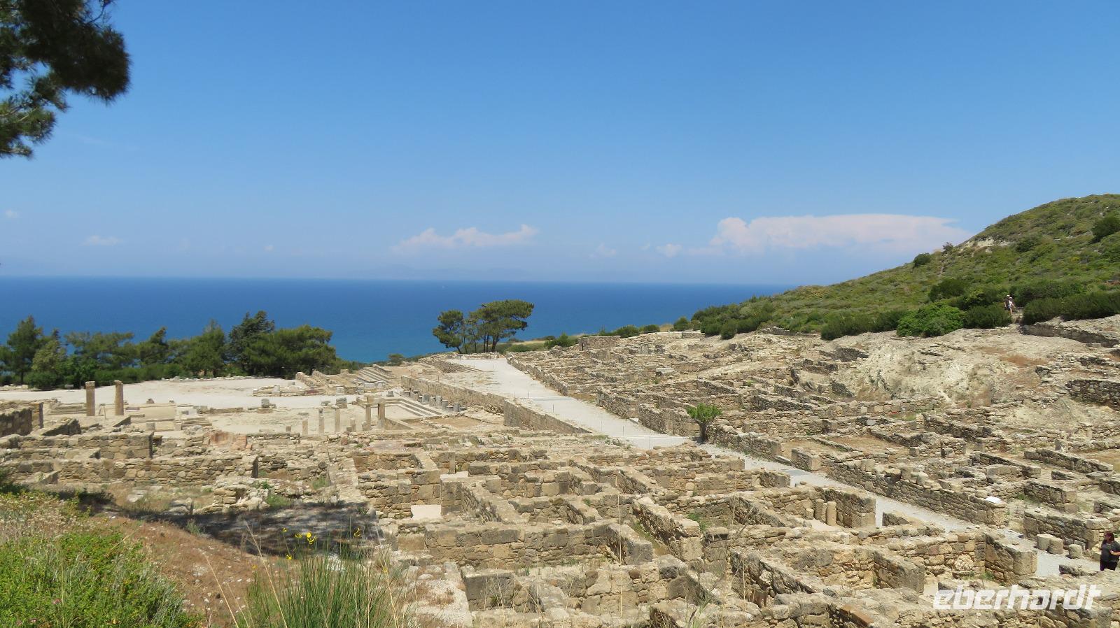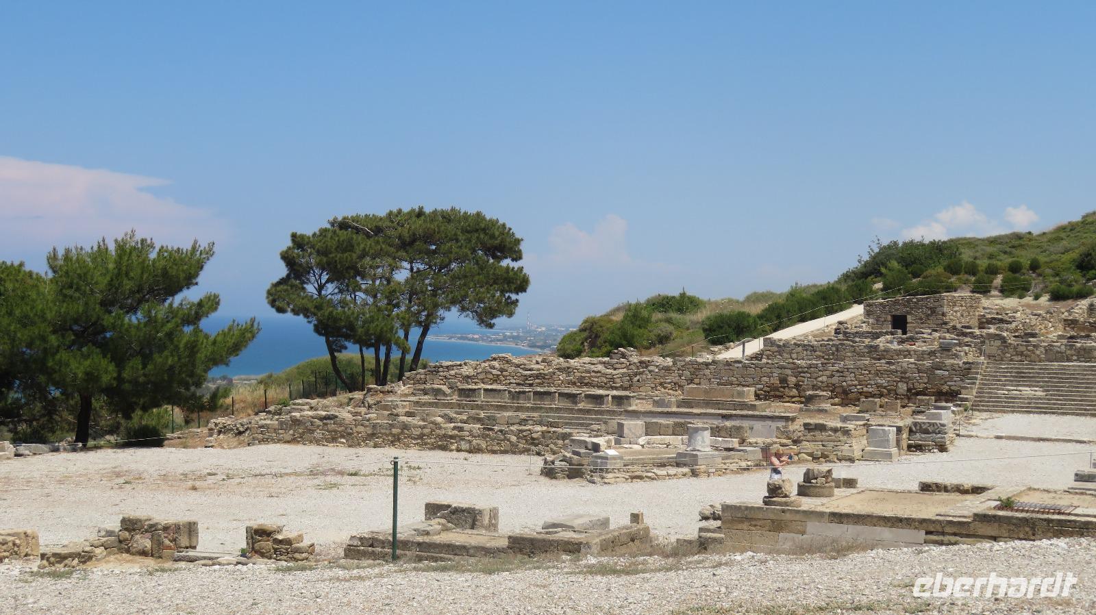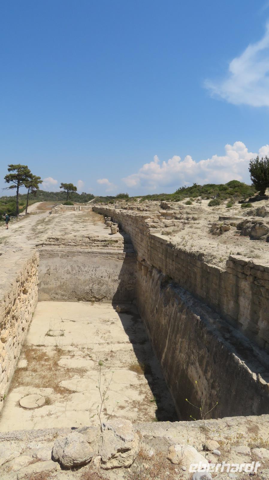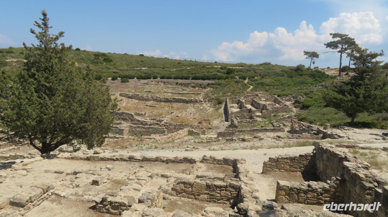 Dann ging es weiter zur antiken Stadt Kamiros. Die Siedlungsreste stammen aus der Zeit 200 v. Chr. Als erstes kann man die Tempelanlagen sehen, dann kommen die Wohnbereiche. Unzählige kleine Mauerreste zeigen, wie es ausgesehen haben muss. Ganz oben befindet sich die Akropolis und die Zisterne - die gut zu erkennen ist.
