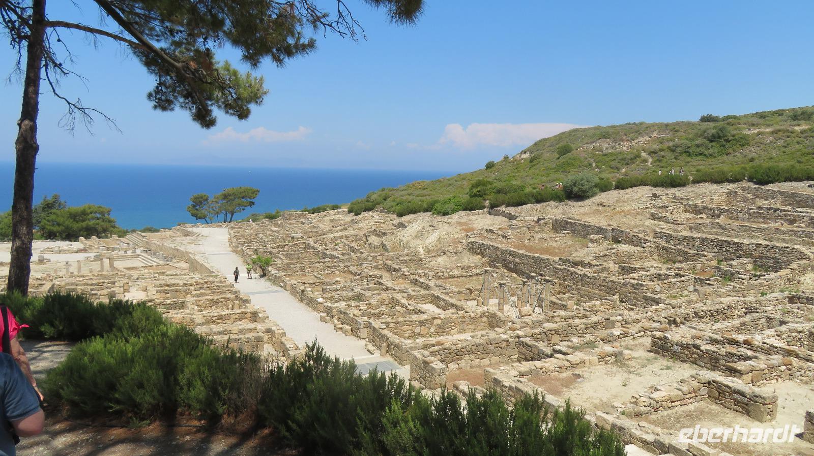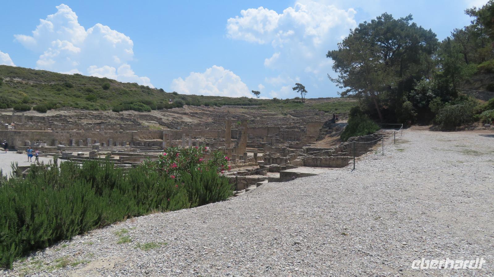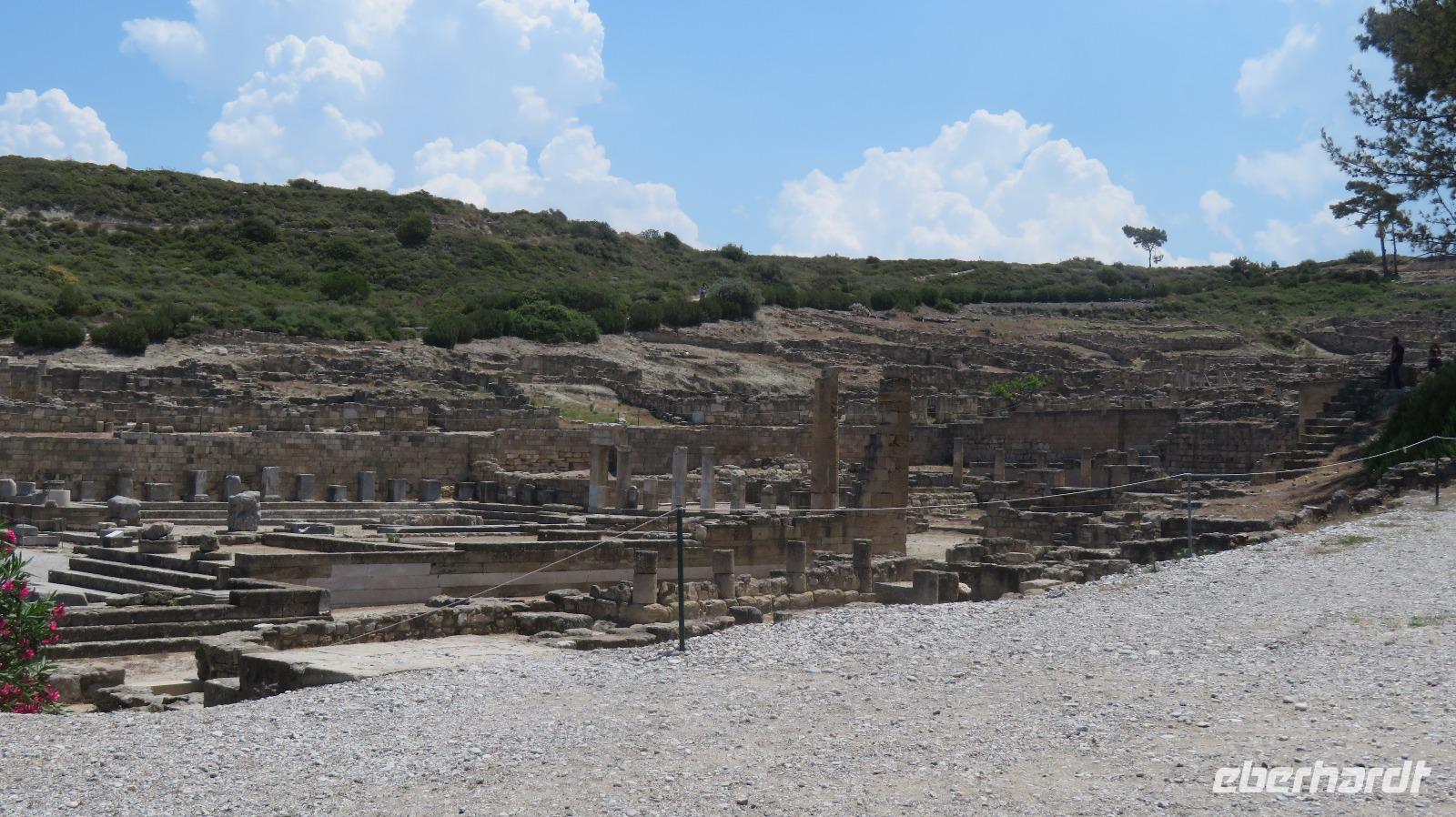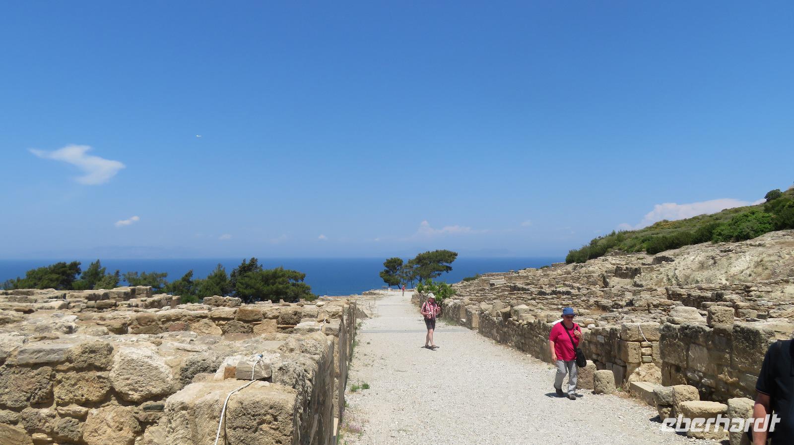 Dann ging es weiter zur antiken Stadt Kamiros. Die Siedlungsreste stammen aus der Zeit 200 v. Chr. Als erstes kann man die Tempelanlagen sehen, dann kommen die Wohnbereiche. Unzählige kleine Mauerreste zeigen, wie es ausgesehen haben muss. Ganz oben befindet sich die Akropolis und die Zisterne - die gut zu erkennen ist.