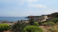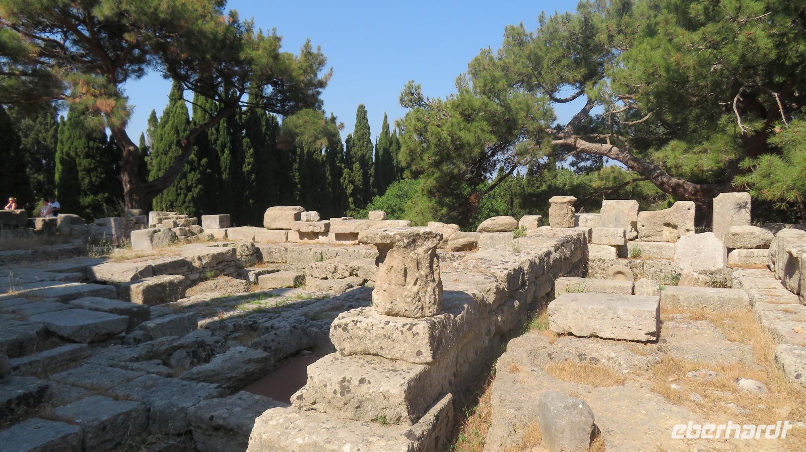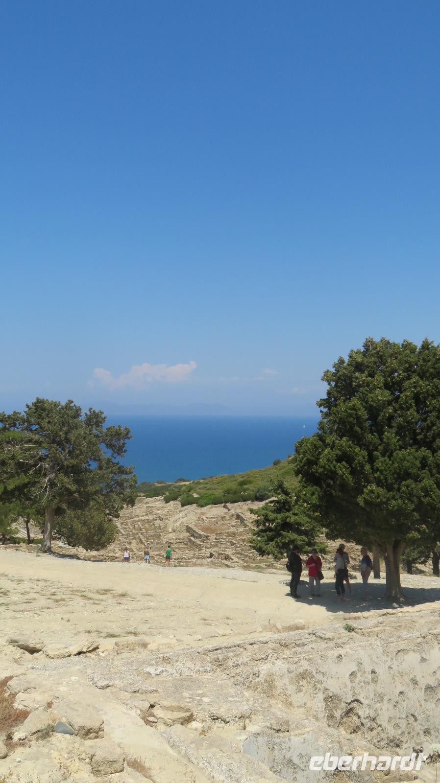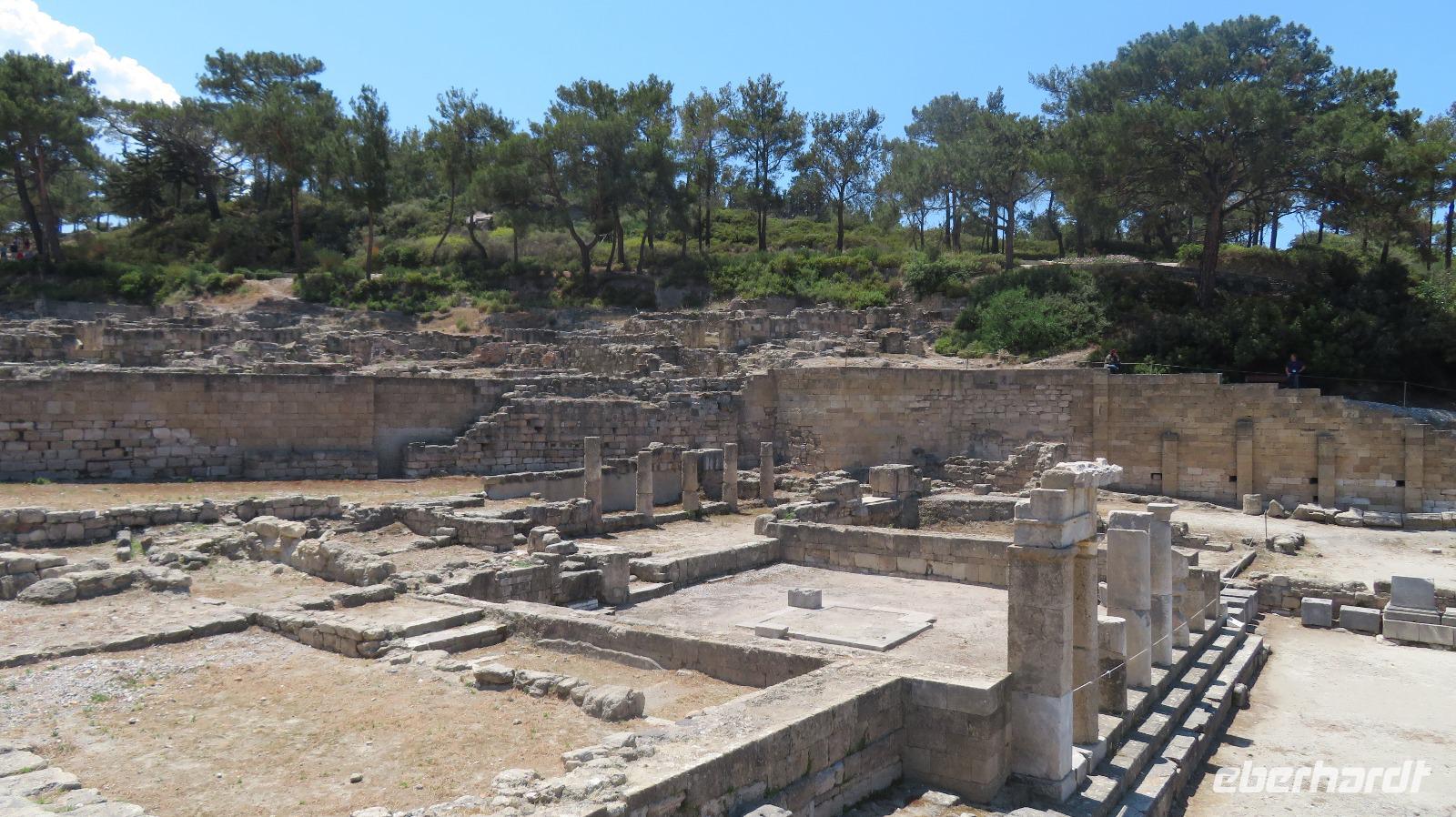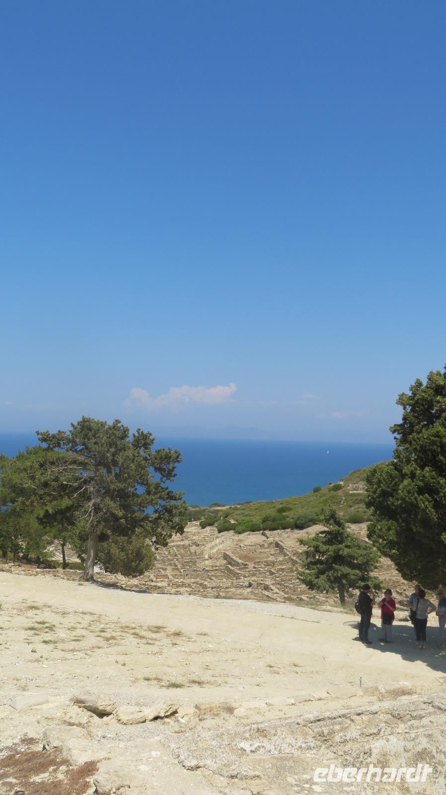 Dann ging es weiter zur antiken Stadt Kamiros. Die Siedlungsreste stammen aus der Zeit 200 v. Chr. Als erstes kann man die Tempelanlagen sehen, dann kommen die Wohnbereiche. Unzählige kleine Mauerreste zeigen, wie es ausgesehen haben muss. Ganz oben befindet sich die Akropolis und die Zisterne - die gut zu erkennen ist.