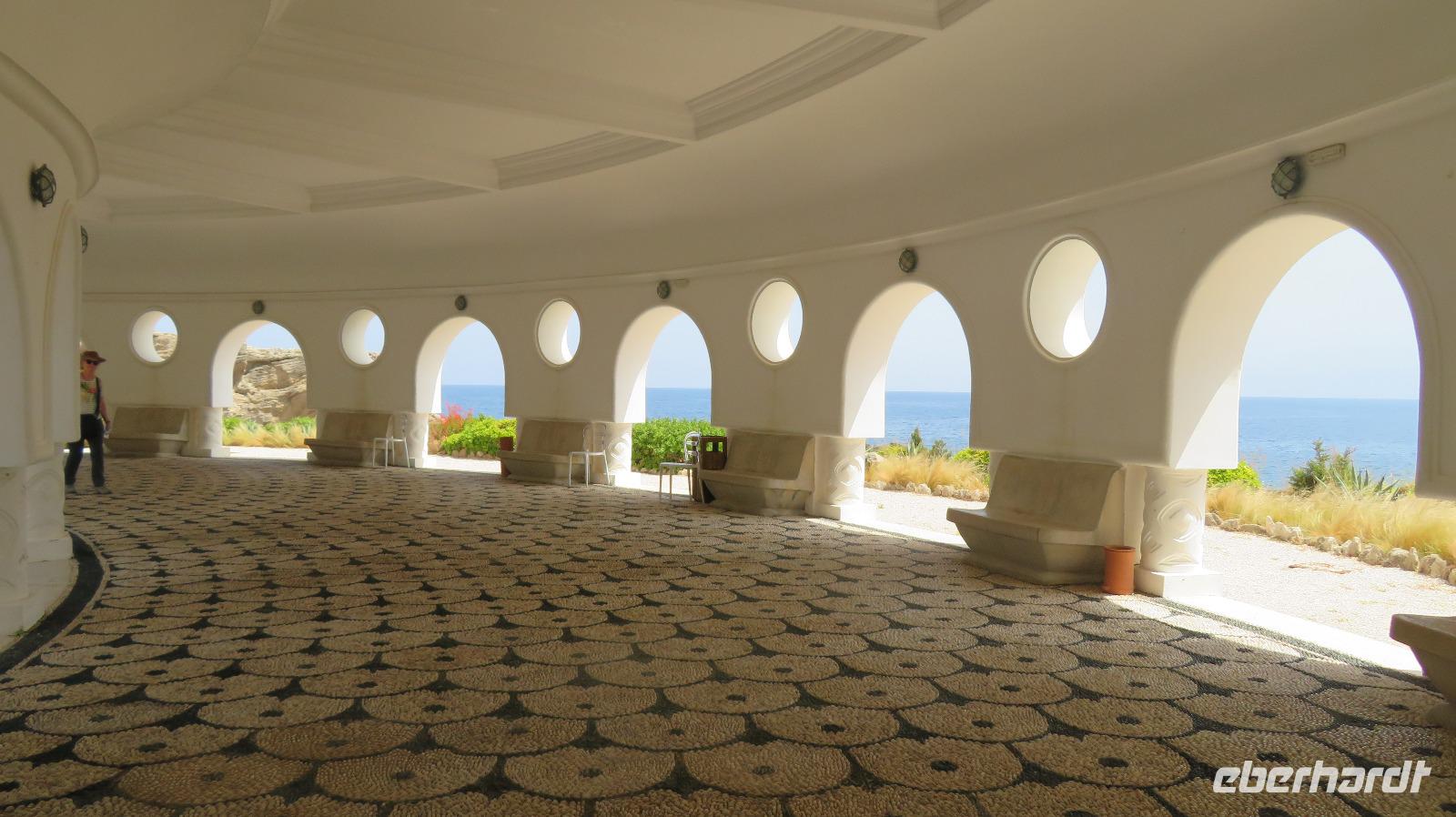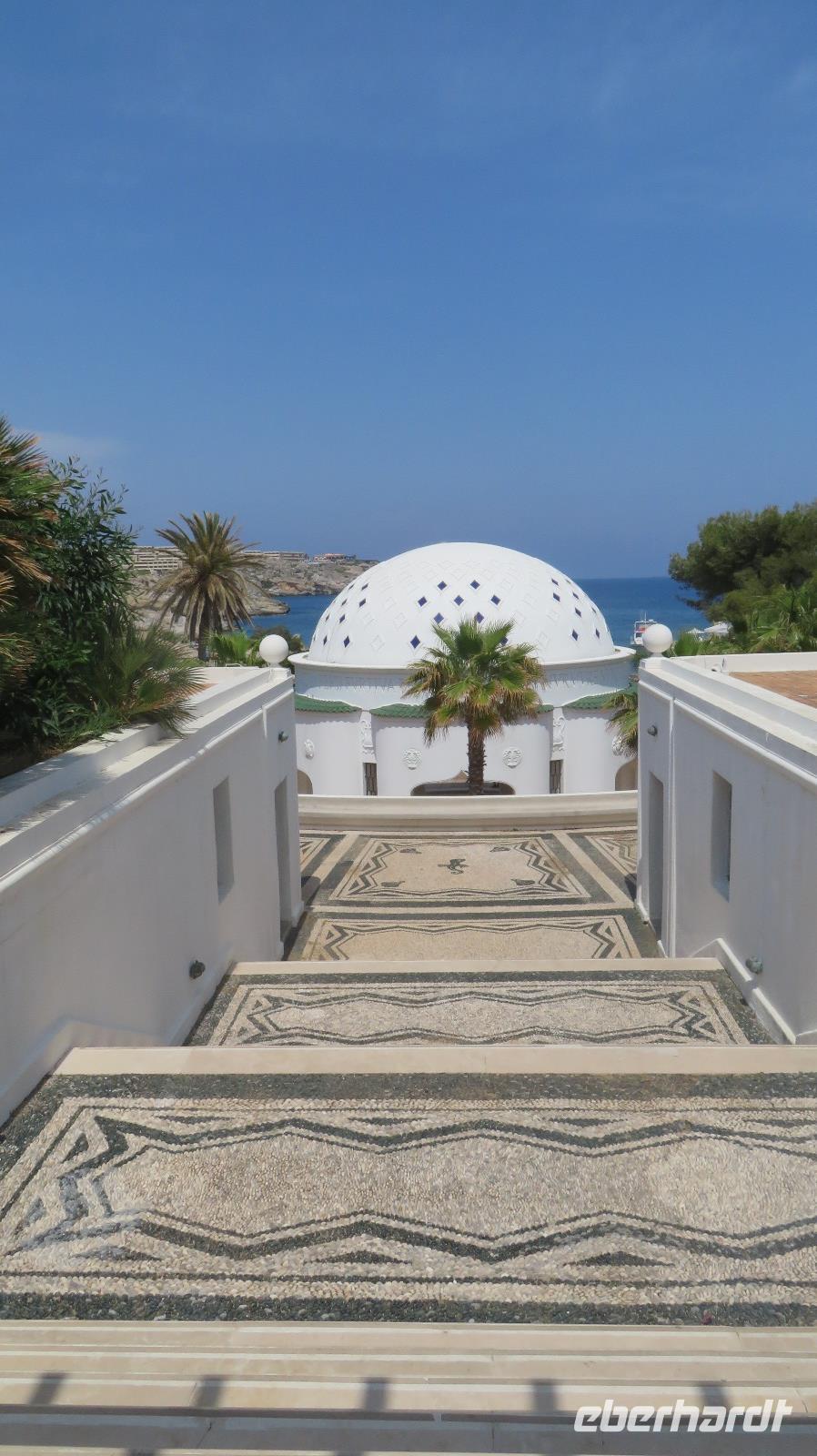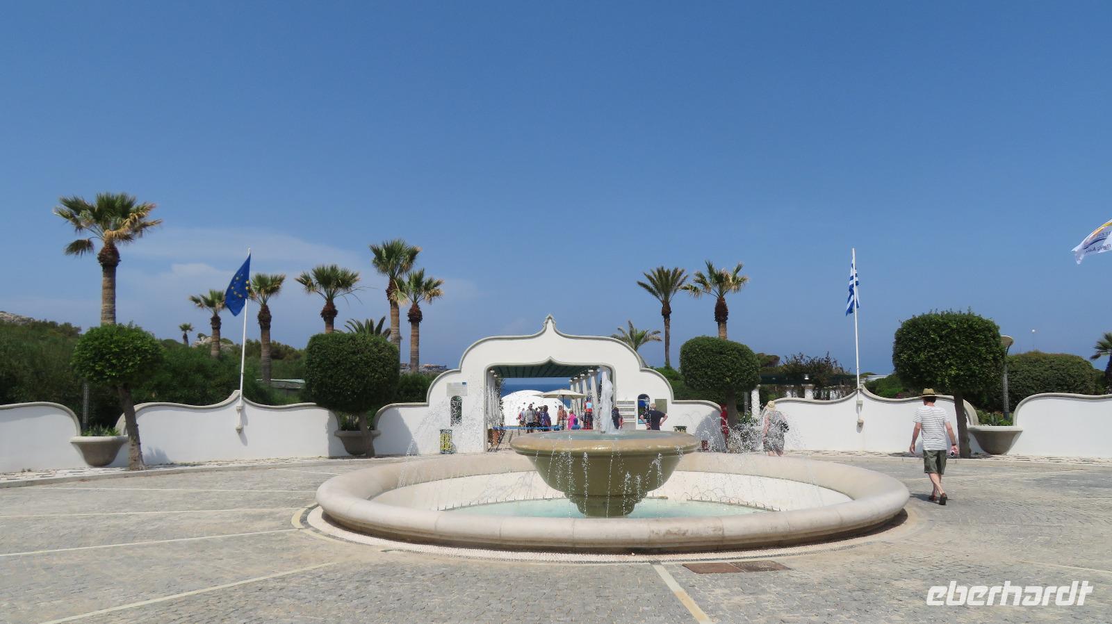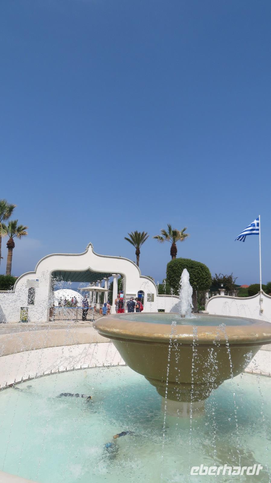 Als letztes besichtigen wir die Thermen von Kallithea. Die Badeanlage wurde 1929 angelegt. Im Hauptbereich befindet sich eine kleine Anlage mit vielen Bildern. Die liebevoll angelegte Anlage und die vielen Blumen und Pflanzen sind wirklich sehenswert.