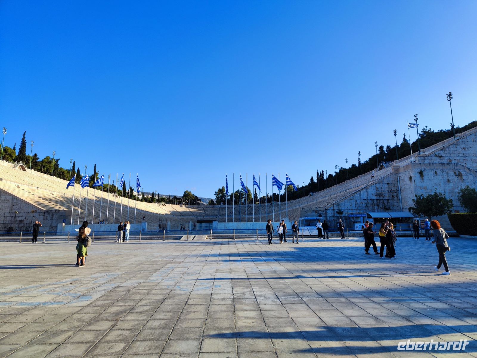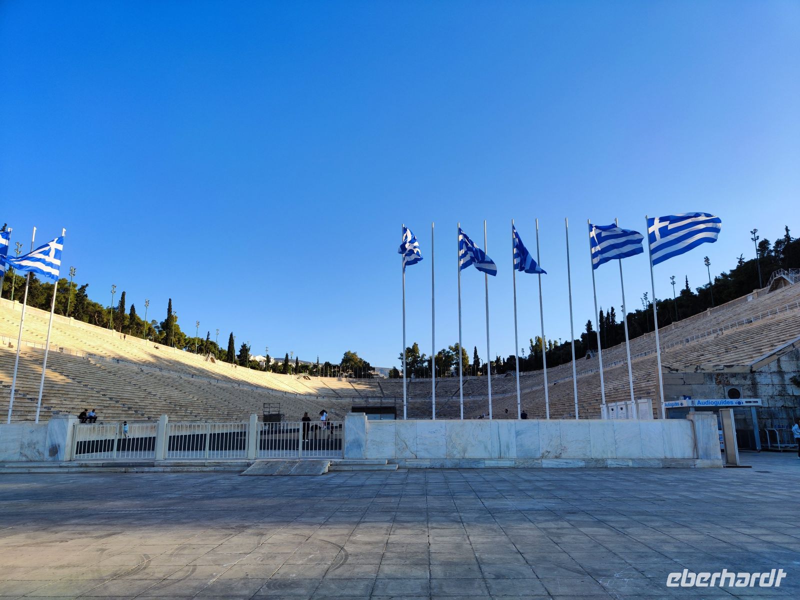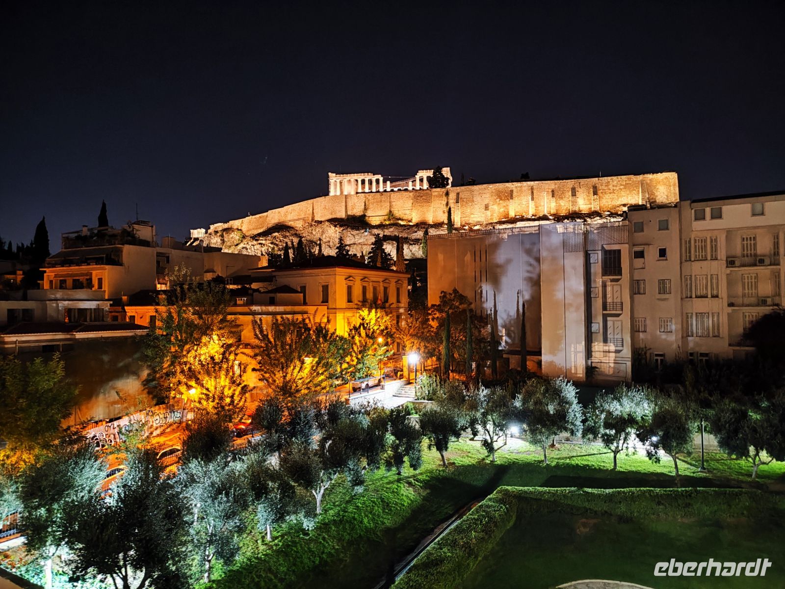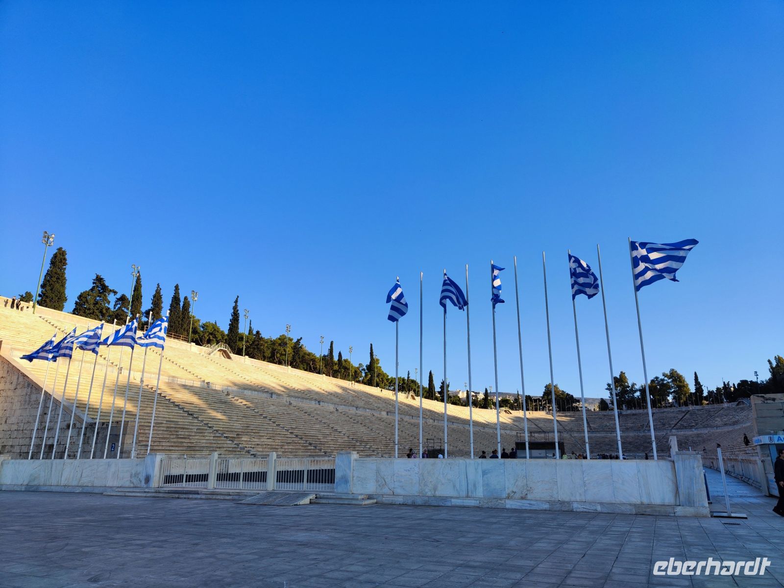 Heute war es endlich soweit und unsere Kreuzfahrt auf dem östlichen Mittelmeer konnte beginnen. Gemeinsam mit einem Großteil der Reisegruppe starteten wir in Dresden mit einer Zwischenlandung in Frankfurt. Hier hatten wir Zeit für ein zweites Frühstück, bevor wir später mit der gesamten Reisegruppe in Richtung Athen abhoben. Am Flughafen Athen erwartete uns bereits unsere quirlige Reiseleiterin Christina und wir begannen unsere Stadtrundfahrt bei frühlingshaften Temperaturen, wobei es zur gleichen Zeit in Dresden schneite. Auf dem Weg in Richtung Stadtzentrum erklärte uns Christina zunächst einmal den Unterschied zwischen Helenen und Griechen. Grob erläutert glaubten die Helenena an die antiken Götter während die Griechen Christen sind. Unser erster Fotostopp erfolgte am alten Stadtion. Hier fanden bereits 300 v. Chr. die Spiele der Antike statt, was ungefähr mit den Olympischen Spiele der Neuzeit zu vergleichen ist. Jedes Volk bzw. Stadtstaat stellt Wettkämpfer ab, die sich in verschiedenen Wettkämpfe duellieren. Auch die ersten Olympischen Spiele der Neuzeit fanden 1896 hier statt. Auf der Tribüne sollen ca. 50.000 Zuschauer Platz gefunden haben. Die Tribüne sollte eigentlich komplettt aus Mamor gebaut werden. Allerdings ging zwischendurch das Geld aus und manche Plätze wurden aus Holz erbaut und in Weiß lakiert, sodass die Unterschiede nicht aufgefallen sind. Im Anschluss fuhren wir am Platz vorbei, wo 2004 das olypmische Dorf erbaut wurde. 2004 waren zum 3.Mal die Olympischen Spiele in Athen beheimatet und für viele noch in Erinnerung. Unsere Route führte uns durch das Stadtzentrum, an der Altstadt und am Parlament vorbei zum Akropolis Museum. Das Museum wurde 2009 eröffnet und von außen eher futuristisch gestaltet worden. Die Flächen die Museum sind allerding gleich große wie das berühmte Panthenon auf der Akropolis. Im inneren des Museum erklärte uns Christina eine Menge über die Geschichte der Akropolis und über die unzähligen Artefakte des Museums. Die Geschichte des Museum ist auch untrennbar mit der Foderung der Rückgabe der originalen Parthenon-Frieses verbunden, die heutzutage immer noch in London untergebracht sind. Zum Abschluss erhielten wir vom Cafe aus einen tollen Blick auf die beleuchtete Akropolis, ehe wir müde zum Hotel gebracht wurden. Hier wurden wir mit einem Ouzo empfangen und konnten beim Abendessen nochmal einen Blick auf das Wahrzeichen Athens erhaschen.
