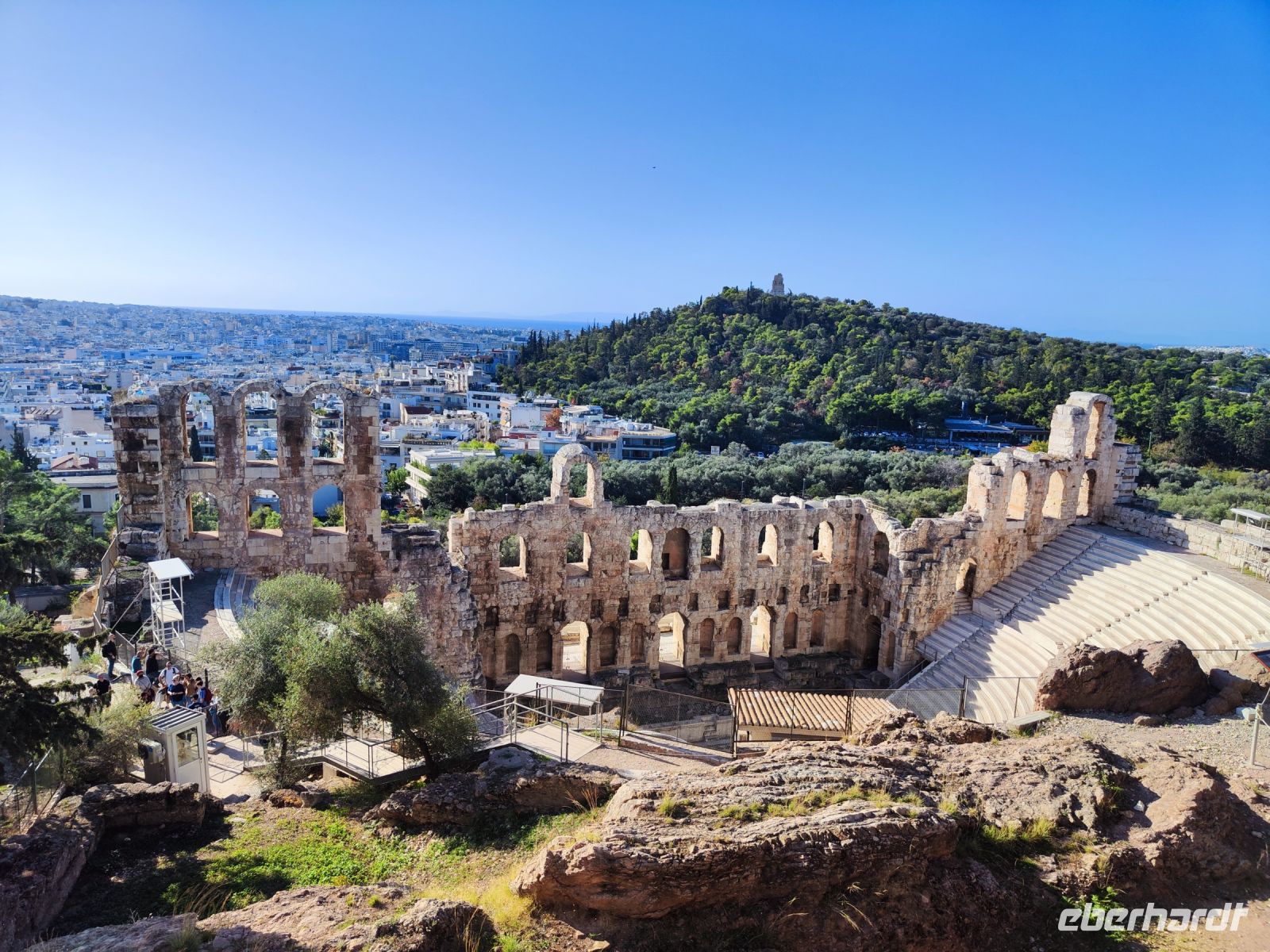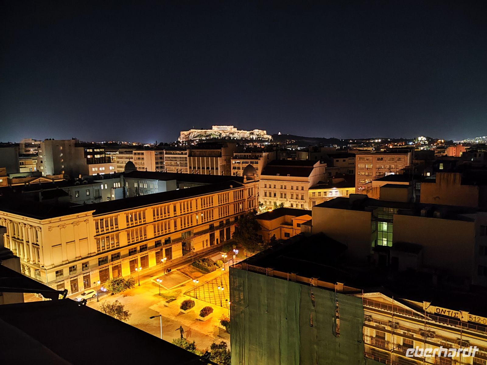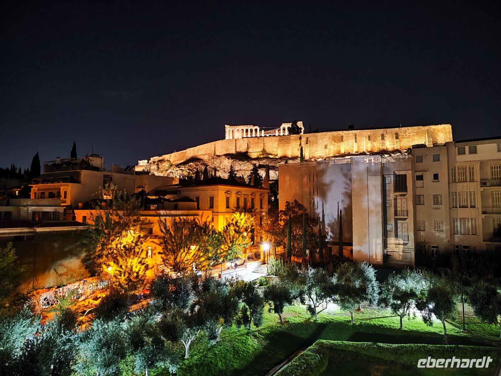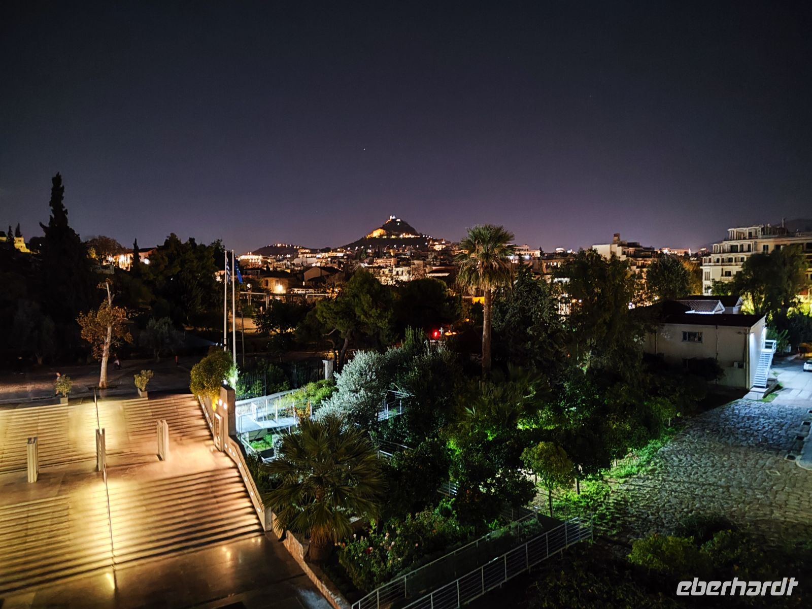 Heute war es endlich soweit und unsere Kreuzfahrt auf dem östlichen Mittelmeer konnte beginnen. Gemeinsam mit einem Großteil der Reisegruppe starteten wir in Dresden mit einer Zwischenlandung in Frankfurt. Hier hatten wir Zeit für ein zweites Frühstück, bevor wir später mit der gesamten Reisegruppe in Richtung Athen abhoben. Am Flughafen Athen erwartete uns bereits unsere quirlige Reiseleiterin Christina und wir begannen unsere Stadtrundfahrt bei frühlingshaften Temperaturen, wobei es zur gleichen Zeit in Dresden schneite. Auf dem Weg in Richtung Stadtzentrum erklärte uns Christina zunächst einmal den Unterschied zwischen Helenen und Griechen. Grob erläutert glaubten die Helenena an die antiken Götter während die Griechen Christen sind. Unser erster Fotostopp erfolgte am alten Stadtion. Hier fanden bereits 300 v. Chr. die Spiele der Antike statt, was ungefähr mit den Olympischen Spiele der Neuzeit zu vergleichen ist. Jedes Volk bzw. Stadtstaat stellt Wettkämpfer ab, die sich in verschiedenen Wettkämpfe duellieren. Auch die ersten Olympischen Spiele der Neuzeit fanden 1896 hier statt. Auf der Tribüne sollen ca. 50.000 Zuschauer Platz gefunden haben. Die Tribüne sollte eigentlich komplettt aus Mamor gebaut werden. Allerdings ging zwischendurch das Geld aus und manche Plätze wurden aus Holz erbaut und in Weiß lakiert, sodass die Unterschiede nicht aufgefallen sind. Im Anschluss fuhren wir am Platz vorbei, wo 2004 das olypmische Dorf erbaut wurde. 2004 waren zum 3.Mal die Olympischen Spiele in Athen beheimatet und für viele noch in Erinnerung. Unsere Route führte uns durch das Stadtzentrum, an der Altstadt und am Parlament vorbei zum Akropolis Museum. Das Museum wurde 2009 eröffnet und von außen eher futuristisch gestaltet worden. Die Flächen die Museum sind allerding gleich große wie das berühmte Panthenon auf der Akropolis. Im inneren des Museum erklärte uns Christina eine Menge über die Geschichte der Akropolis und über die unzähligen Artefakte des Museums. Die Geschichte des Museum ist auch untrennbar mit der Foderung der Rückgabe der originalen Parthenon-Frieses verbunden, die heutzutage immer noch in London untergebracht sind. Zum Abschluss erhielten wir vom Cafe aus einen tollen Blick auf die beleuchtete Akropolis, ehe wir müde zum Hotel gebracht wurden. Hier wurden wir mit einem Ouzo empfangen und konnten beim Abendessen nochmal einen Blick auf das Wahrzeichen Athens erhaschen.