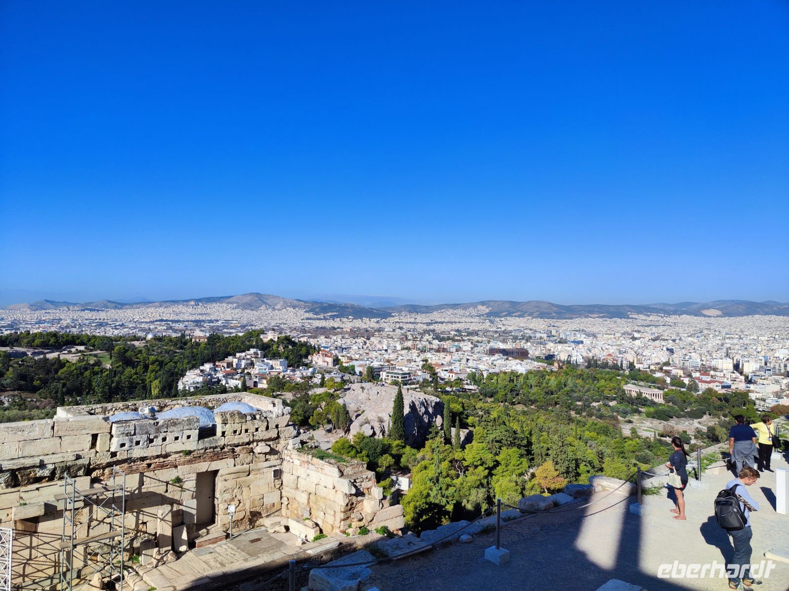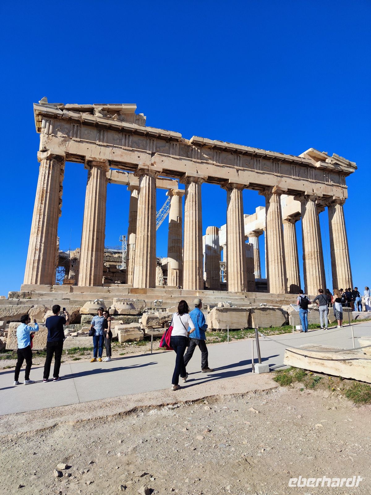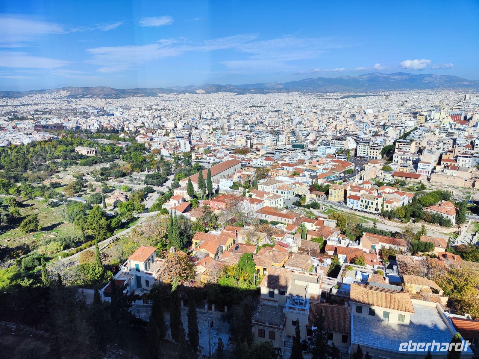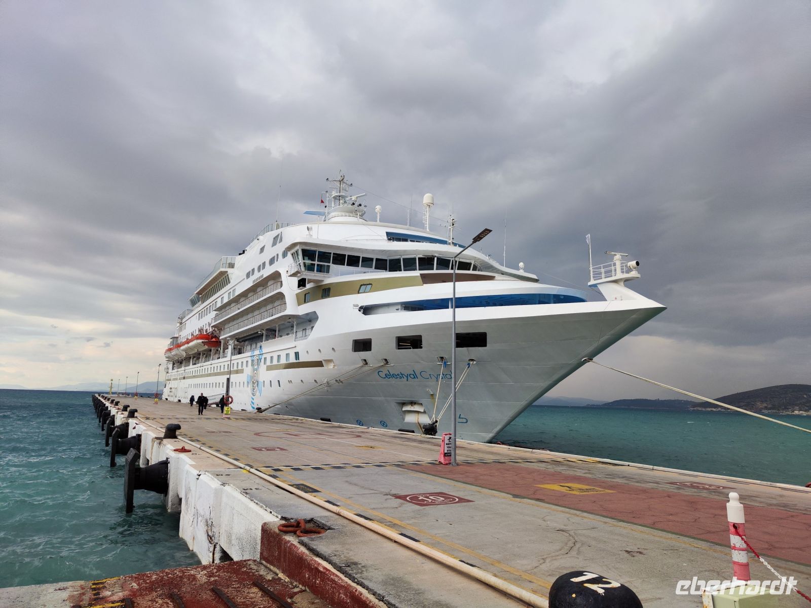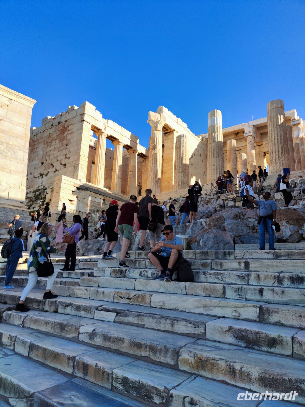 Unser Tag begann mit einem leckeren Frühstück auf der Dachterasse des Hotels mit Blick auf die Akropolis. Es war einfach traumhaft und wir beschlossen, das Wahrzeichen der Stadt auch aus der Nähe kennen zu lernen. Unsere Reiseleiterin Christina erwartete uns bereits am Bus und fuhr mit uns in Richtung Akropolis. Auf dem Parkplatz wurden wir mit Audio-Guides ausgestattet und begaben uns auf den Weg. Übersetzt bedeutet Akropolis eigentlich Stadt auf dem Berg und die Akropolis in Athen ist auch nicht die einzige Akropolis auf der Welt. Aber trotzdem wir der Name Akropolis immer mit der Stadt Athen in Verbindung gebracht. Der Bau der Stadtfestung wurde im Jahr 467 vor Christus begonnen und dauerte etwa 60 Jahre. Die Akropolis besteht aus dem Propyläen (dem Tor zur Stadt), 2 kleineren Tempel und natürlich dem Parthenon. Der Tempel ist der Göttin Athena gewidmet, die später auch als Namensgeberin für die Stadt Athen dient. Athena ist die Göttin der Weissheit, des Kampfes und der Kunst. In der Antike gab es sogar eine Statue der Athena aus Gold und Elfenbein vor dem Parthenon, die ca. 30 meter hoch sein gewesen sein sollte. Seit dem Jahr 1997 gehört die Akropolis zum UNESCO Weltkulturerbe und bietet zudem einen tollen Ausblick über die 3,5 Millionen Einwohner Metropole Athen. Anschließend spazierten wir die berühmte Altstadt Athens. Im Bezirk Plaka konnten wir unsere freie Zeit zum Mittagessen nutzen, manchen bummelten durch die Gassen oder tranken gemütlich einen Kaffee. Gegen Nachmittag fuhren wir zum Hafen nach Piräus. Nachdem einige Koffer bereits auf uns warteten, konnten wir gemeinsam mit Christina Sirtaki tanzen. Im Anschluss begann unsere persönliche Einschiffung bzw. Meetings und wir freuten uns auf die kommenden Tage auf der Celestryal Crystal. Den Abend rundeten wir mit einem gemeinsamen Abendessen ab, bevor unsere Kreuzfahrt entgültig startete.
