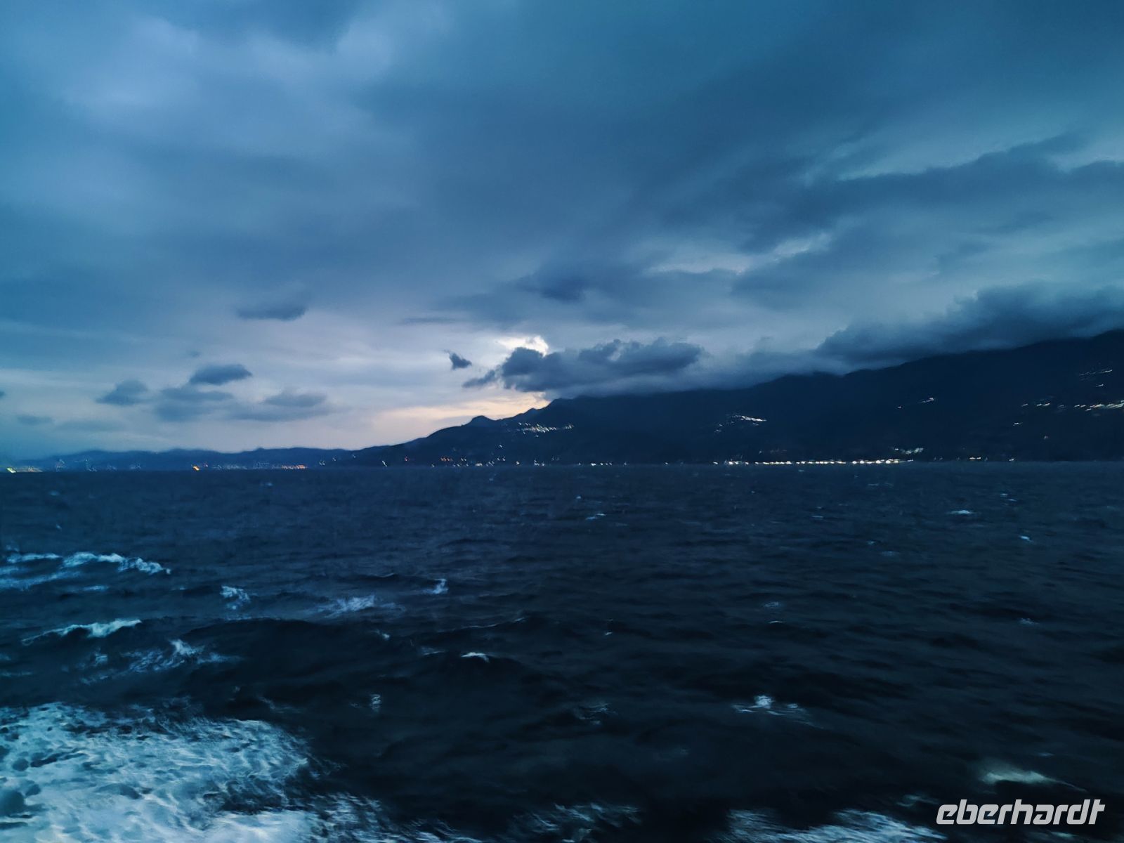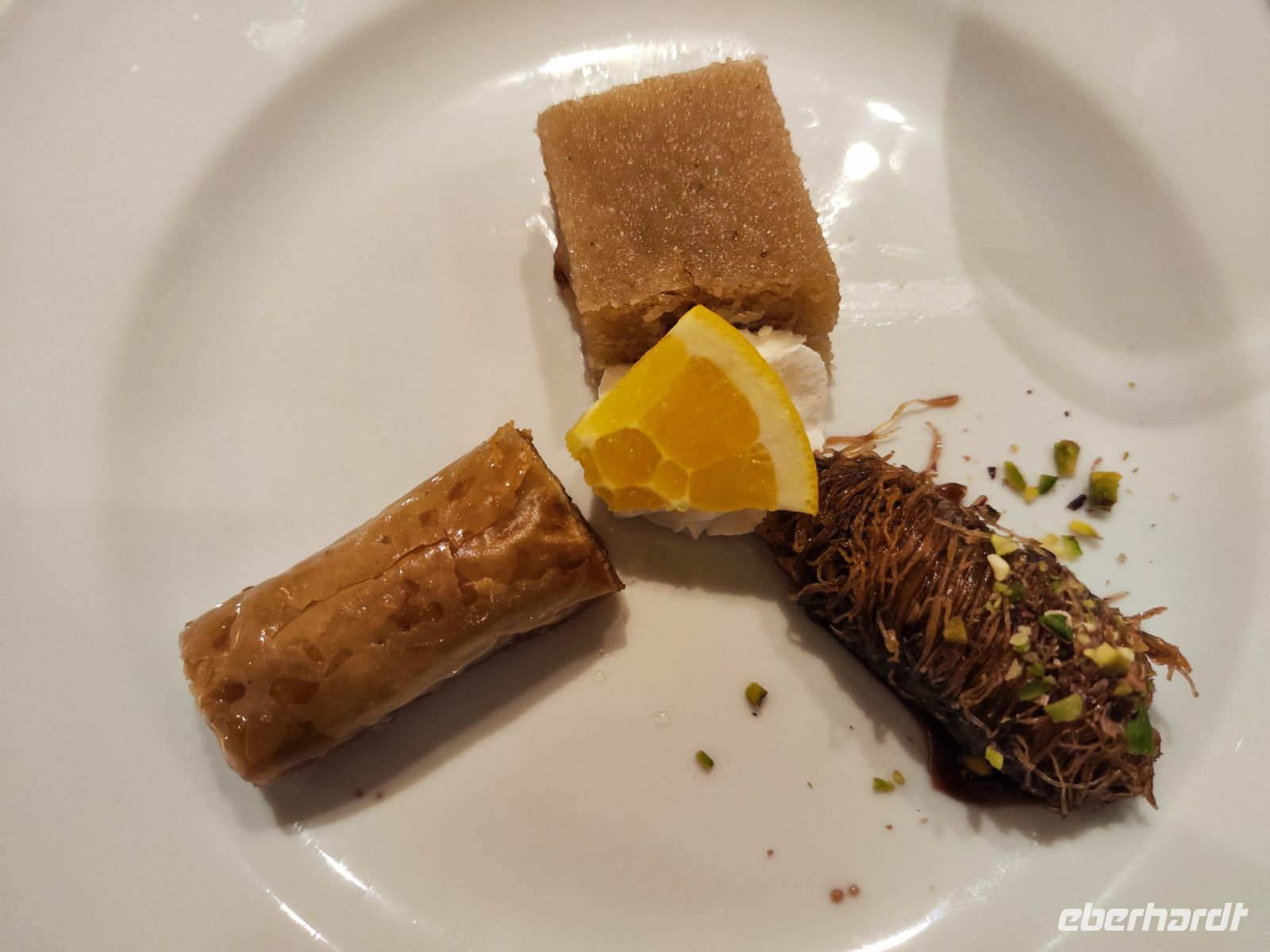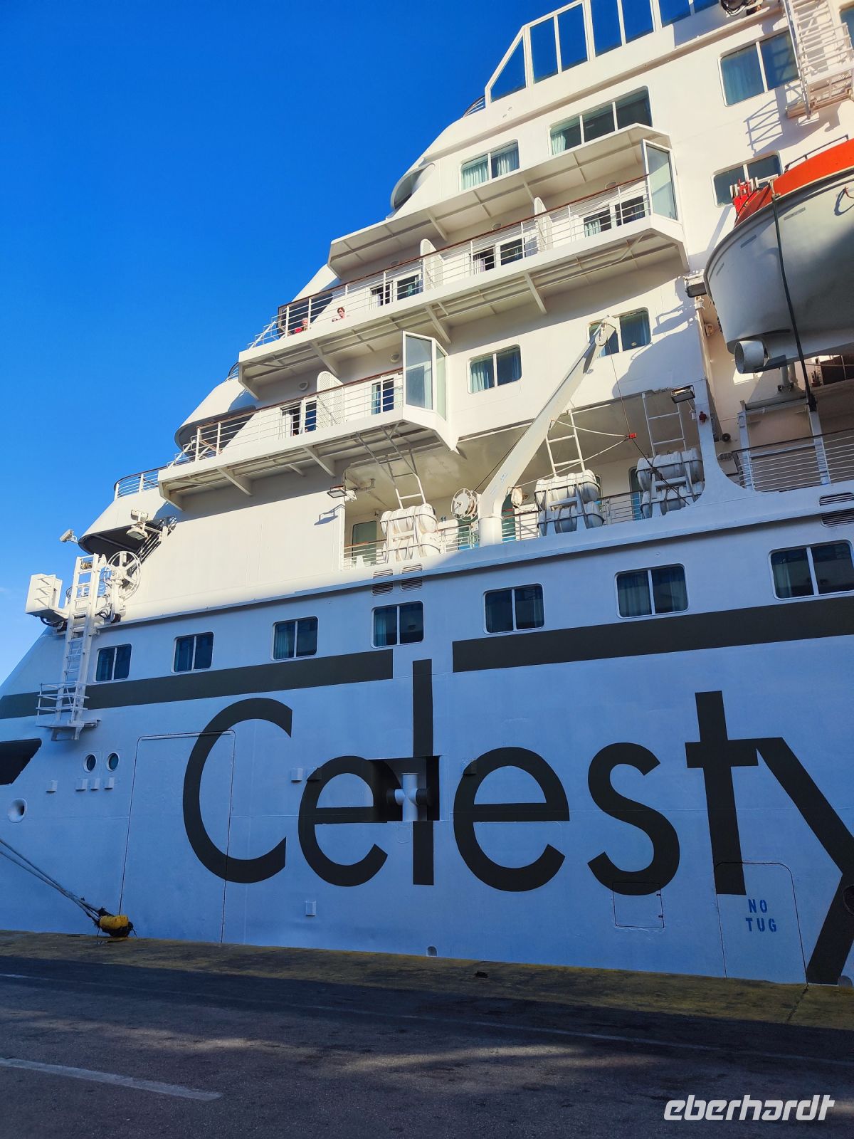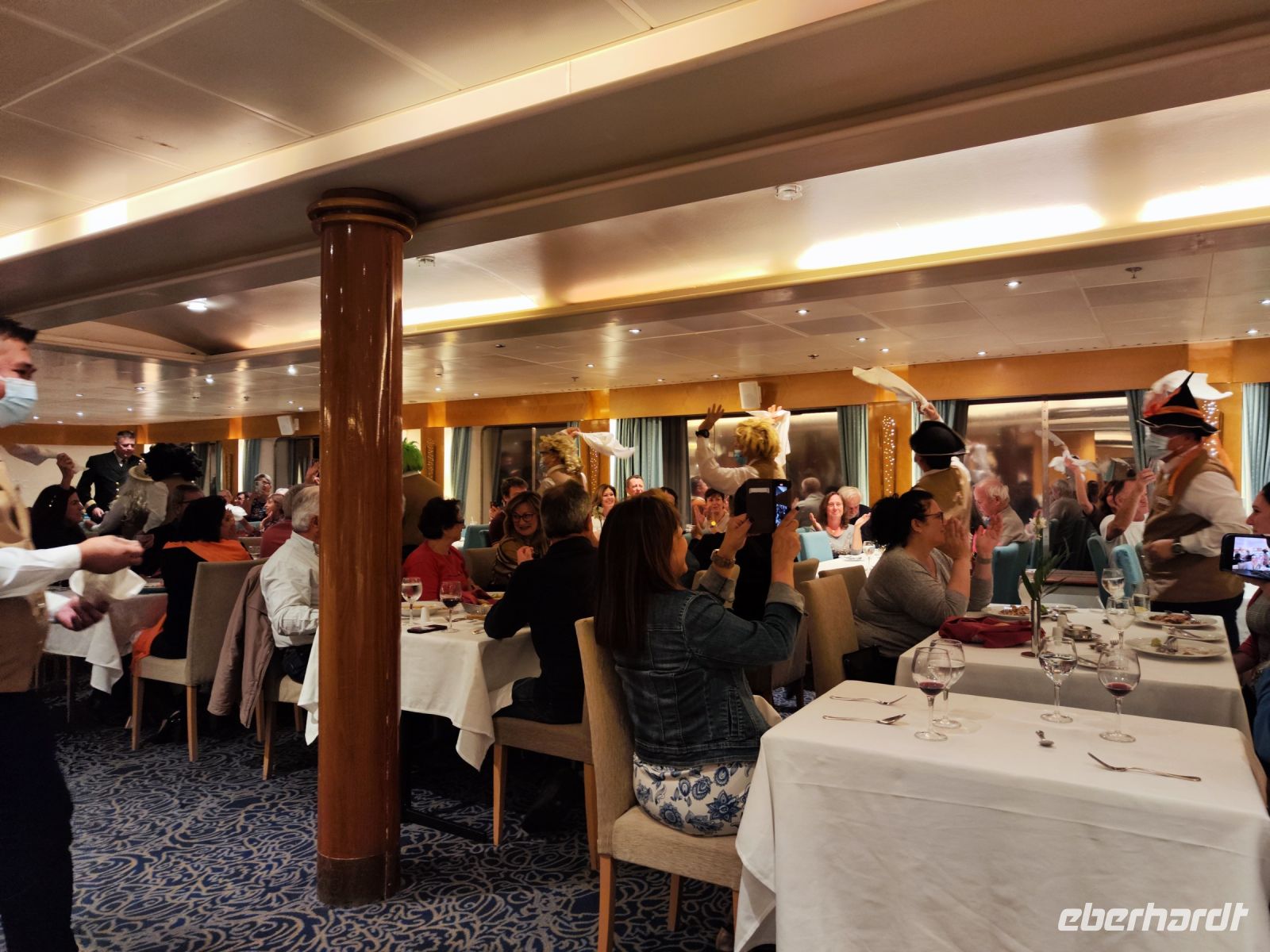 Den heutigen Tag verbrachten wir auf hoher See und genossen die Annehmlichkeiten des Schiffes. Bei gutem Essen und Animation fühlten wir uns sehr wohl am Bord unseres Kreuzfahrtschiffes Celestyal Crystal. Das Schiff hat eine Länge von 162 Metern und eine Breite von 25,64 Metern. Bei einem Tiefgang von max. 5,92 Metern fahren wir mit max 18 Knoten durch das östliche Mittelmeer. Auf den 10 Decks finden 1200 Passagiere und 400 Crew-Mitglieder Platz finden. Das Schiff wurde 1980 im Finnischen Turku gebaut und fährt unter der Maltesischer Flagge. Unser Abendessen nahmen wir diesmal auf Deck 8 im a la Carte Restaurant ein, was auch für die nächsten Tage unsere Wahl werden sollte. Am Abend erfreuten wir uns über eine tolle Cabaret Show und anschließender Vorstellung des Kapitäns und seiner engsten Offizieren. Zum Schluss konnten wir mit einen Sekt anstoßen. Auf Ihr Wohl Herr Kapitän.