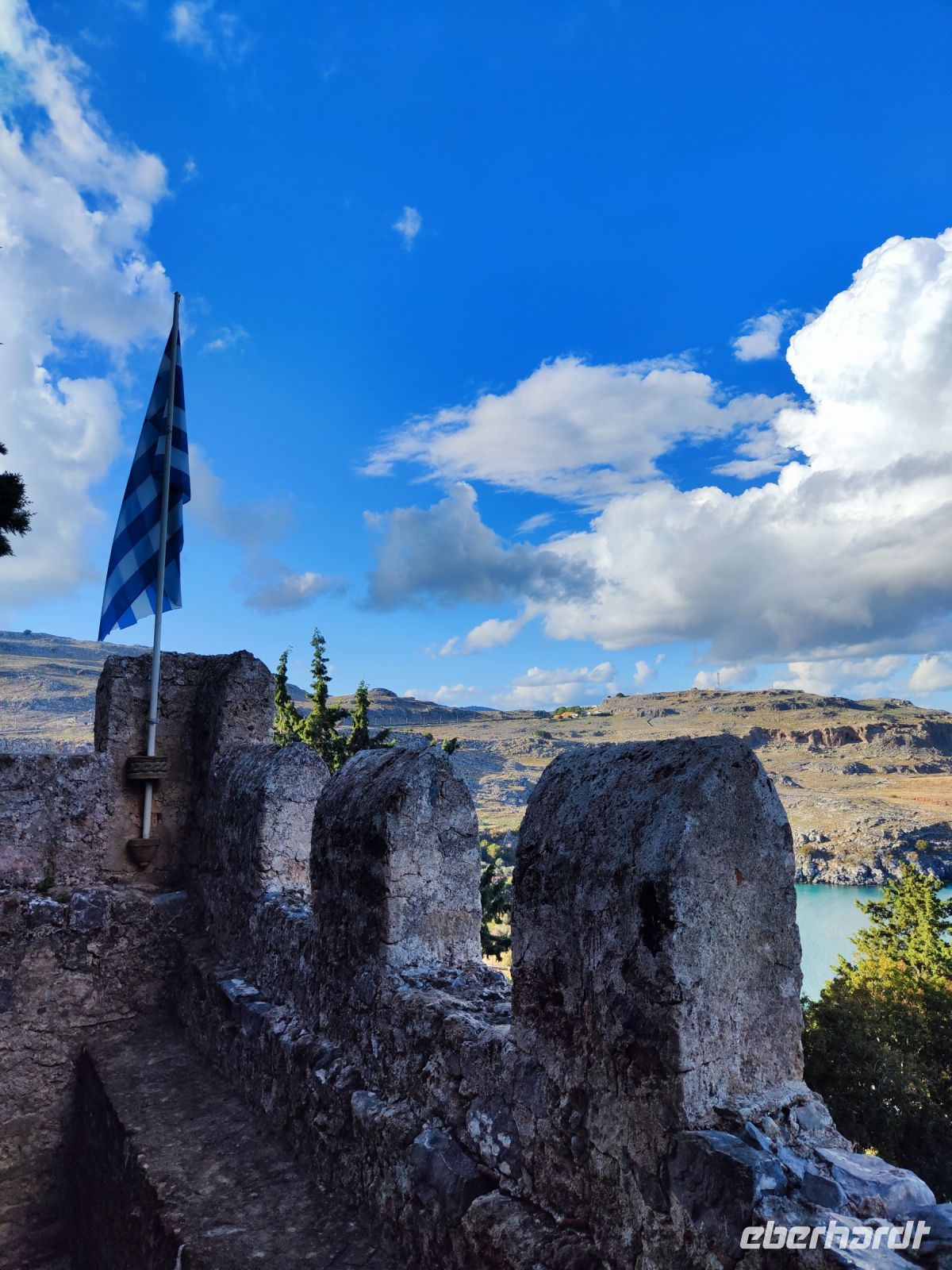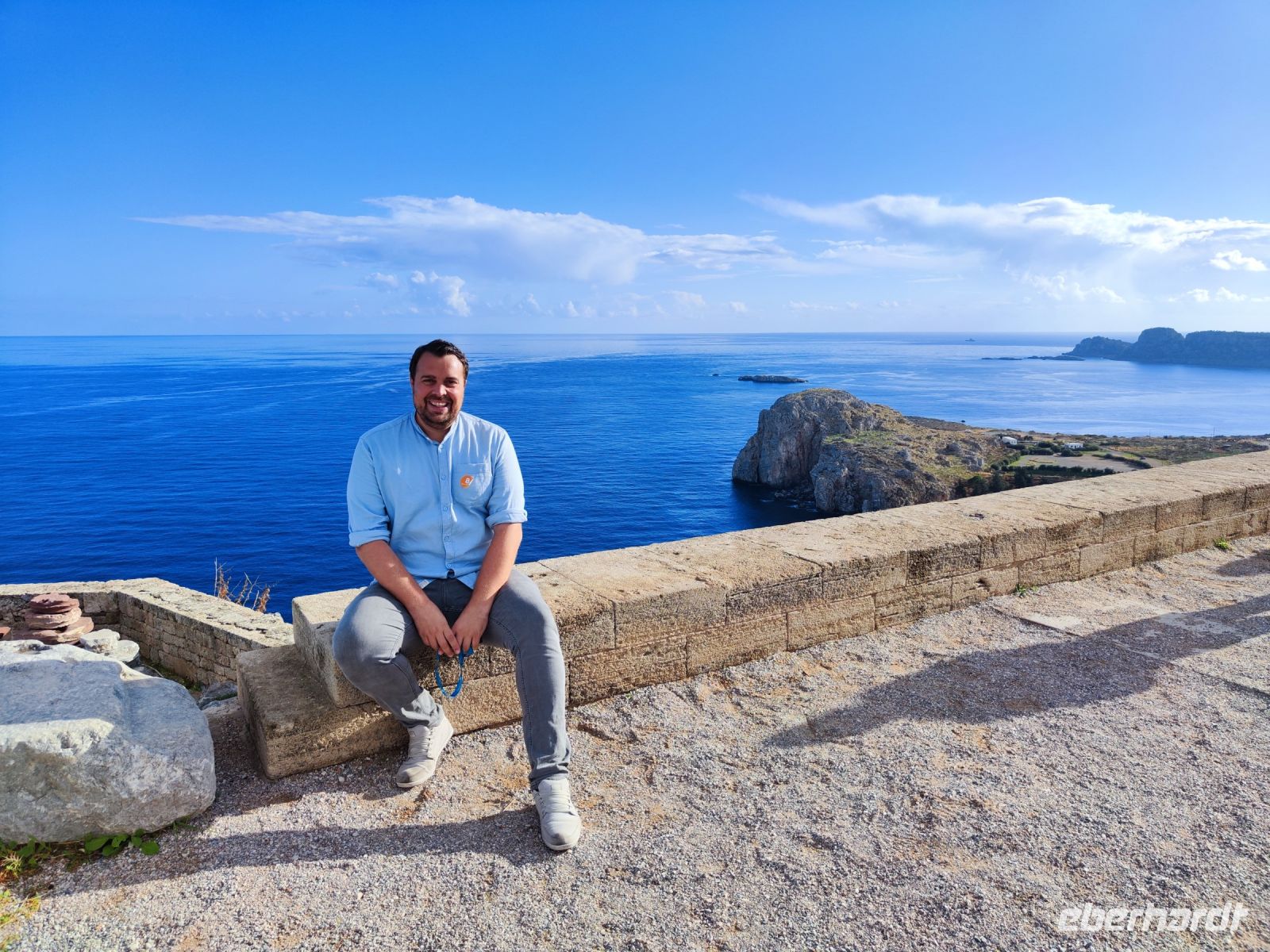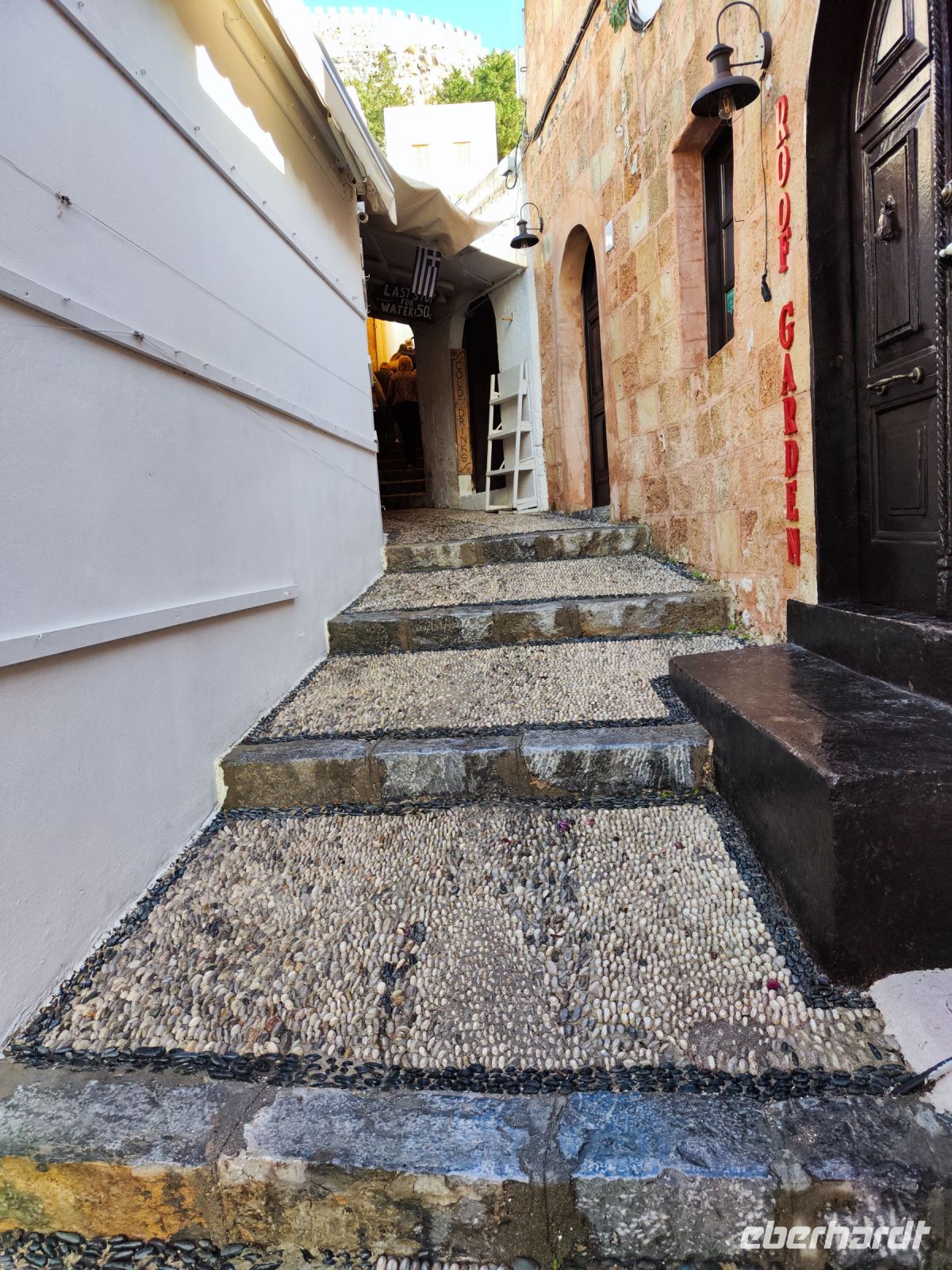 Ein freier Vormittag stand heute auf unserer Agenda. Wir genossen die Freizeit bei einem gemütlichen Kaffee auf Deck, einem längeren Ausruhen auf der Kabine oder einem Mittagessen im a la Carte Restaurant, bevor wir die Insel Rhodos erreichten. Rhodos ist die viertgrößte Insel Griechenlands und sogleich die Hauptinsel der Inselgruppe der Dodekanes in der Ägäis. Von den 116.000 Einwohner leben die Hälfte in der gleichnamigen Inselhauptstadt Rhodos. Früher im Jahre 290 v. Chr. soll hier der berühmte Koloss von Rhodos gestanden haben. Die ca. 30 Meter hohe Statue zählte zu den sieben Weltwundern der Antike und wurde im Jahre 226 v. Chr. durch ein Erdbeben zerstört. Allerdings zeigte uns unsere Reiseleiterin Christina einen Nachbau vor einem örtlichen Restaurant, der sich allerdings als wesentlich kleiner als der Original herausstellt. Unsere Tour führte uns entlang der Küste nach Lindos. Die ehemalige Hauptstadt Lindos ist heute viel mehr ein malerisches Dörfchen mit kleinen Gassen, gepflasterten Straßen, urigen Cafés und weißen Häusern. Oberhalb des Ortes thront eine weitere Akropolis. Wir bereits erwähnt, Akropolis bedeutet so viel wie Stadt auf dem Berg und auch auf Rhodos gab es eine Akropolis. Lindos war eine bedeutende Hafenstadt und somit verwundert es nicht, dass auf der Akropolis ein Schiff in den Felsen gehauen wurde. Die Akropolis wurde ca. 300 v. Chr. erbaut und war zugleich Zufluchtsort und Heiligtum der Einwohner. Der Tempel war auch der Göttin Athena gewidmet. Im 15. Jahrhundert wurde die Akropolis von den Johannitern ausgebaut und erneuert. Heutzutage führen ca. 200 Stufen hinauf in die alte Stadt. Von hier aus habt man einen wunderschönen Ausblick über die Bucht von Lindos und wir genossen unseren Aufenthalt. Am Nachmittag ging es wieder zurück nach Rhodos Stadt, wo wir entlang der berühmten Ritterstraße bis zum Großmeisterpalast spazierten. Auch der Großmeisterpalast stammt aus der Zeit der Johanniterritter im 14. und 16. Jahrhundert. Leider hieß es gegen 17 Uhr Abschied von der Altstadt nehmen, denn unser Schiff und auch unser liebgewonnenes Restaurant auf Deck 8 wartete bereits auf uns.