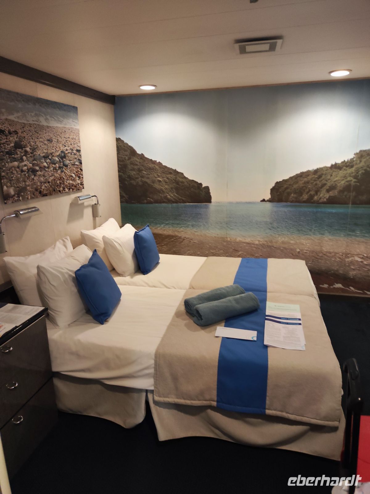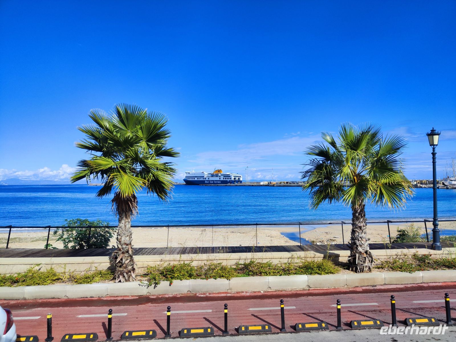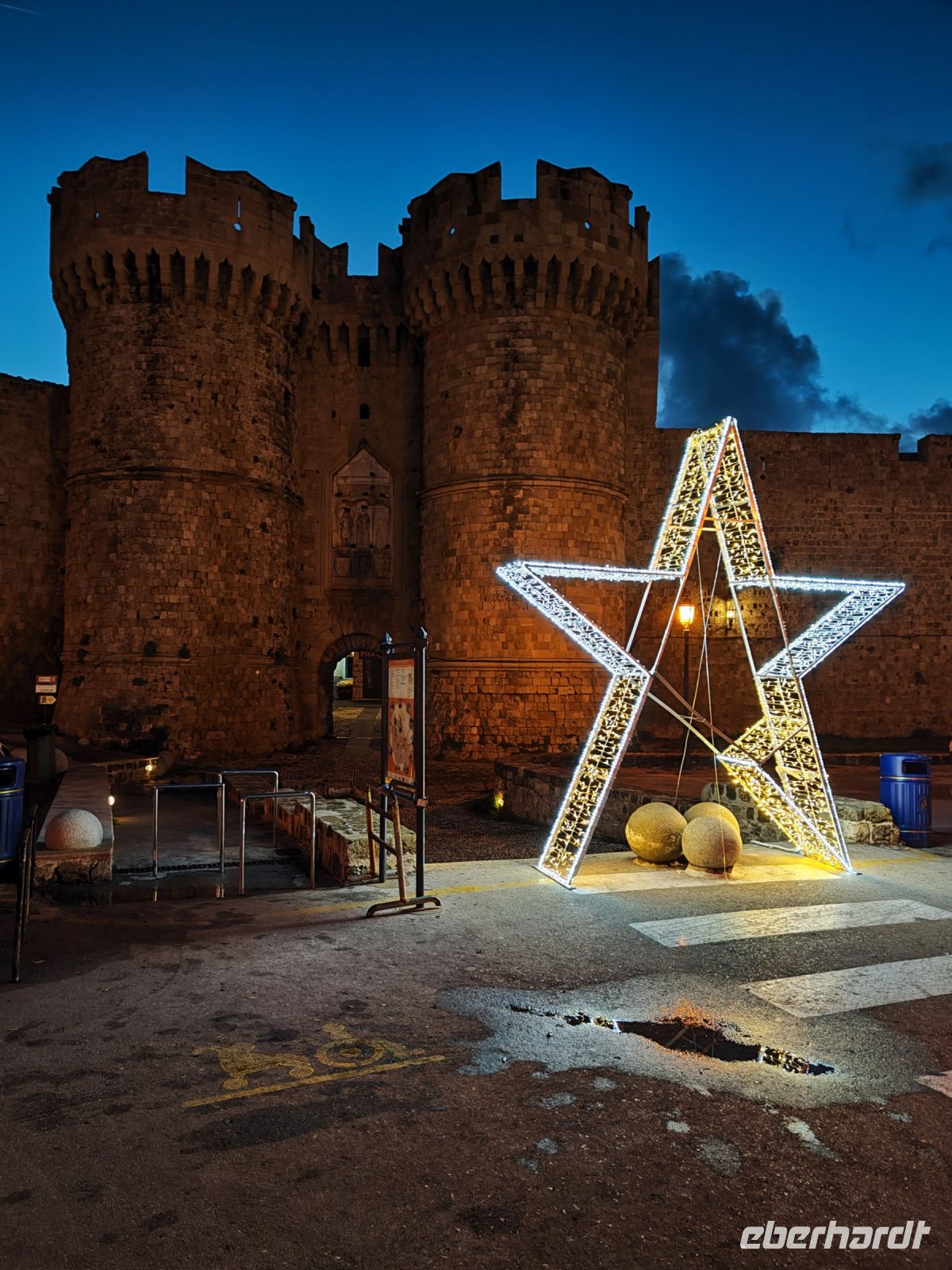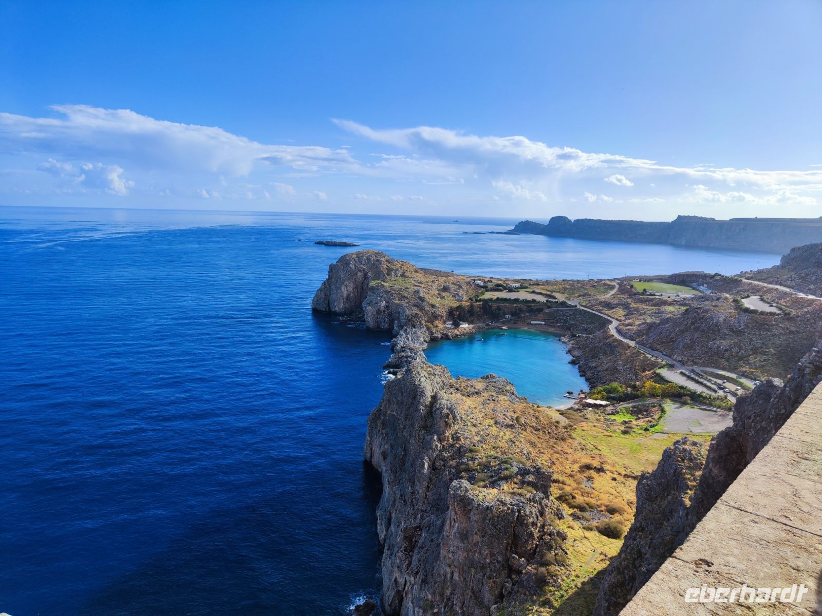 Ein freier Vormittag stand heute auf unserer Agenda. Wir genossen die Freizeit bei einem gemütlichen Kaffee auf Deck, einem längeren Ausruhen auf der Kabine oder einem Mittagessen im a la Carte Restaurant, bevor wir die Insel Rhodos erreichten. Rhodos ist die viertgrößte Insel Griechenlands und sogleich die Hauptinsel der Inselgruppe der Dodekanes in der Ägäis. Von den 116.000 Einwohner leben die Hälfte in der gleichnamigen Inselhauptstadt Rhodos. Früher im Jahre 290 v. Chr. soll hier der berühmte Koloss von Rhodos gestanden haben. Die ca. 30 Meter hohe Statue zählte zu den sieben Weltwundern der Antike und wurde im Jahre 226 v. Chr. durch ein Erdbeben zerstört. Allerdings zeigte uns unsere Reiseleiterin Christina einen Nachbau vor einem örtlichen Restaurant, der sich allerdings als wesentlich kleiner als der Original herausstellt. Unsere Tour führte uns entlang der Küste nach Lindos. Die ehemalige Hauptstadt Lindos ist heute viel mehr ein malerisches Dörfchen mit kleinen Gassen, gepflasterten Straßen, urigen Cafés und weißen Häusern. Oberhalb des Ortes thront eine weitere Akropolis. Wir bereits erwähnt, Akropolis bedeutet so viel wie Stadt auf dem Berg und auch auf Rhodos gab es eine Akropolis. Lindos war eine bedeutende Hafenstadt und somit verwundert es nicht, dass auf der Akropolis ein Schiff in den Felsen gehauen wurde. Die Akropolis wurde ca. 300 v. Chr. erbaut und war zugleich Zufluchtsort und Heiligtum der Einwohner. Der Tempel war auch der Göttin Athena gewidmet. Im 15. Jahrhundert wurde die Akropolis von den Johannitern ausgebaut und erneuert. Heutzutage führen ca. 200 Stufen hinauf in die alte Stadt. Von hier aus habt man einen wunderschönen Ausblick über die Bucht von Lindos und wir genossen unseren Aufenthalt. Am Nachmittag ging es wieder zurück nach Rhodos Stadt, wo wir entlang der berühmten Ritterstraße bis zum Großmeisterpalast spazierten. Auch der Großmeisterpalast stammt aus der Zeit der Johanniterritter im 14. und 16. Jahrhundert. Leider hieß es gegen 17 Uhr Abschied von der Altstadt nehmen, denn unser Schiff und auch unser liebgewonnenes Restaurant auf Deck 8 wartete bereits auf uns.