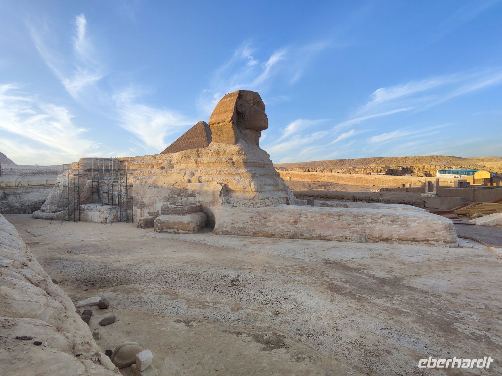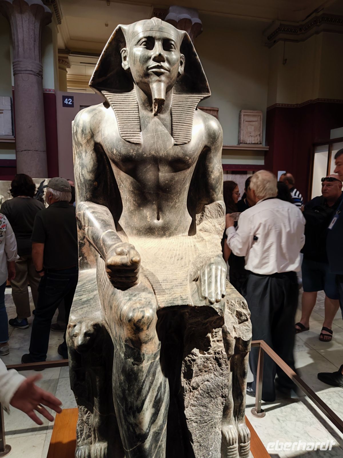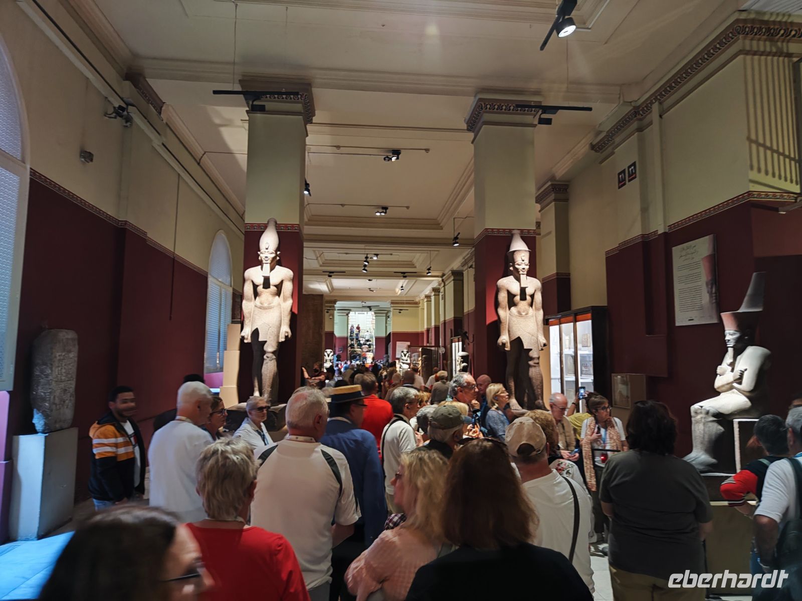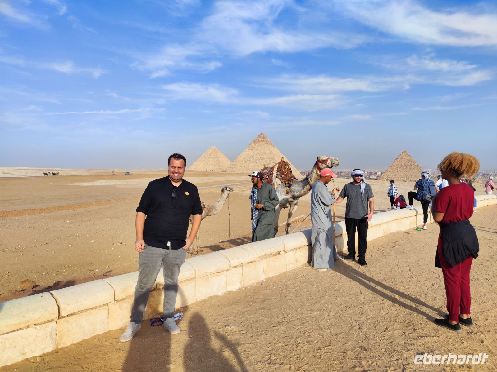 Der frühe Vogel fängt den Wurm war unsere heutigen Divise. Nach einem frühen Frühstück konnte unser erster Ausflug beginnen. Unser Schiff dockte in Port Said in Ägypten an und damit erreichten wir den afrikanischen Kontinent. Der zweitwichtigste Seehafen Ägypten liegt am nördlichen Ende des Suezkanals, den wir noch aus den Nachrichten kannten. Aber Port Said sollte nur eine Zwischenstation unserer Reise sein. Gemeinsam mit unserem Guide Samy machten wir uns auf dem Weg nach Kairo. Während der Fahrt erklärte uns Samy eine Menge über das Land und Leute, den Pharaonen und wir wurden immer wieder von der Verkehrssituation in Ägypten überrascht. Hupen zählt hier wohl zum guten Ton. Endlich erreichten wir das Ägyptische Nationalmuseum in Kairo, was im Jahr 1902 errichtet wurde. Allerdings ist für die Zukunft ein neues Museum geplant, dass das Museum doch in die Jahre gekommen ist. Im Eingangsbereich konnten für Statuen des Pharao Amenophis mit seiner geliebten Frau Teje und dem Sohn Echnaton entdecken. Auch der Pharao Ramses II, der durch seine lange Herrschaftszeit das Land nachhaltig prägte, begrüßte ist im Eingangsbereich. Samy führte uns durch die belebten Gänge und probierte uns so viel wie möglich zu erklären. Das Museum beherbergt über 150.000 Artefakte und über 50.000 Ausstellungstücke aus ganz Ägypten. Sicherlich ist einer der Höhepunkte unseres Besuches die Schätze aus dem Grab Tutenchamuns mitsamt seiner Totenmaske aus Gold, die wir leider nicht fotografieren durften. Auch die goldene Totenmaske des Psusennes I. war ein Highlight des Museums, wo wir gerne länger verweilt hätten. Aber wir hatten ja noch weitere Pläne für den Tag. Nach einem etwas kürzeren Mittagessen begaben wir uns in Richtung Pyramiden von Gizeh. Die Pyramiden von Gizeh sind die einzigen noch existierenden antiken Weltwunder und natürlich auch UNESCO-Weltkulturerbe. Vor über 4500 Jahren entstanden die drei Großpyramiden Cheops, Chephren und Mykerinos um ca. 2500 v.Chr. Die Cheops Pyramide ist die größte der drei großen Pyramide und misst an den Seiten jeweils 227,5 m und ist 137,5 m hoch. Unser Bus brachte uns zunächst zur Aussichtsplattform, von wo aus wir alle Pyramiden entdecken konnten. Was man im TV und auf Bilder nicht sehen kann, dass man von hier aus die Stadt Kairo im Hintergrund zu sehen ist. Die zweitgrößte Pyramide ist dem Sohn Cheops, Chepren gewidmet. In Wahrheit ist sie etwas kleiner als die Pyramide des Vaters, aber liegt jedoch auf einem Hügel und wirkt dadurch höher. Wie genau der Bau der Pyramiden mit seinen riesigen Steinquader erfolgte ist unklar. Es wird allerdings vermutet, dass die Steine auf einen Schlitten nach oben gezogen wurden. Als letztes Highlight besuchen wir die Sphinx, die berühmte Stadt mit einem Kopf eines Menschen und dem Körper eines Löwen. Auf Arabisch heißt die Sphinx Abu Al-Hul, was man mit Vater des Schreckens übersetzten könnte. Leider ist die Sphinx durch die Verwitterung etwas mitgenommen und es gibt das Gerücht, dass die Osmanen die Nase der Skulptur als Zielscheibe für Schießübungen genutzt haben. Nichtsdestotrotz war der Besuch ein tolles Erlebnis. Durch das Verkehrschaos ging es nun zurück nach Port Said und wir speisten auf unserem Schiff spät zu Abend.