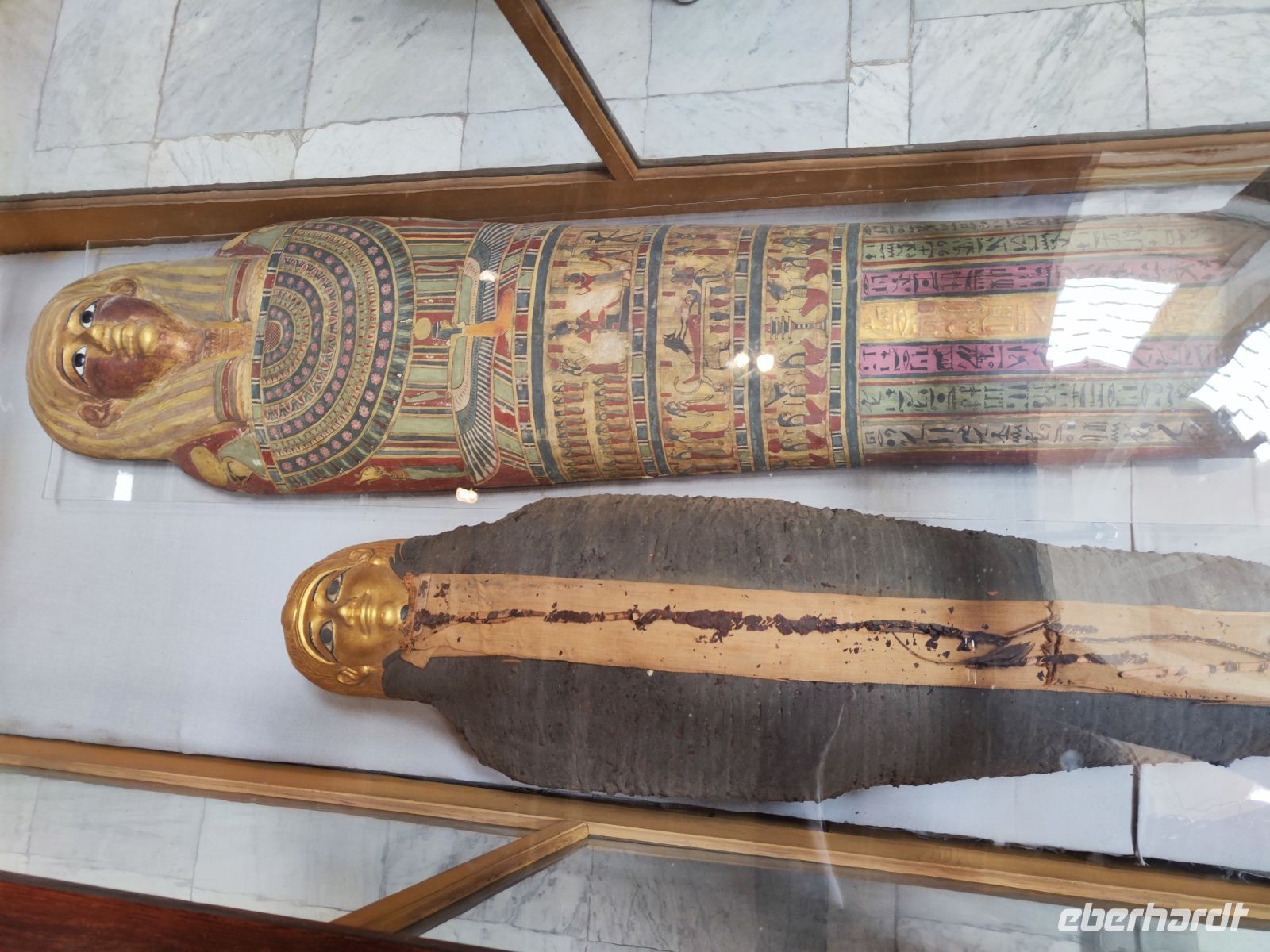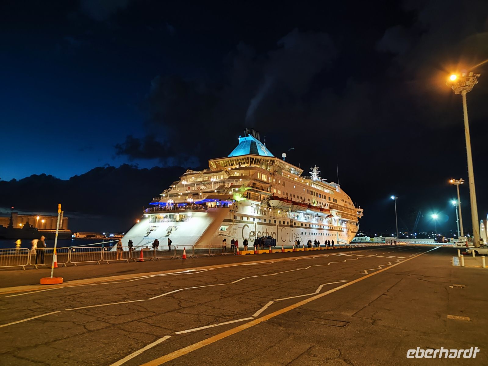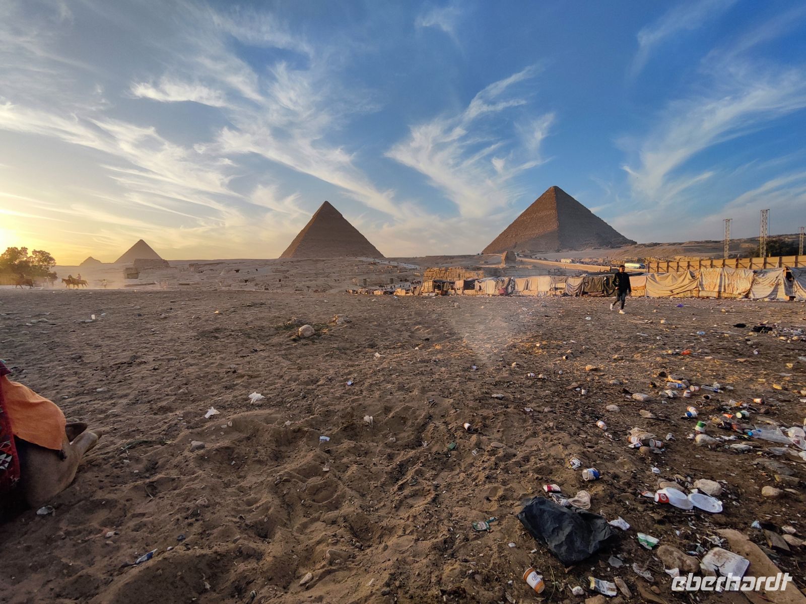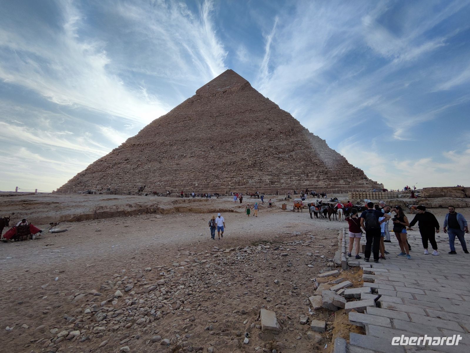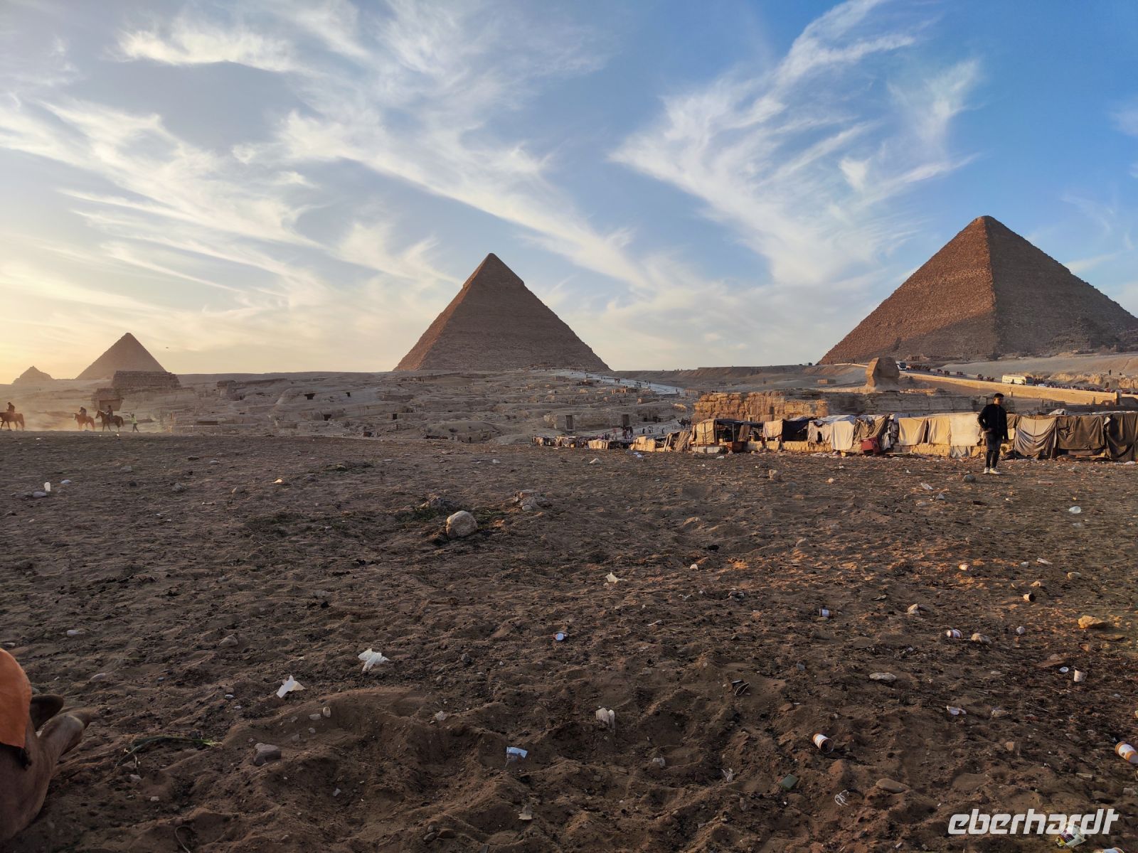 Der frühe Vogel fängt den Wurm war unsere heutigen Divise. Nach einem frühen Frühstück konnte unser erster Ausflug beginnen. Unser Schiff dockte in Port Said in Ägypten an und damit erreichten wir den afrikanischen Kontinent. Der zweitwichtigste Seehafen Ägypten liegt am nördlichen Ende des Suezkanals, den wir noch aus den Nachrichten kannten. Aber Port Said sollte nur eine Zwischenstation unserer Reise sein. Gemeinsam mit unserem Guide Samy machten wir uns auf dem Weg nach Kairo. Während der Fahrt erklärte uns Samy eine Menge über das Land und Leute, den Pharaonen und wir wurden immer wieder von der Verkehrssituation in Ägypten überrascht. Hupen zählt hier wohl zum guten Ton. Endlich erreichten wir das Ägyptische Nationalmuseum in Kairo, was im Jahr 1902 errichtet wurde. Allerdings ist für die Zukunft ein neues Museum geplant, dass das Museum doch in die Jahre gekommen ist. Im Eingangsbereich konnten für Statuen des Pharao Amenophis mit seiner geliebten Frau Teje und dem Sohn Echnaton entdecken. Auch der Pharao Ramses II, der durch seine lange Herrschaftszeit das Land nachhaltig prägte, begrüßte ist im Eingangsbereich. Samy führte uns durch die belebten Gänge und probierte uns so viel wie möglich zu erklären. Das Museum beherbergt über 150.000 Artefakte und über 50.000 Ausstellungstücke aus ganz Ägypten. Sicherlich ist einer der Höhepunkte unseres Besuches die Schätze aus dem Grab Tutenchamuns mitsamt seiner Totenmaske aus Gold, die wir leider nicht fotografieren durften. Auch die goldene Totenmaske des Psusennes I. war ein Highlight des Museums, wo wir gerne länger verweilt hätten. Aber wir hatten ja noch weitere Pläne für den Tag. Nach einem etwas kürzeren Mittagessen begaben wir uns in Richtung Pyramiden von Gizeh. Die Pyramiden von Gizeh sind die einzigen noch existierenden antiken Weltwunder und natürlich auch UNESCO-Weltkulturerbe. Vor über 4500 Jahren entstanden die drei Großpyramiden Cheops, Chephren und Mykerinos um ca. 2500 v.Chr. Die Cheops Pyramide ist die größte der drei großen Pyramide und misst an den Seiten jeweils 227,5 m und ist 137,5 m hoch. Unser Bus brachte uns zunächst zur Aussichtsplattform, von wo aus wir alle Pyramiden entdecken konnten. Was man im TV und auf Bilder nicht sehen kann, dass man von hier aus die Stadt Kairo im Hintergrund zu sehen ist. Die zweitgrößte Pyramide ist dem Sohn Cheops, Chepren gewidmet. In Wahrheit ist sie etwas kleiner als die Pyramide des Vaters, aber liegt jedoch auf einem Hügel und wirkt dadurch höher. Wie genau der Bau der Pyramiden mit seinen riesigen Steinquader erfolgte ist unklar. Es wird allerdings vermutet, dass die Steine auf einen Schlitten nach oben gezogen wurden. Als letztes Highlight besuchen wir die Sphinx, die berühmte Stadt mit einem Kopf eines Menschen und dem Körper eines Löwen. Auf Arabisch heißt die Sphinx Abu Al-Hul, was man mit Vater des Schreckens übersetzten könnte. Leider ist die Sphinx durch die Verwitterung etwas mitgenommen und es gibt das Gerücht, dass die Osmanen die Nase der Skulptur als Zielscheibe für Schießübungen genutzt haben. Nichtsdestotrotz war der Besuch ein tolles Erlebnis. Durch das Verkehrschaos ging es nun zurück nach Port Said und wir speisten auf unserem Schiff spät zu Abend.