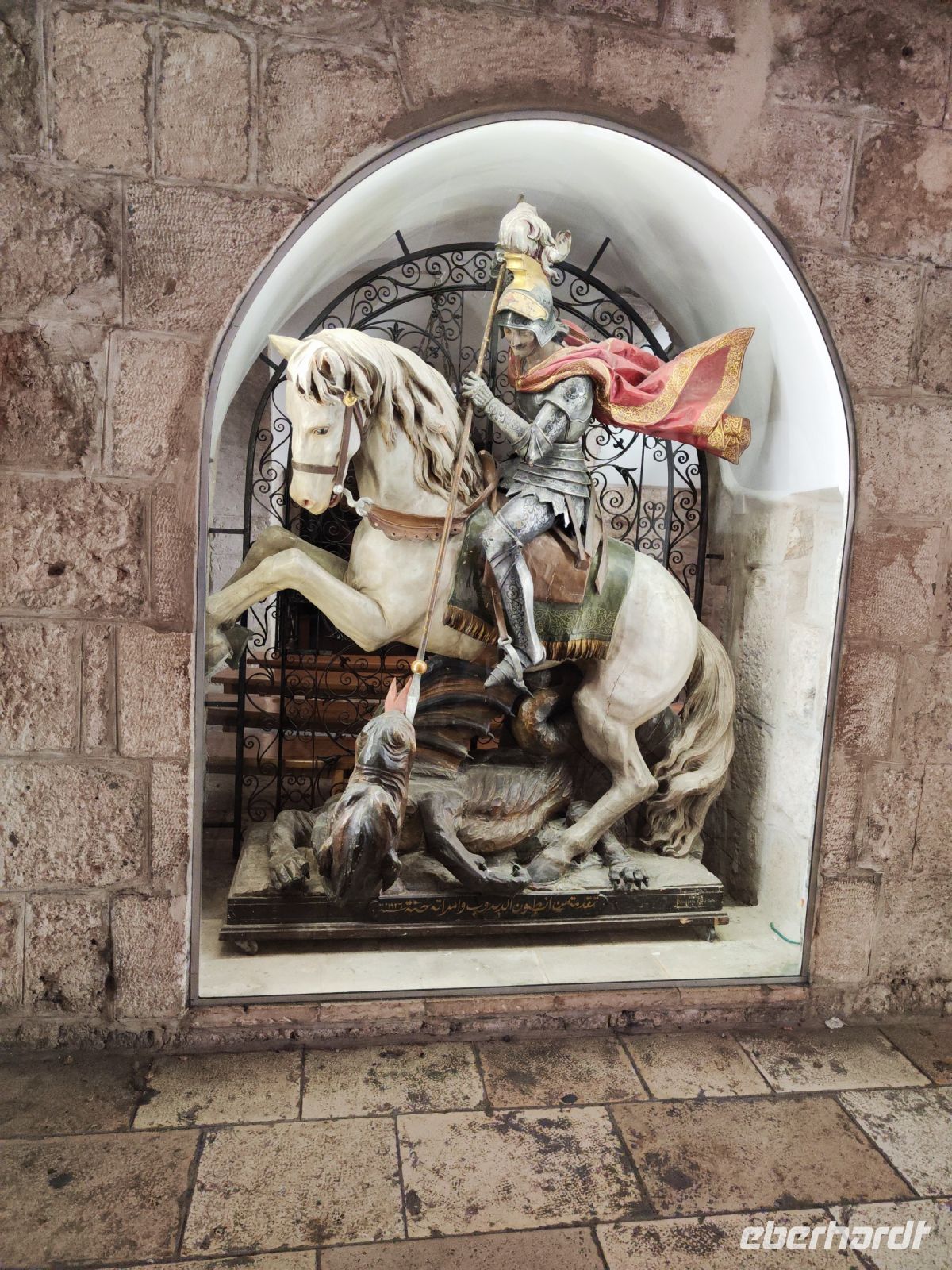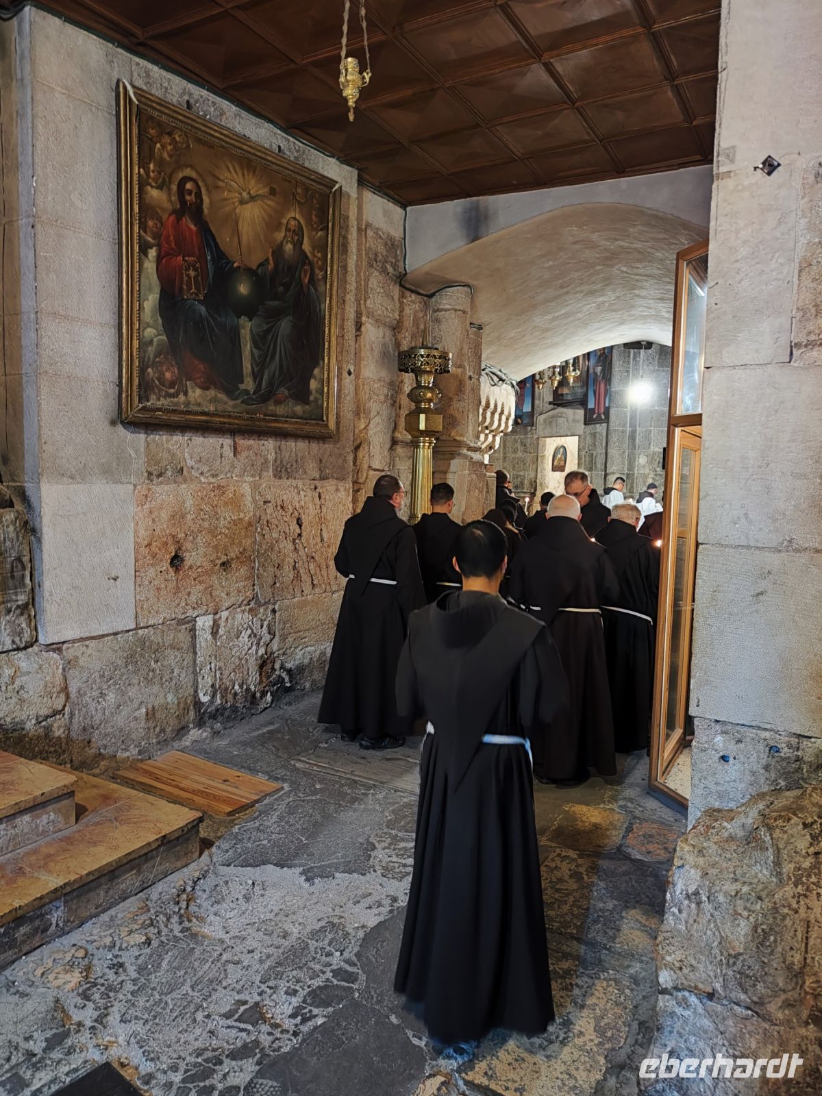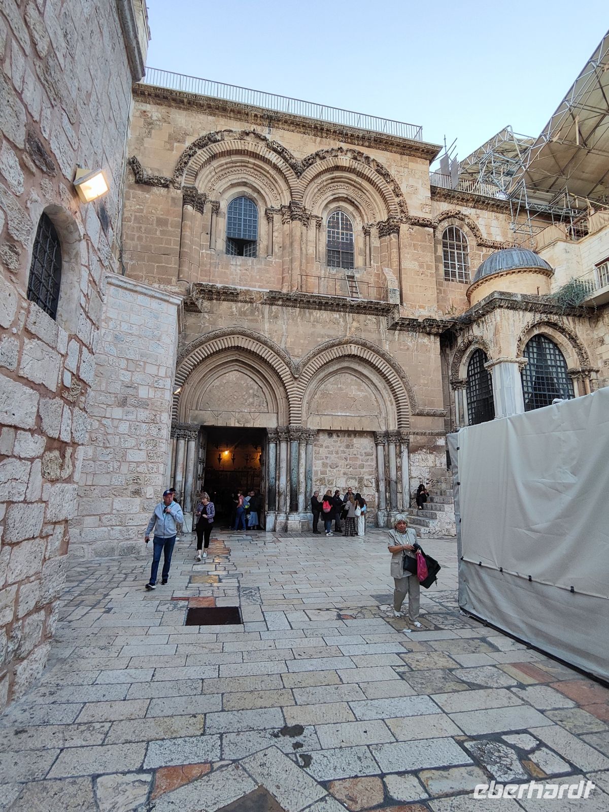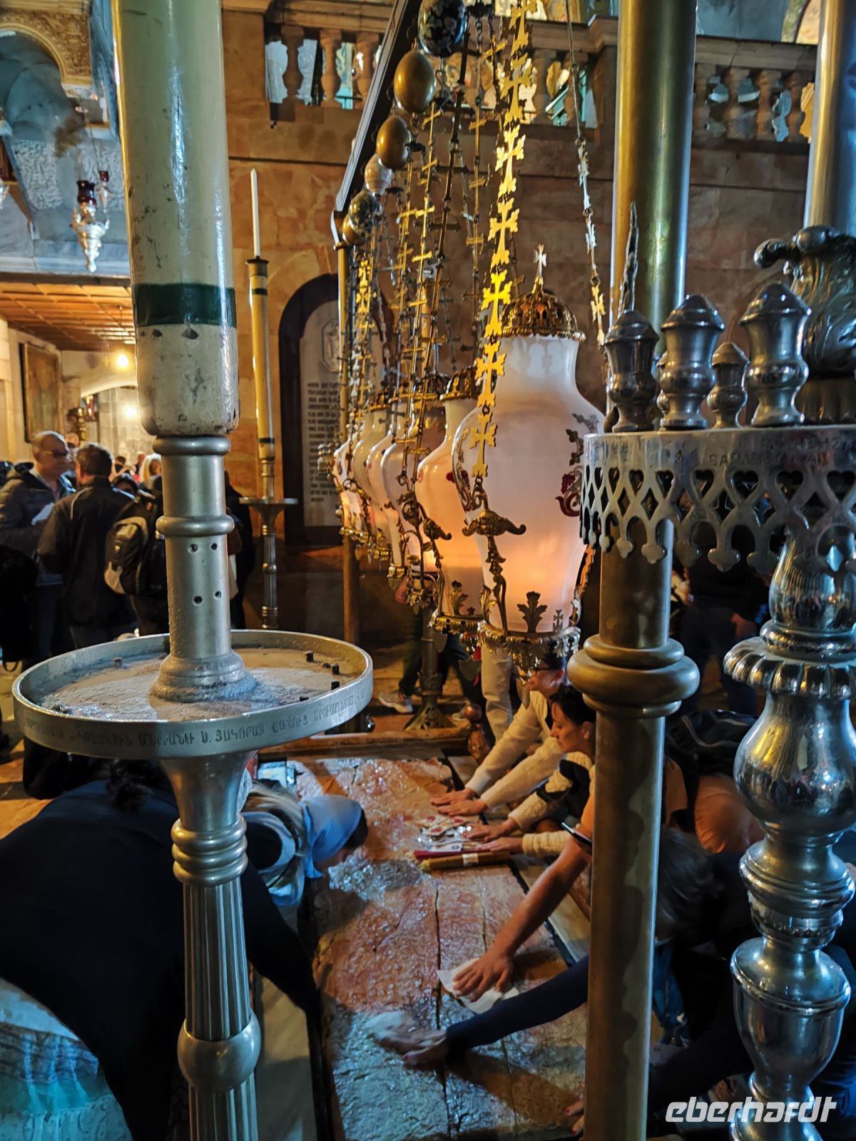 Ein neuer Tag, ein neuer Kontinent. Heute legte unser Schiff in Asien, genauer in Aschdod in Israel an. Nach dem Frühstück begann unser Tagesausflug mit dem Ziel Bethlehem. Und israelische Guide erwartete uns bereits und führte uns bis zum Grenzposten nach Palästina. Wir fuhren an den Grenzposten vorbei erreichen schließlich das Westjordanland. Direkt hinter dem Grenzposten erwartete uns bereits unser palästinensischer Reiseleiter. Zunächst legen noch eine Mittagspause ein und stärkten uns bei unseren freundlichen Gastgebern. Nun ging es endgültig in Richtung Stadtzentrum von Bethlehem. Hier verließen wir mit unseren Audioguides den Bus und spazieren gemeinsam zur Geburtskirche. Wie wir aus der Weihnachtsgeschichte erfahren haben, soll laut der Überlieferung nach Jesus in Bethlehem im Stall geboren worden sein. Zu dieser Zeit war kein Platz in den Herbergen frei und Maria und Josef brachten ihren Sohn Jesus in einem Stall zur Welt. An dieser Stelle befindet sich heutzutage die Geburtskirche. Bereits beim gebückten Eintritt durch die niedrige Demutspforte verneigten wir uns symbolisch vor Jesus und Maria. Im Inneren der Basilika erspähten wir eine endlose Warteschlange zum Einlass in die Geburtsgrotte. Unser örtlicher Reiseleiter zeigte uns deshalb eine identische kleine Grotte, die in der gleichen Tiefe liegen soll. Im Anschluss konnten wir noch den gut erhaltenen und restaurierten Kreuzgang bestaunen. Nach einem kurzen weiteren Halt im Laden mit den Olivenholz-Schnitzereien, sammelten wir unseren Reiseleiter wieder ein und fuhren zurück nach Jerusalem. Hier verließen wir wieder den Bus und spazierten zur Grabkirche von Jesus Christus. An dem Ort, an dem sich nach christlichem Glauben die Kreuzigung Jesus stattgefunden haben und damit auch seine Grablegung und seine Auferstehung. Die Kirche wurden der heutigen Form durch die Kreuzfahrer im 12. Jahrhundert errichte und wir können auch der Berg Golgota entdecken, wo das Kreuz von Jesus Christus gestanden haben soll. Auch das Grab Jeus befindet sich in der Grabkirche. Danach ging es weiter auf der Via Dolorosa, dem Kreuzweg oder die sogenannte "Straße der Schmerzen" mit den 14 Kreuzwegstationen, welche Jesus sein Kreuz von der Verurteilung zur Hinrichtung auf dem Hügel Golgota schleppen musste. Nach der 5. Station verließen wir den Kreuzweg und spazierten zur Klagemauer - der heiligsten Stätte der Juden. Nach einem kurzen Aufenthalt hieß es Abschied von der schönen Stadt Jerusalem nehmen. Ein letztes Foto vom beleuchteten Felsendom und dann schlenderten wir zurück zum Bus, der uns zu unserem schwimmenden Hotel bringen sollte.