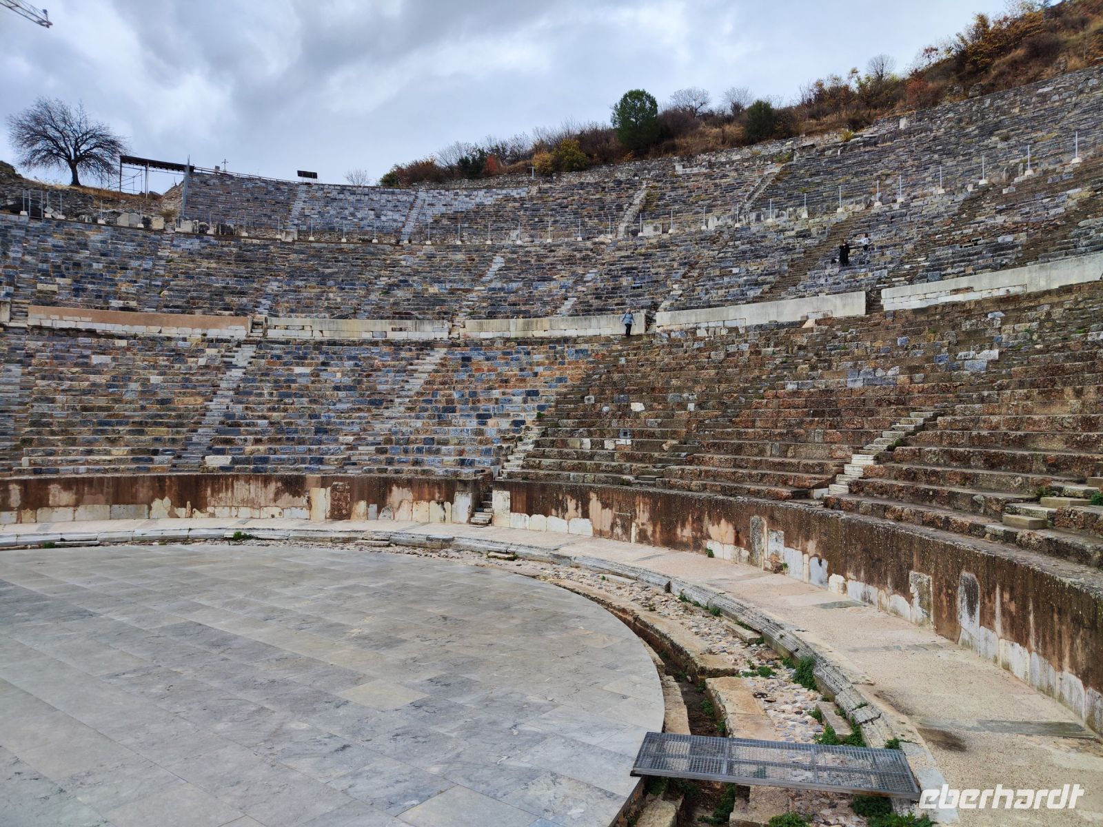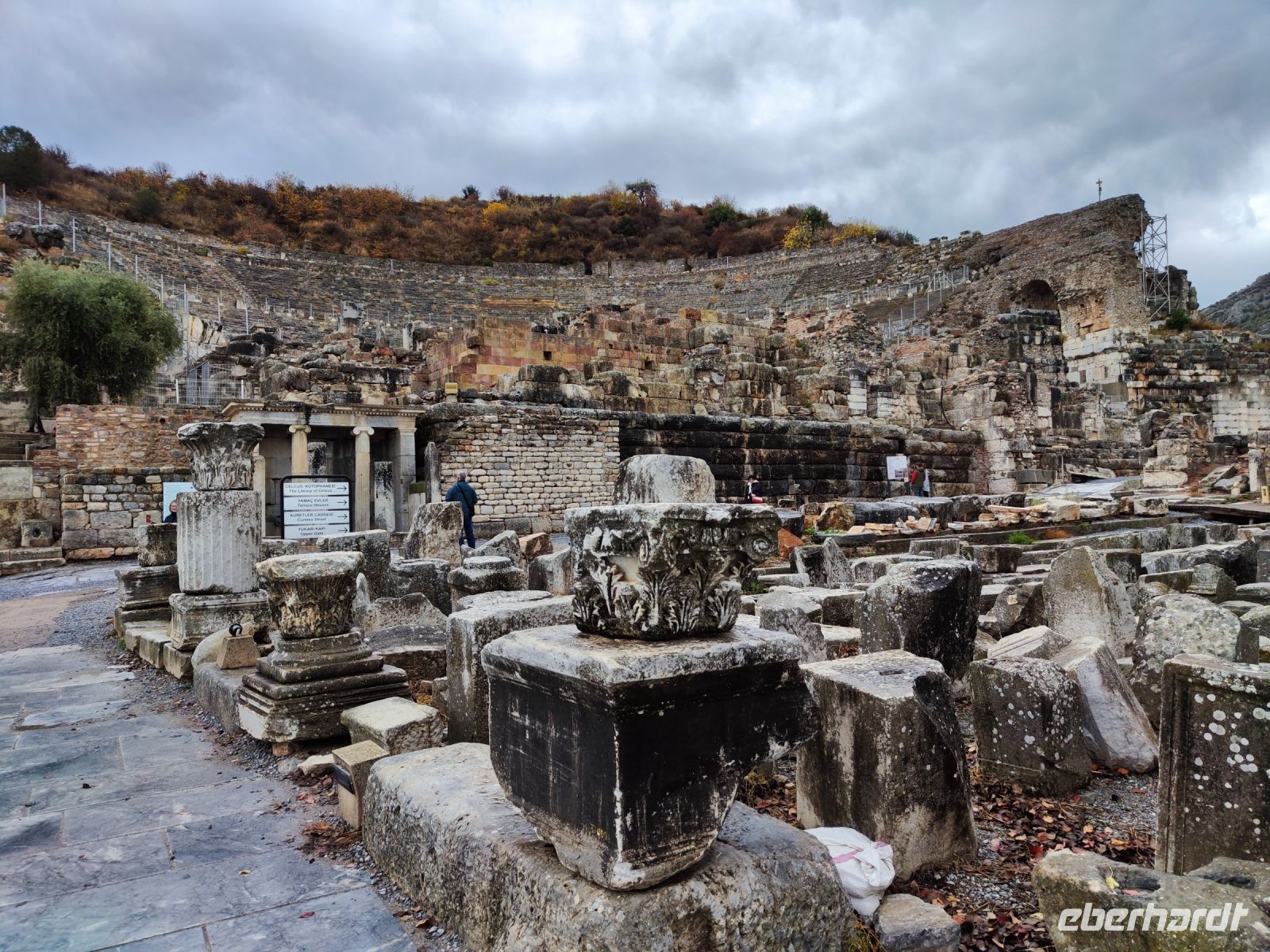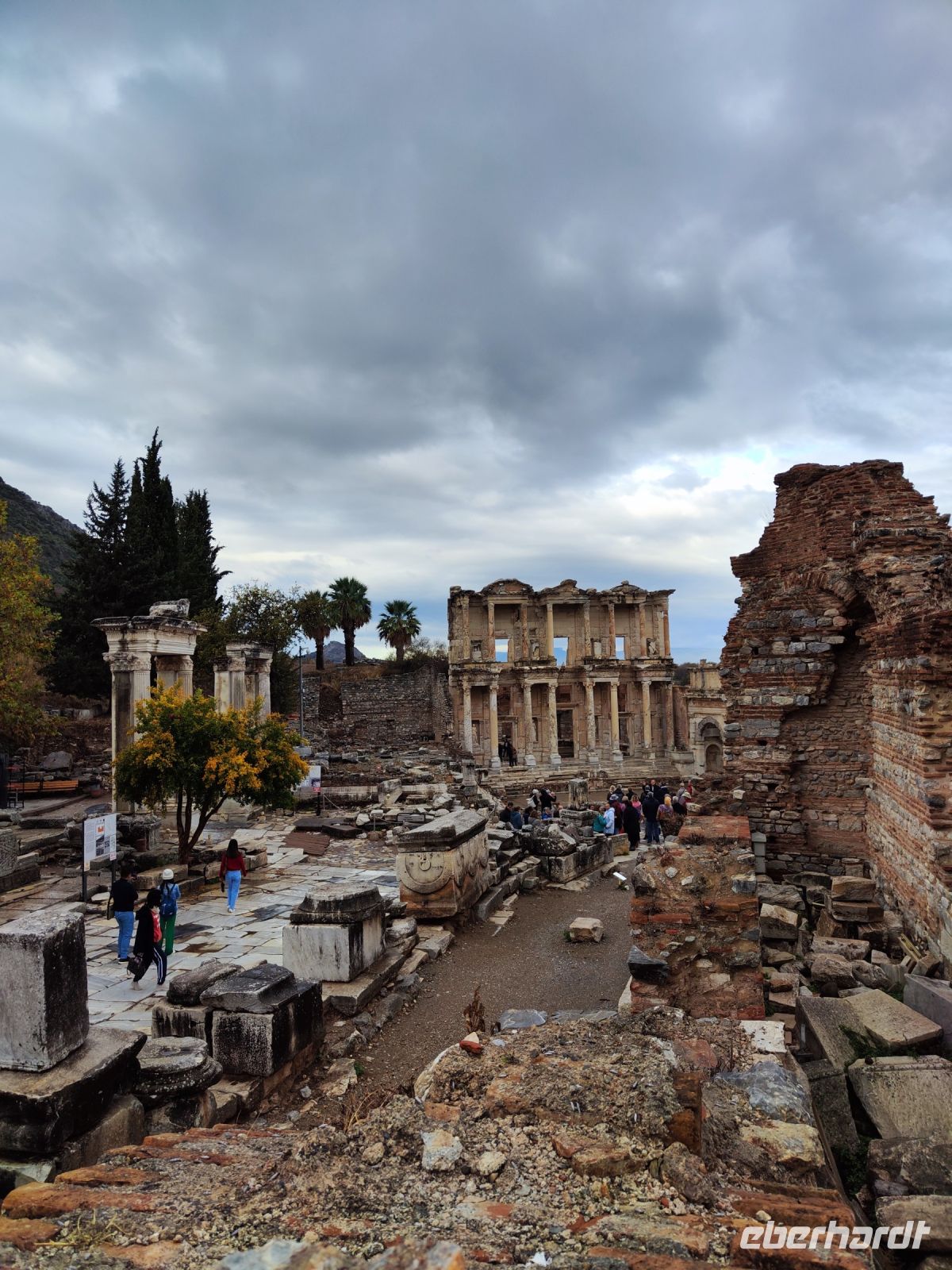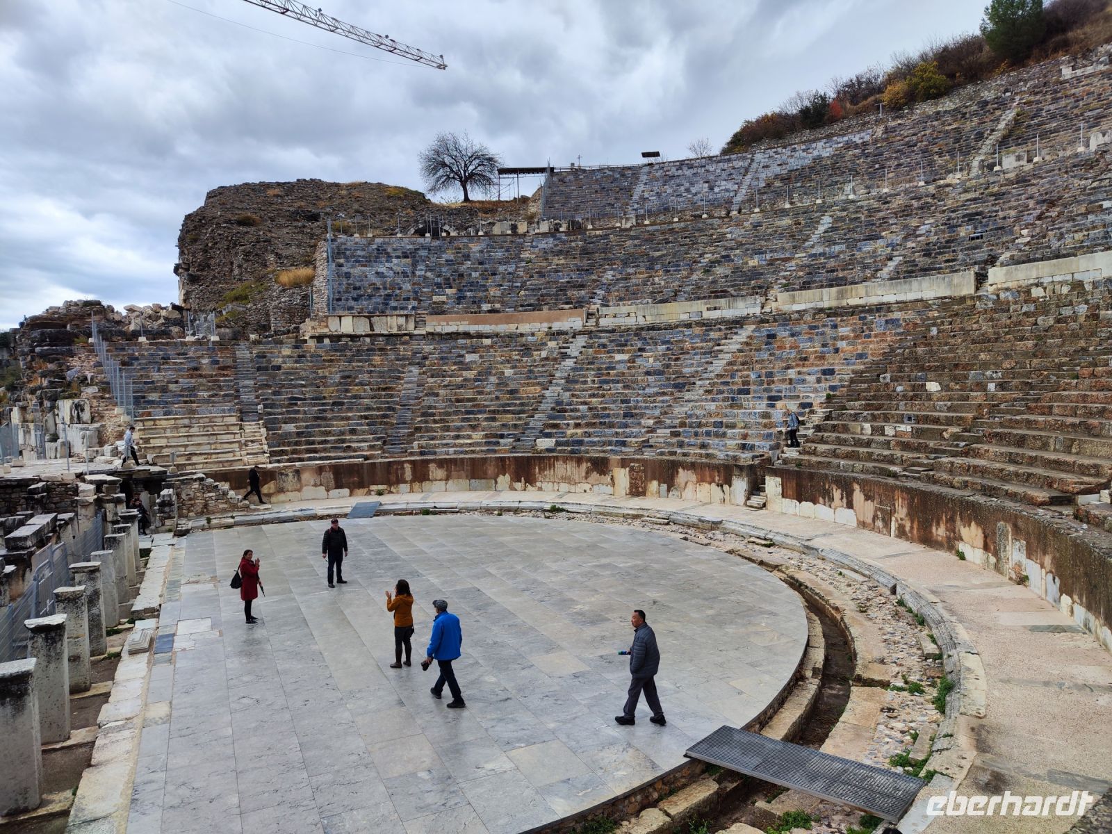 Ein neuer Tag, ein neues Reiseziel. Allerdings machten uns zunächst das Wetter in der Türkei einen Strich durch die Rechnung. Bei unserer Ankunft in Kusadasi stürmte und regnete es. Unsere kompetenten Ansprechpartner auf dem Boot beschlossen glücklicherweise kurzfristig den Anflug auf eine Stunde zu verschieben und tatsächlich hörte es später auf zu regnen. Unser Ziel: Die nächste antike Stadt zu erobern: Ephesus! Gemeinsam mit unserem herausragenden örtlichen Reiseleiter Yücel besuchten wir die antike Ausgrabungsstätte Ephesos oder Efes (wie das Bier :-) ). Die gewaltige Ausgrabungsstätte bot sehr viel zu sehen und ließ uns erahnen, welche Pracht hier früher geherrscht haben musste. Seit dem Jahr 2015 gehört Ephesos zum UNSECO Kulturweltwerbe und das vollkommen zu Recht. Die antike Hafenstadt Ephesos galt zu ihren Hochzeiten als das bedeutendste Handelszentrum des Mittelmeerraums. Über den Zeitraum von mehreren Jahrhunderten befand sich Ephesos unter dem Einfluss von verschiedenen Herrschern. Früher war es eine Stätte des Glaubens der Göttin Kybele und dem Artemiskult, später eine der wichtigsten Stätten des Christentums. Besonders eindrucksvoll war das große Theater, die Marmorstraße, die untere Agora (Marktplatz), der Hadrianstempel und die Bibliothek des Celsus. Die Bibliothek war mit seinen bunten Fassaden zur Hochphase von Ephesos nur einem schönen Gebäude unter vielen. Heutzutage ist die Bibliothek das absolute Aushängeschild von Ephesos. Erbaut wurde die Bibliothek 135 n. Chr. von einem Herrn Aquila zur Erinnerung an seinen Vater Celsus. Dieser war zu Lebzeiten Statthalter der Provinz Asia. Österreichischen Archäologen gelang es in den siebziger Jahren aus 850 Trümmerteilen zumindest die Fassade wieder in einen fast originalen Status zu versetzen. Eine eindrucksvolle Erinnerung an die Vergangenheit. Im großen Theater aus dem 3. Jahrhundert haben früher bis zu 25.000 Zuschauer Platz gefunden und auch heute noch werden Freiluftkonzerte hier gespielt. Nach dem beeindruckten Ausflug in die Vergangenheit, stoppten wir noch kurz an einer Leder-Fabrik, bevor wir zurück auf Schiff fuhren. Hier hatten wir den Nachmittag zur freien Verfügung und konnten in Kusadasi noch letzte Shopping-Besorgungen erledigen. Am Abend speisten wir zum letzten Mal in unserem liebgewonnenen Restaurant und wurden von der Crew mit einer kleinen Tanzeinlage überrascht. Gemütlich ließen wir den letzten Abend an Bord bei einem Getränk ausklingen.