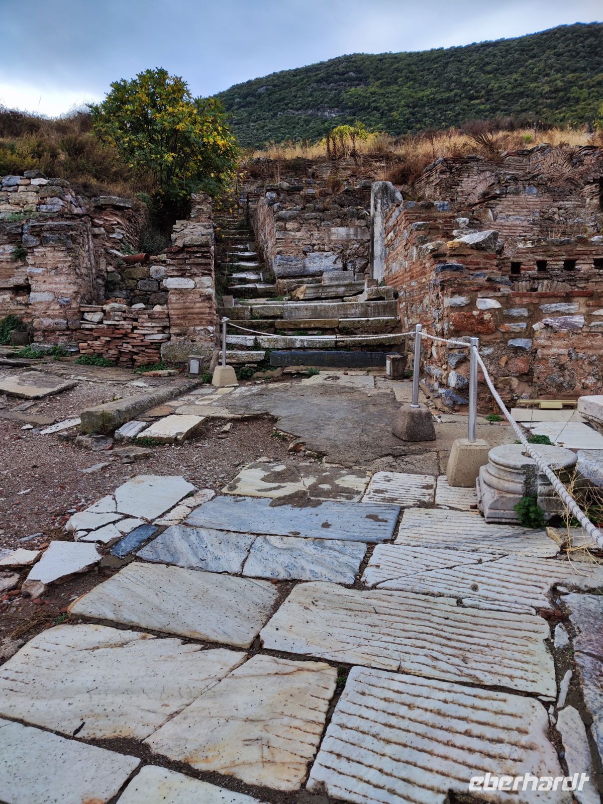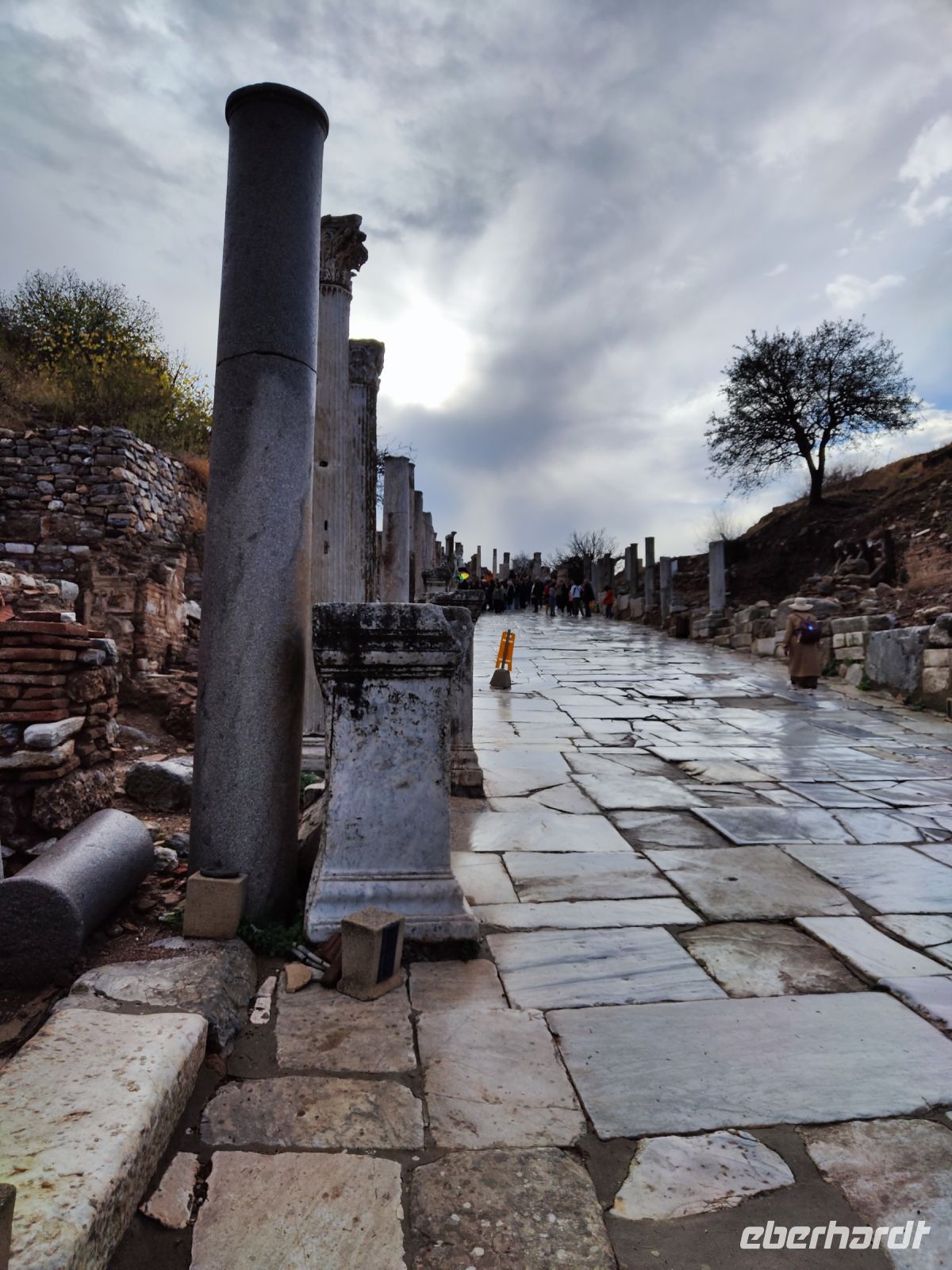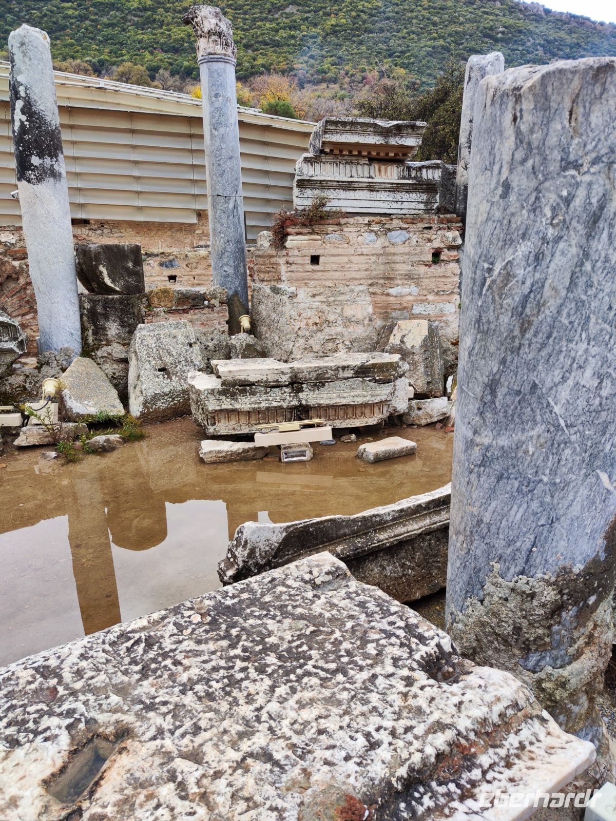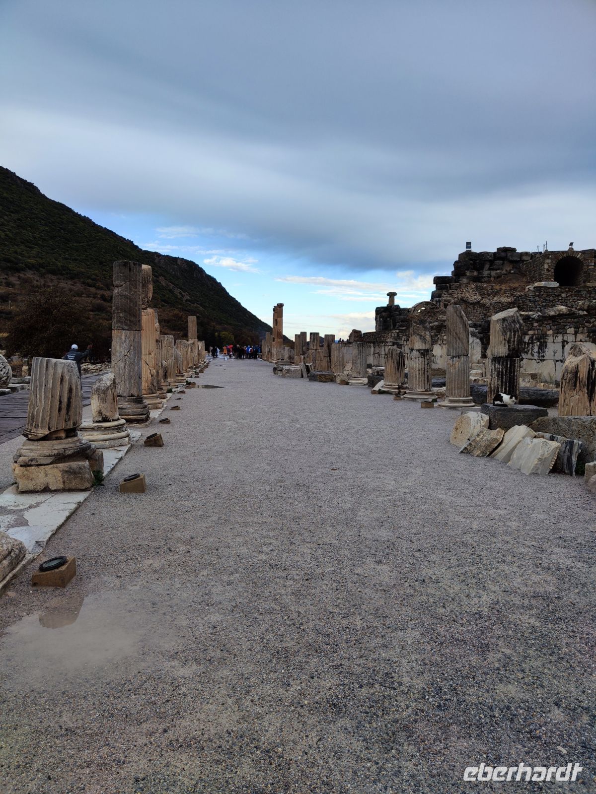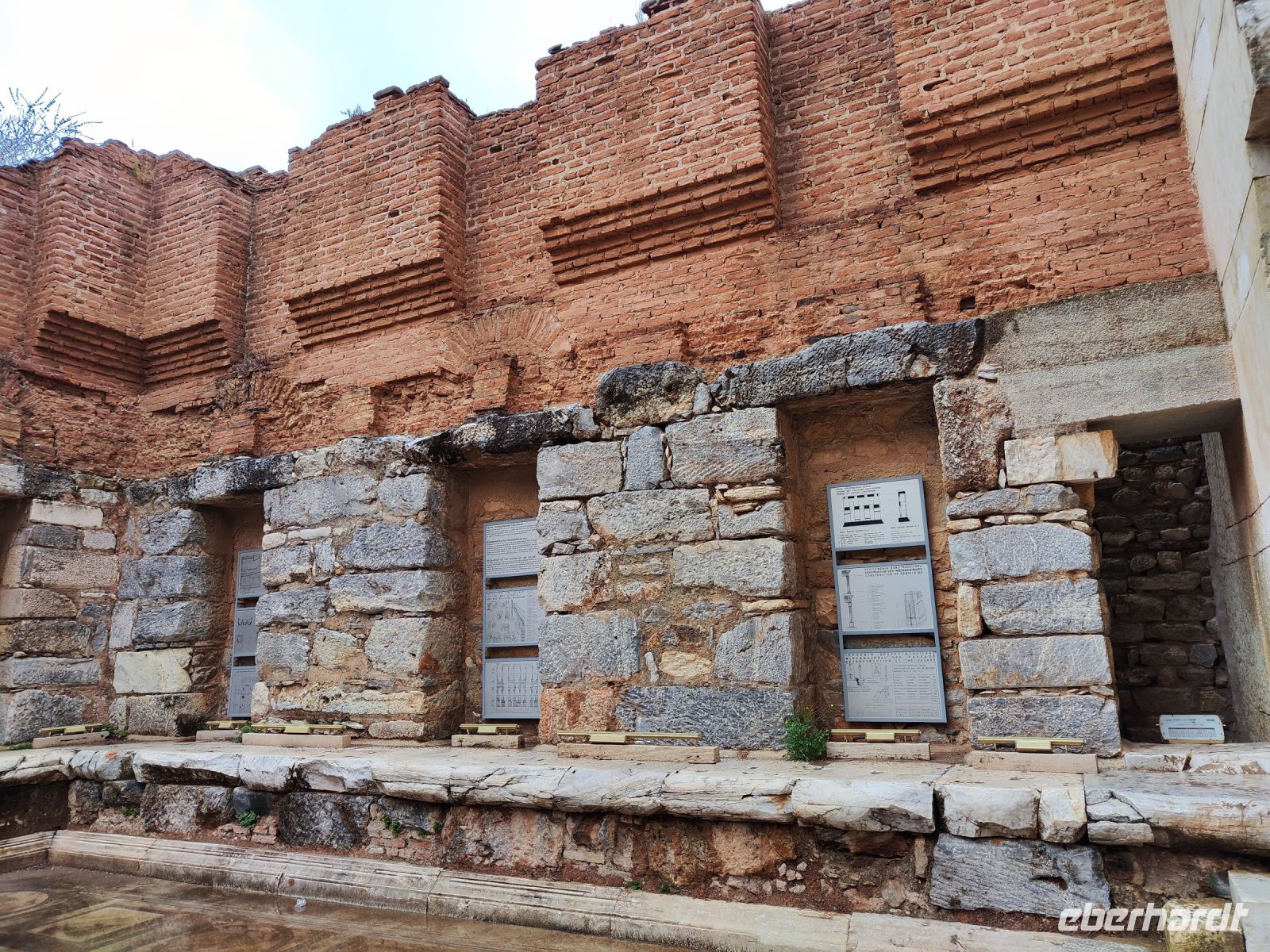 Ein neuer Tag, ein neues Reiseziel. Allerdings machten uns zunächst das Wetter in der Türkei einen Strich durch die Rechnung. Bei unserer Ankunft in Kusadasi stürmte und regnete es. Unsere kompetenten Ansprechpartner auf dem Boot beschlossen glücklicherweise kurzfristig den Anflug auf eine Stunde zu verschieben und tatsächlich hörte es später auf zu regnen. Unser Ziel: Die nächste antike Stadt zu erobern: Ephesus! Gemeinsam mit unserem herausragenden örtlichen Reiseleiter Yücel besuchten wir die antike Ausgrabungsstätte Ephesos oder Efes (wie das Bier :-) ). Die gewaltige Ausgrabungsstätte bot sehr viel zu sehen und ließ uns erahnen, welche Pracht hier früher geherrscht haben musste. Seit dem Jahr 2015 gehört Ephesos zum UNSECO Kulturweltwerbe und das vollkommen zu Recht. Die antike Hafenstadt Ephesos galt zu ihren Hochzeiten als das bedeutendste Handelszentrum des Mittelmeerraums. Über den Zeitraum von mehreren Jahrhunderten befand sich Ephesos unter dem Einfluss von verschiedenen Herrschern. Früher war es eine Stätte des Glaubens der Göttin Kybele und dem Artemiskult, später eine der wichtigsten Stätten des Christentums. Besonders eindrucksvoll war das große Theater, die Marmorstraße, die untere Agora (Marktplatz), der Hadrianstempel und die Bibliothek des Celsus. Die Bibliothek war mit seinen bunten Fassaden zur Hochphase von Ephesos nur einem schönen Gebäude unter vielen. Heutzutage ist die Bibliothek das absolute Aushängeschild von Ephesos. Erbaut wurde die Bibliothek 135 n. Chr. von einem Herrn Aquila zur Erinnerung an seinen Vater Celsus. Dieser war zu Lebzeiten Statthalter der Provinz Asia. Österreichischen Archäologen gelang es in den siebziger Jahren aus 850 Trümmerteilen zumindest die Fassade wieder in einen fast originalen Status zu versetzen. Eine eindrucksvolle Erinnerung an die Vergangenheit. Im großen Theater aus dem 3. Jahrhundert haben früher bis zu 25.000 Zuschauer Platz gefunden und auch heute noch werden Freiluftkonzerte hier gespielt. Nach dem beeindruckten Ausflug in die Vergangenheit, stoppten wir noch kurz an einer Leder-Fabrik, bevor wir zurück auf Schiff fuhren. Hier hatten wir den Nachmittag zur freien Verfügung und konnten in Kusadasi noch letzte Shopping-Besorgungen erledigen. Am Abend speisten wir zum letzten Mal in unserem liebgewonnenen Restaurant und wurden von der Crew mit einer kleinen Tanzeinlage überrascht. Gemütlich ließen wir den letzten Abend an Bord bei einem Getränk ausklingen.