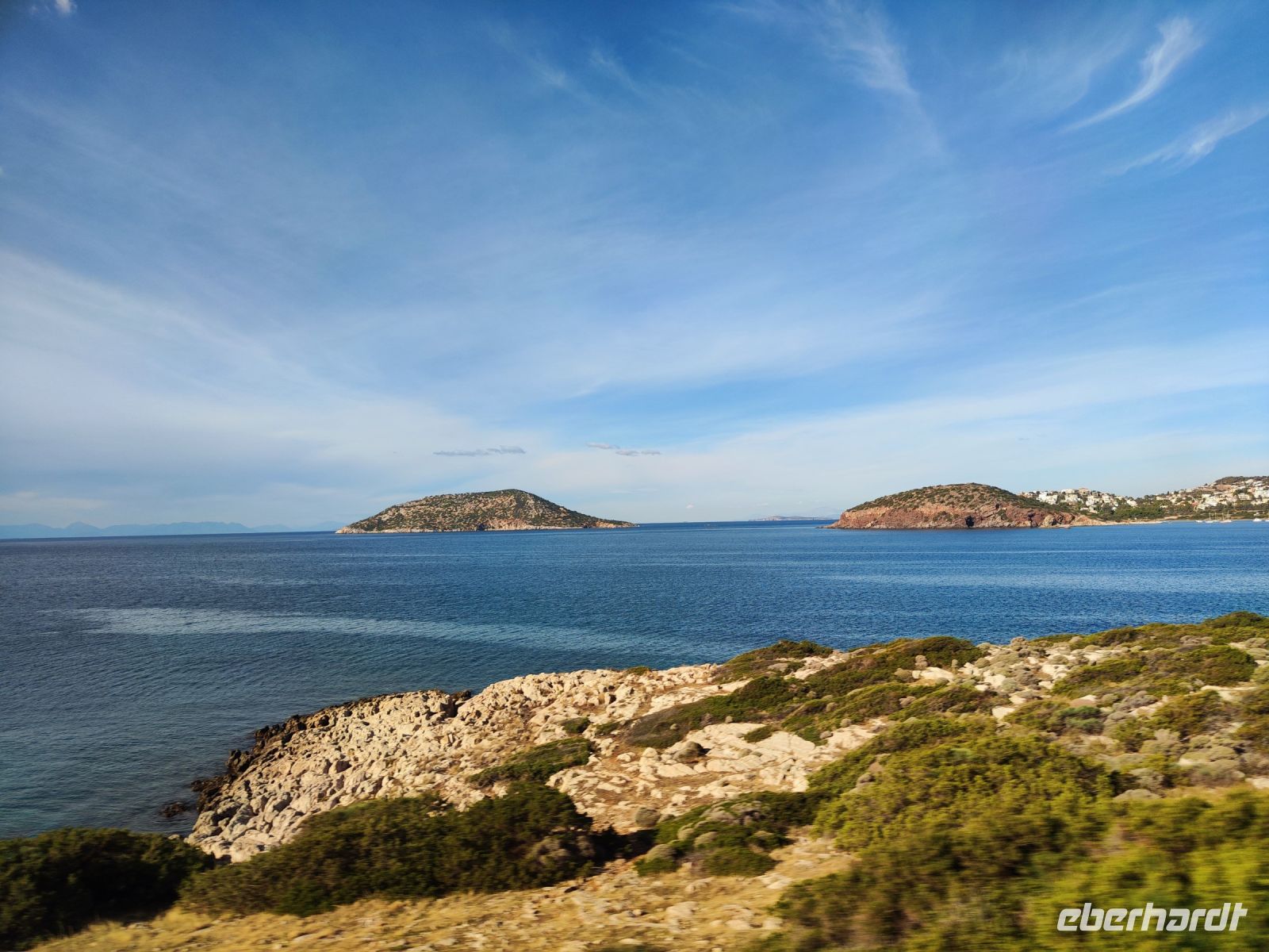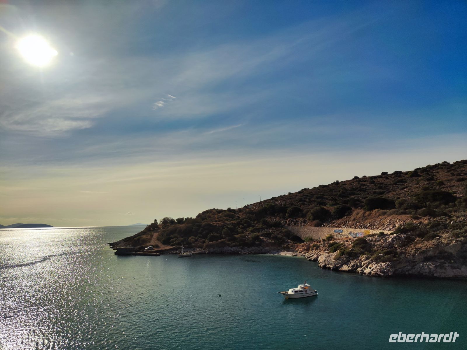Leider war heute der letzte Tag angebrochen. Eine letzte Nacht und ein letztes Frühstück an Bord, bevor wir unser schwimmendes Hotel verlassen mussten. Voller guter Erinnerungen verabschiedeten wir uns von der Crew und wurde nach einer kleinen Wartezeit in Piräus abgeholt. Doch eine kleine Überraschung stand noch aus. Da wir noch ausreichend Zeit bis zu unserem Flug hatten, bauten wir noch eine Küstenfahrt zum Kap Sounion und dem Tempel von Poseidon in unser Programm ein. Die Fahrt entlang der Küste von Attikas war einfach traumhaft und wir konnten Griechenland nochmals von einer anderen Seite aus kennenlernen. Am Kap Sounion konnten wir den Tempel des Poseidons besichtigen oder einen Cappuccino auf der Terrasse genießen.
