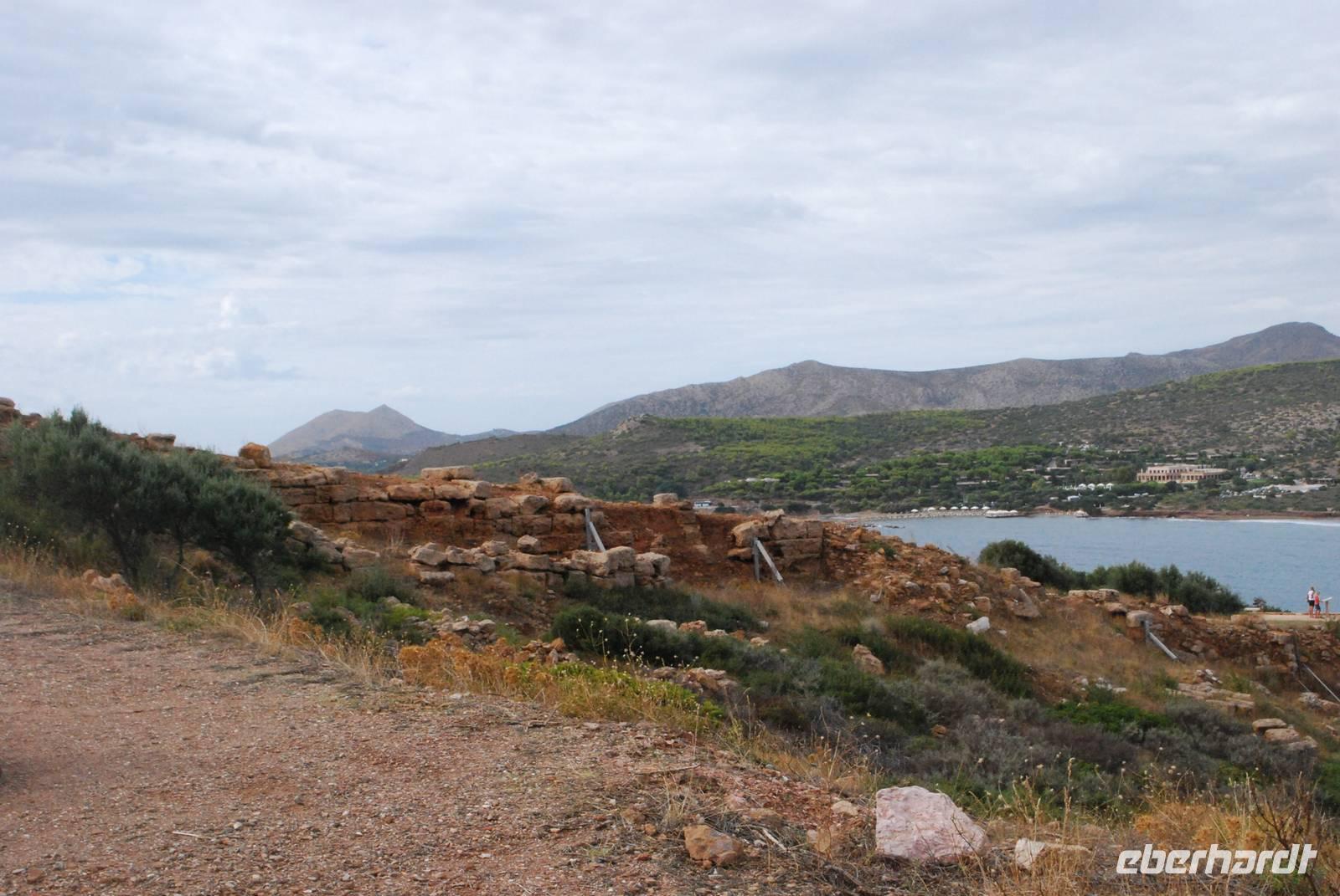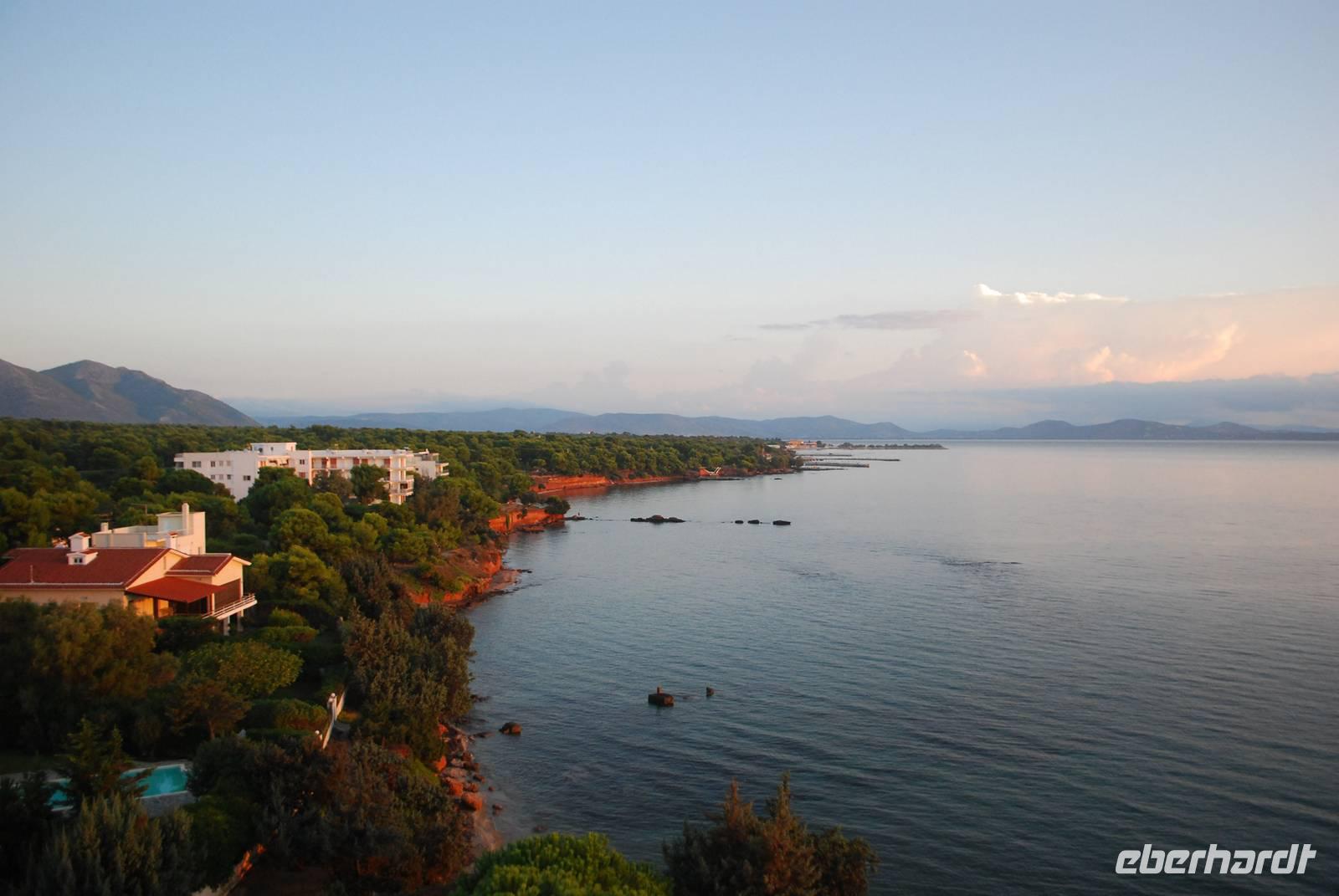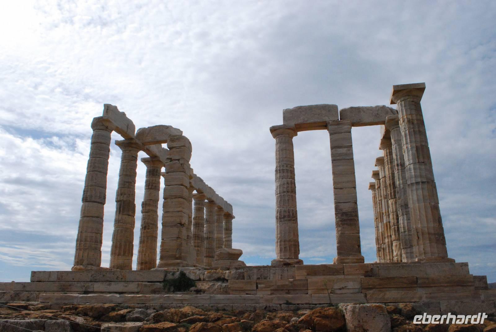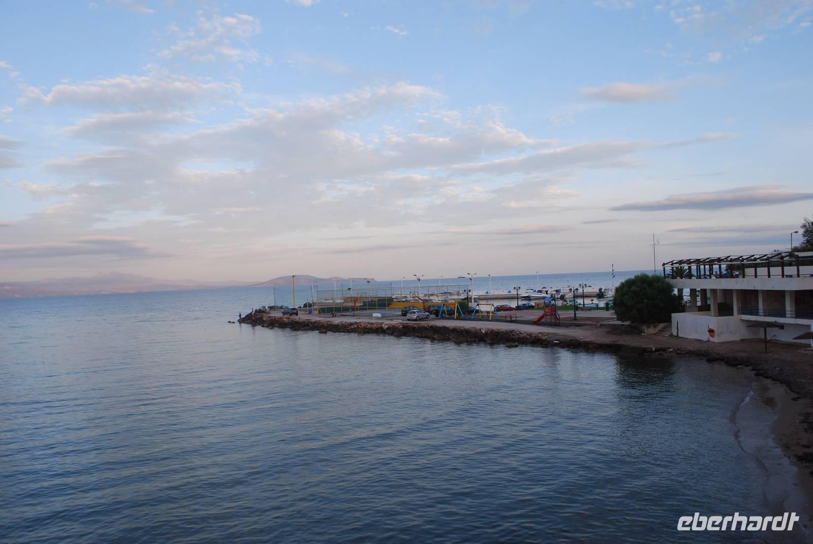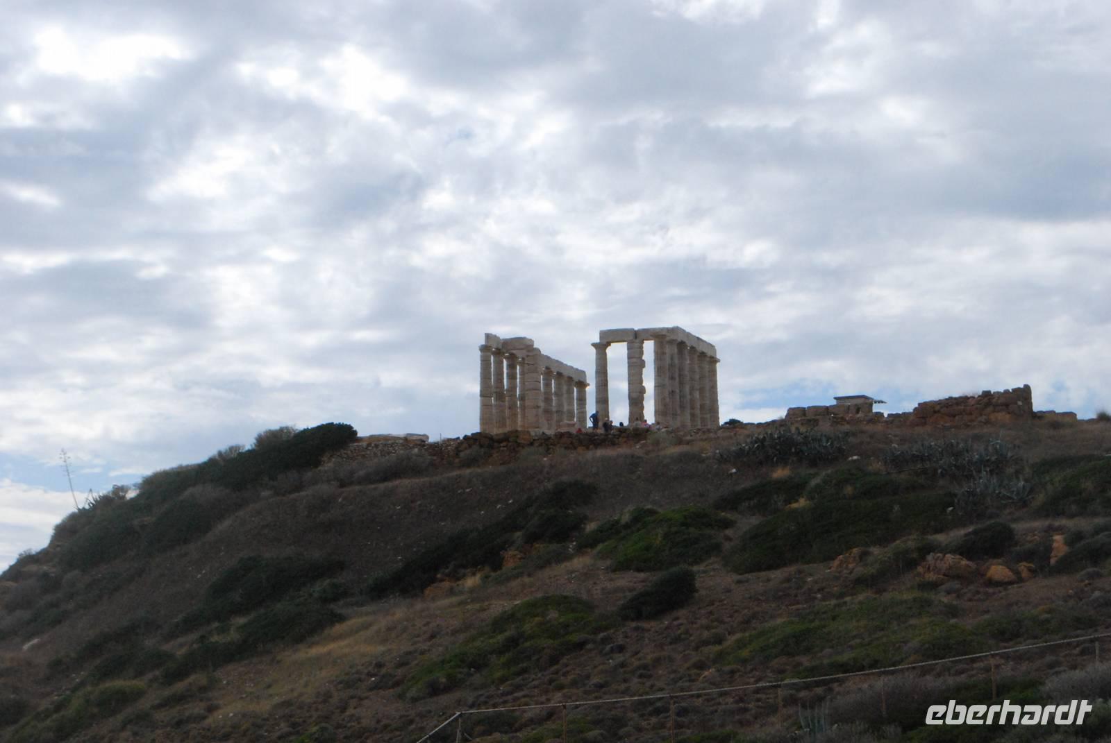 Der Kap Sounion befindet sich südlich von Athen und ist für seinen Poseidon-Tempel berühmt. Das Poseidon-Heiligtum wurde an der Stelle gebaut weil sich dort eine gefährliche Meeresenge befindet, die sehr gefährlich ist - noch heute. Der Tempel wurde gebaut um Poseidon, der Meeresgott zu gefallen und dann unbeschädigt durch die Meeresenge mit dem Schiff zu fahren. Von diesem Tempel bleiben noch einige Überreste wie die meisten dorischen Säulen. Wir hatten auch die Überraschung die Einwohner der Tempelanlage zu begegnen und zwar die dort lebende und geschützte Rebhühner. Danach fahren wir nach Mati wo sich unser Hotel befindet. Die Lage ist einfach perfekt: direkt ans Meer gebaut und mit einem herrlichen Blick von der Terrasse auf der Sonnenuntergang - hoffen wir, dass das Wetter in den nächsten Tagen besser wird um einem Sonnenuntergang richtig genießen zu können.