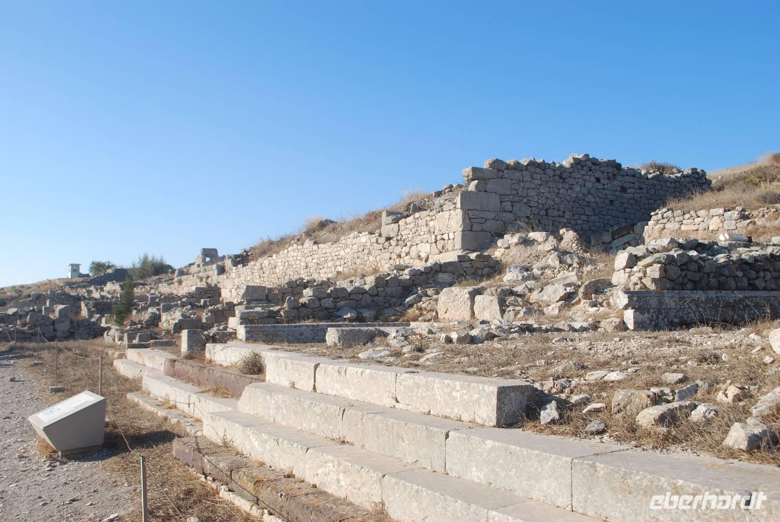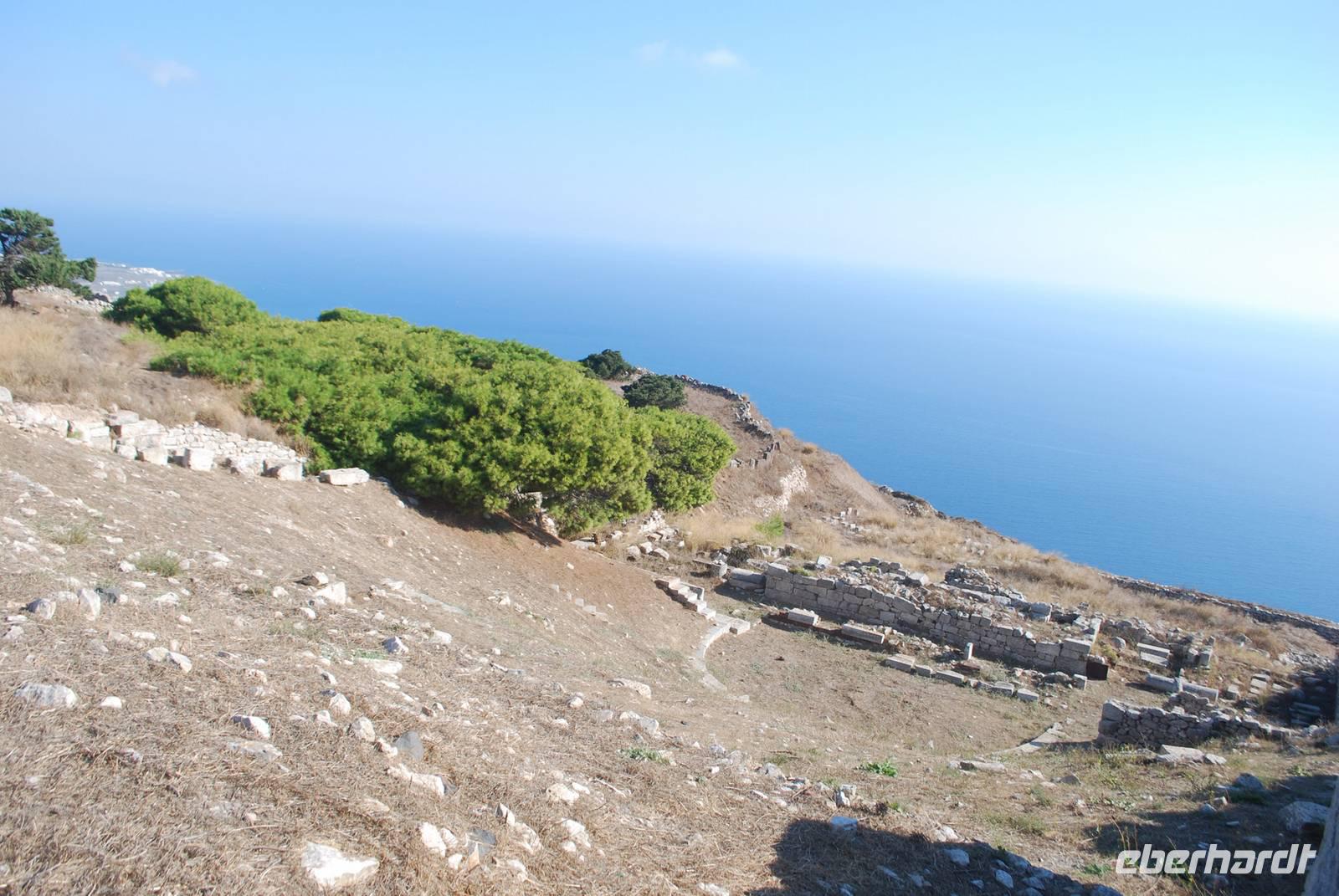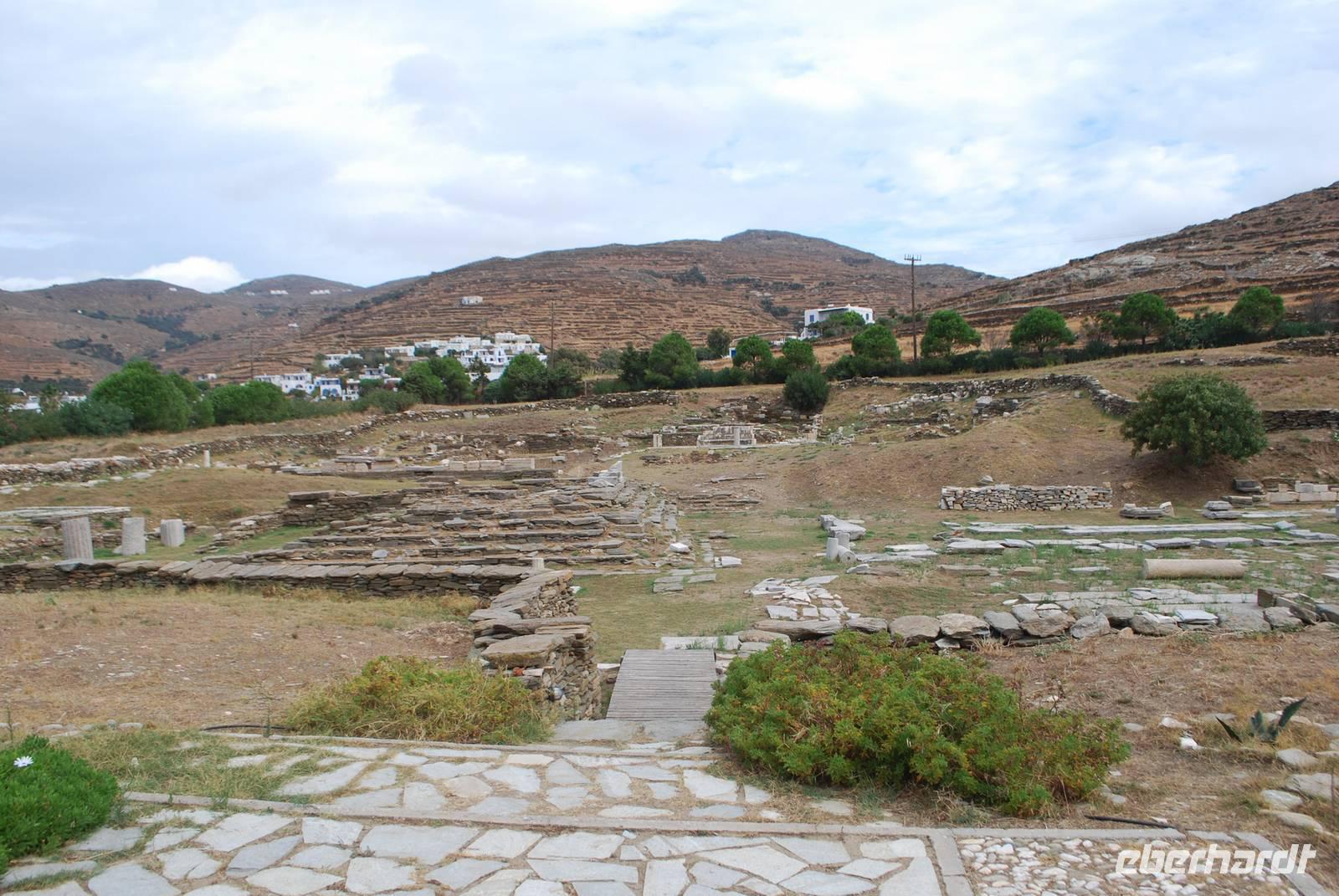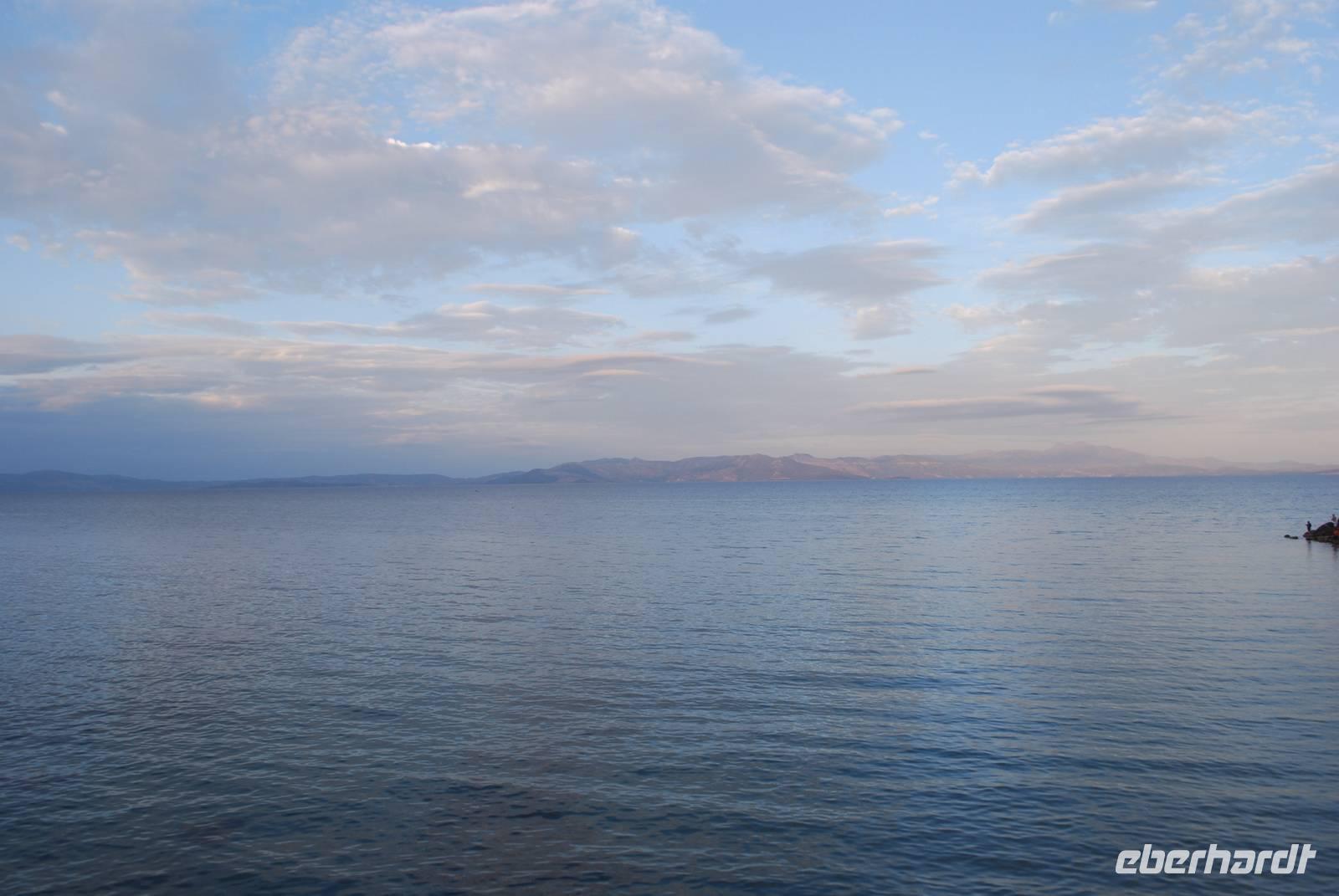 Der Tag beginnt um eine anständige Uhrzeit. Gegen 9 Uhr starten wir zu unserer Inselrundfahrt. Unserer erster Ziel hätten wir sogar zur Fuß erreichen können: das am Hotel ganz nah gelegenen Poseidon-Heiligtum. Obwohl wir schon zwei an Poseidon gewidmete Tempelanlagen besichtigt haben, erfahren wir durch Simeon, dass es doch wenige davon in Griechenland gibt. Die Besonderheit diese Anlage: sie ist nicht nur an Poseidon sondern auch an seine Gattin, Amphitrite gewidmet. Hier erfahren wir auch mehr über die Geburt der Götter: von den Chaos, zu den Titanen die von Zeus dann besiegt worden sind. Mit ihre zahlreichen Göttern, die jeder eine ganz besondere Funktion hatten, ist die griechische Religion der Antike schon relativ komplex.