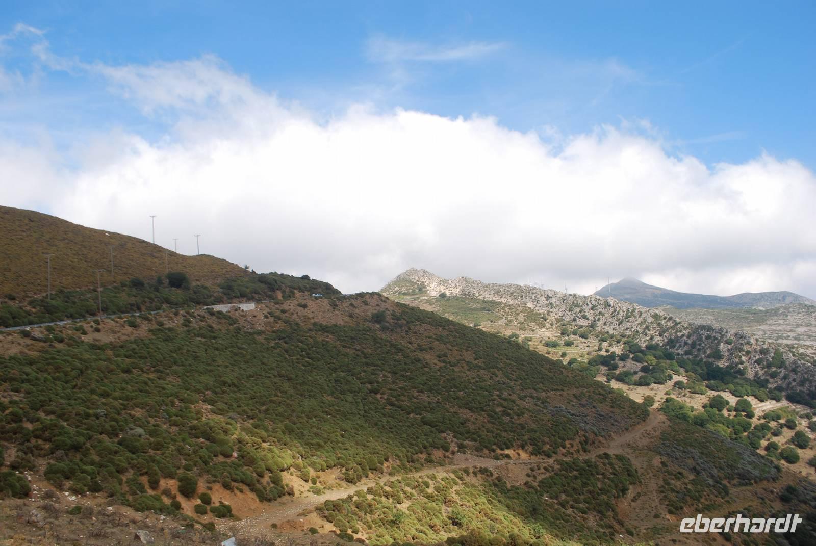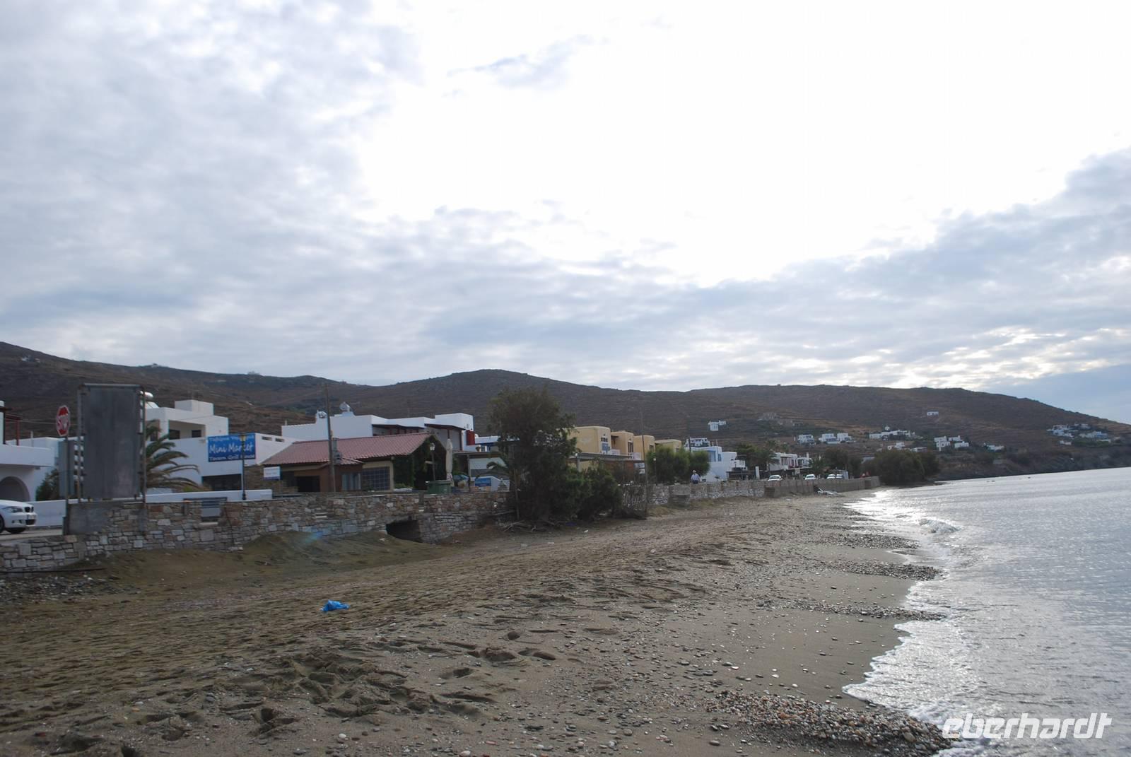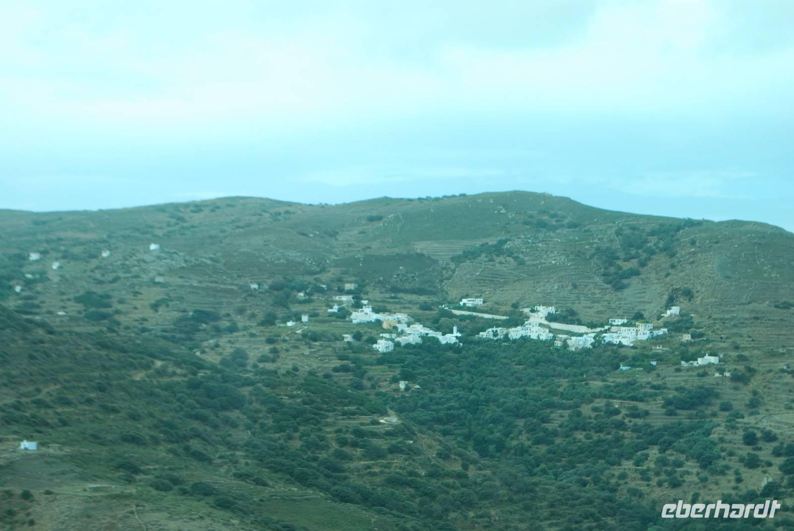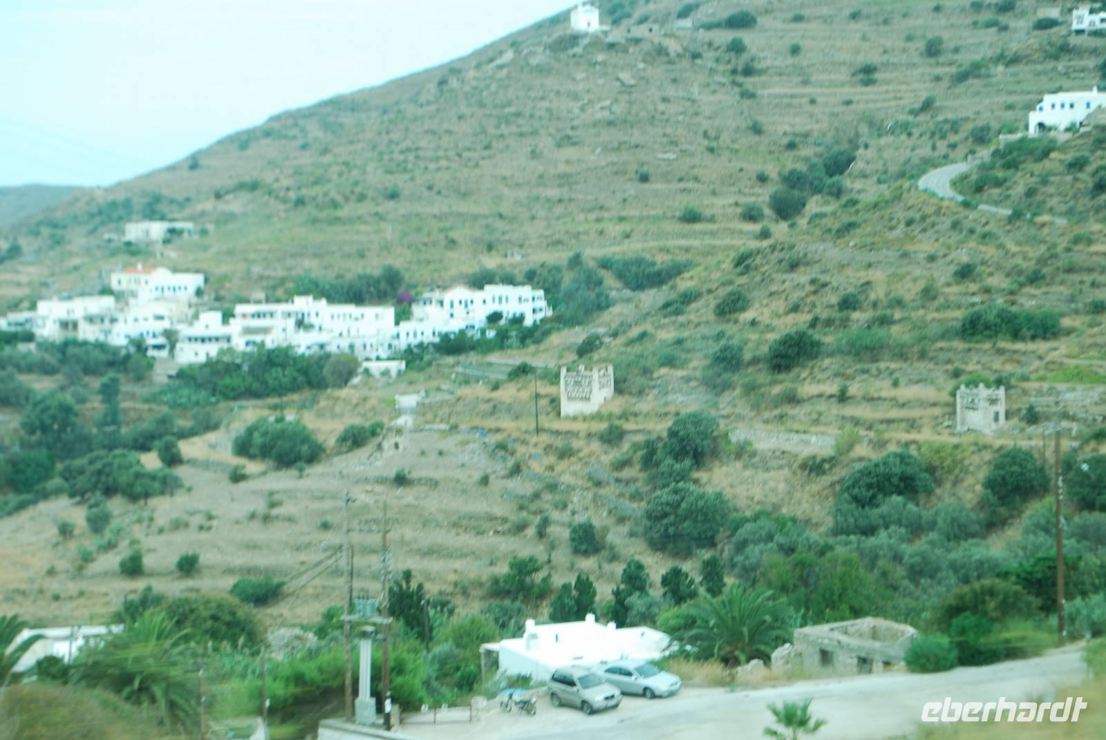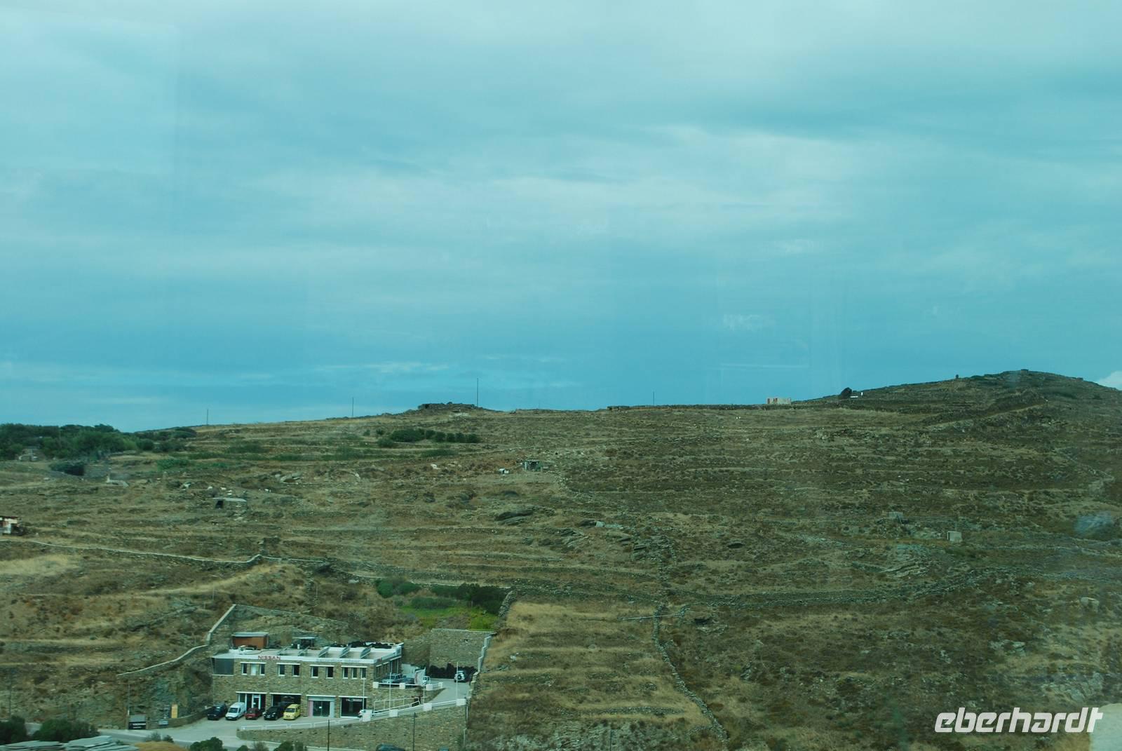 Am späten Vormittag verlassen wir die Küste und fahren im Landesinnere zu einer der malerischsten Dörfer der Insel: Volax. Simeon führt uns durch die kleinen Gassen und erzählt uns vieles über die Bauweise der Häuser auf den Kykladen. Ganz erstaunt erfahren wir auch, dass die weiße Farbe der Häuser, die wir für ganz typisch halten, erst in den 60er Jahren entstanden ist, als den griechischen Staat der Tourismus dort entwickelt hat. Wir besichtigen auch ein typisches Häuschen. Nach der Besichtigung vom Korbflechterdorf ist es schon Zeit zum Essen. Dafür bringt uns Simeon zu einer Taverne in der malerische Bucht von Panormos nah Pigros unseres nächsten Ziel. Mit Blick auf das Meer und den Bergen haben wir unserer Mittagessen genommen. Natürlich typisch griechisch. Es gab unter anderem Mousaka, Sardinen und griechischer Salat. Als Abschluss durften wir noch typischer Käse aus Tinos kosten. Einmal ein Ziegenmilchkäse, sehr stark vom Geschmack und einmal ein Schafsmilchkäse, fettiger aber milder.