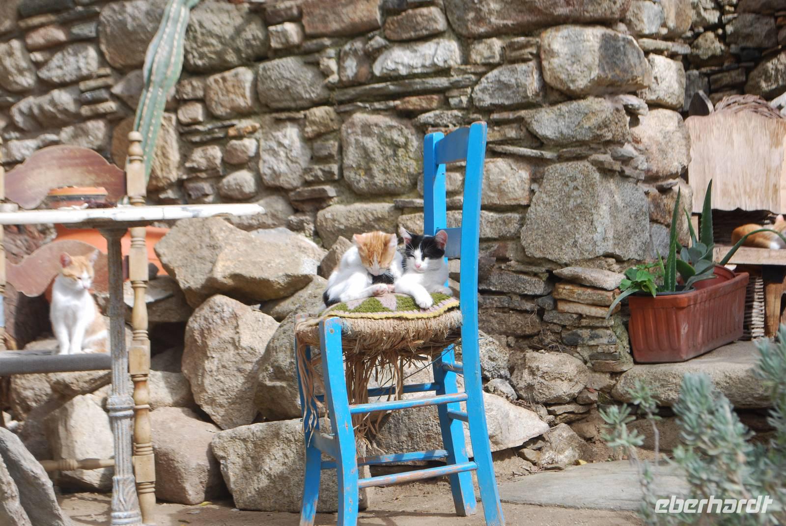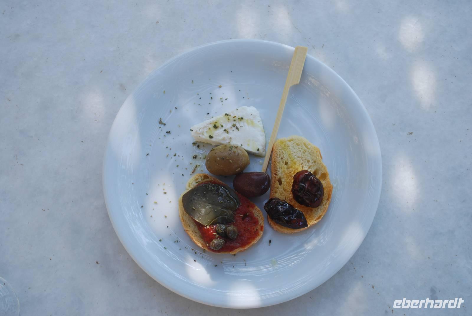 Während eines Spaziergangs bei Chalki sind wir auch durch große Olivenhaine gelaufen und konnten Olivenbäume bestaunen, die über 500 Jahre alt sind! Es ist sehr beeindruckend zu sehen wie langsam sie wachsen und wie alt sie werden können. In Chalki ist die Verkostung des Insellikörs Kitron ein Muss, und auch wir taten dies. Wir wurden bei der Likörfabrik in die Geheimnisse dieses Getränkes eingeweiht und durften es auch verkosten: der Grüne ist der Milde, der Weiße der Mittelstarke und der gelbe der Starke. Ein ganz eigener Geschmack. Unser letztes richtiges Mittagessen auf Naxos haben wir in einer typischen Taverne im schönen Bergdorf Apiranthos eingenommen. Wie bei jeder seiner Empfehlungen zu Tavernen, war auch hier die von Simeon sehr gut. Das Essen hat geschmeckt!