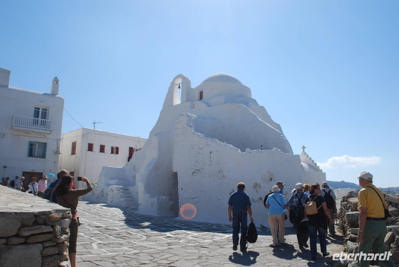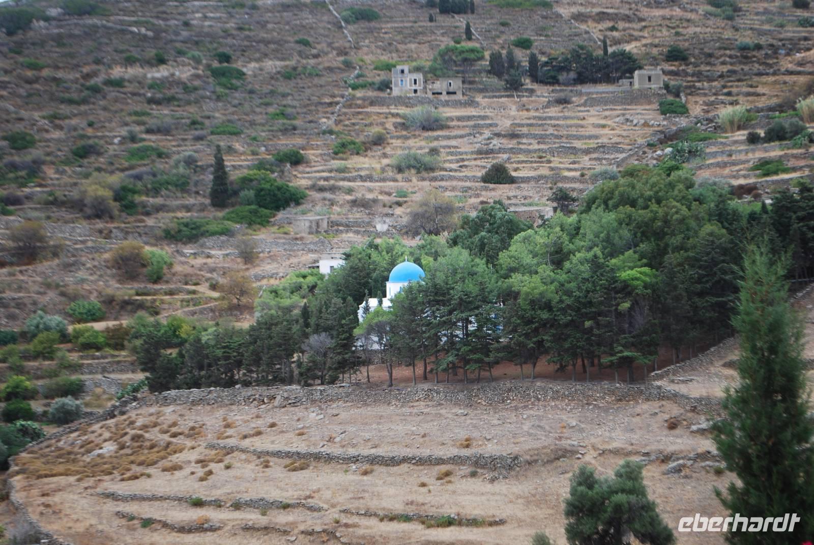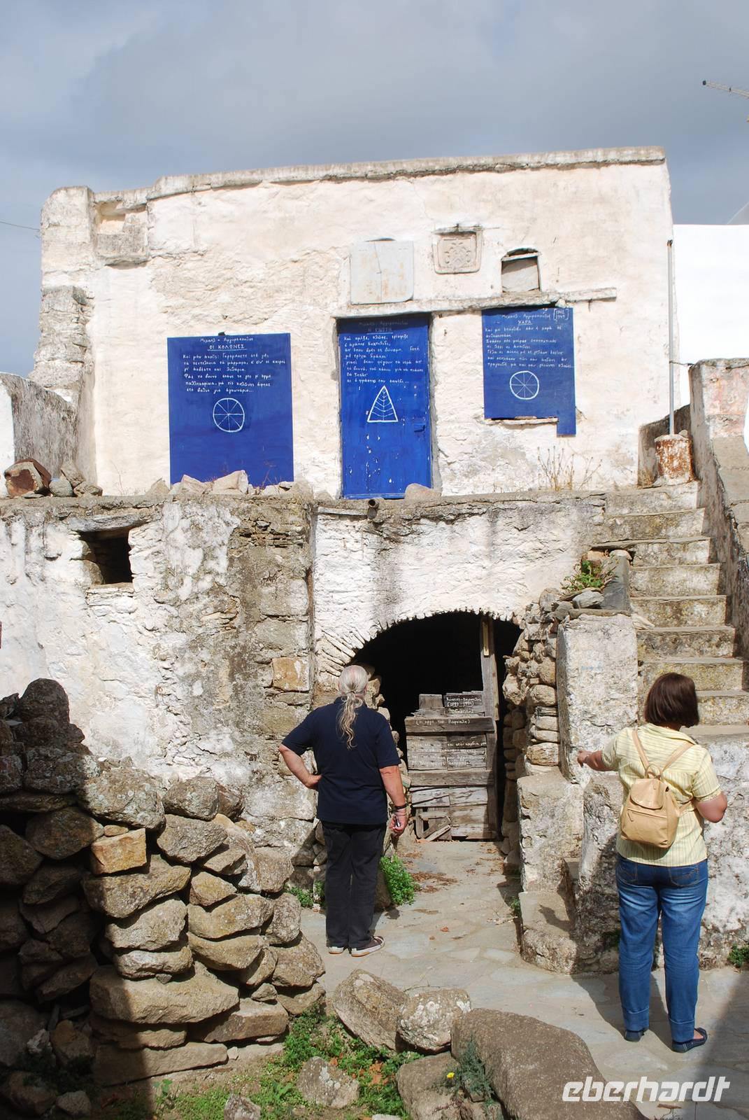 Am nächsten Tag besichtigen wir noch weitere Sehenswürdigkeiten von Naxos: die Panagia Drossiani, eine kleine Gewölbekirche die ab dem 7. Jahrhundert erbaut wurde, und keiner richtigen architektonischen Regel folgt. Die Kuppel sieht eher wie eine Ellipse aus und im Laufe der Zeit wurden immer neue Teile hinzugefügt.