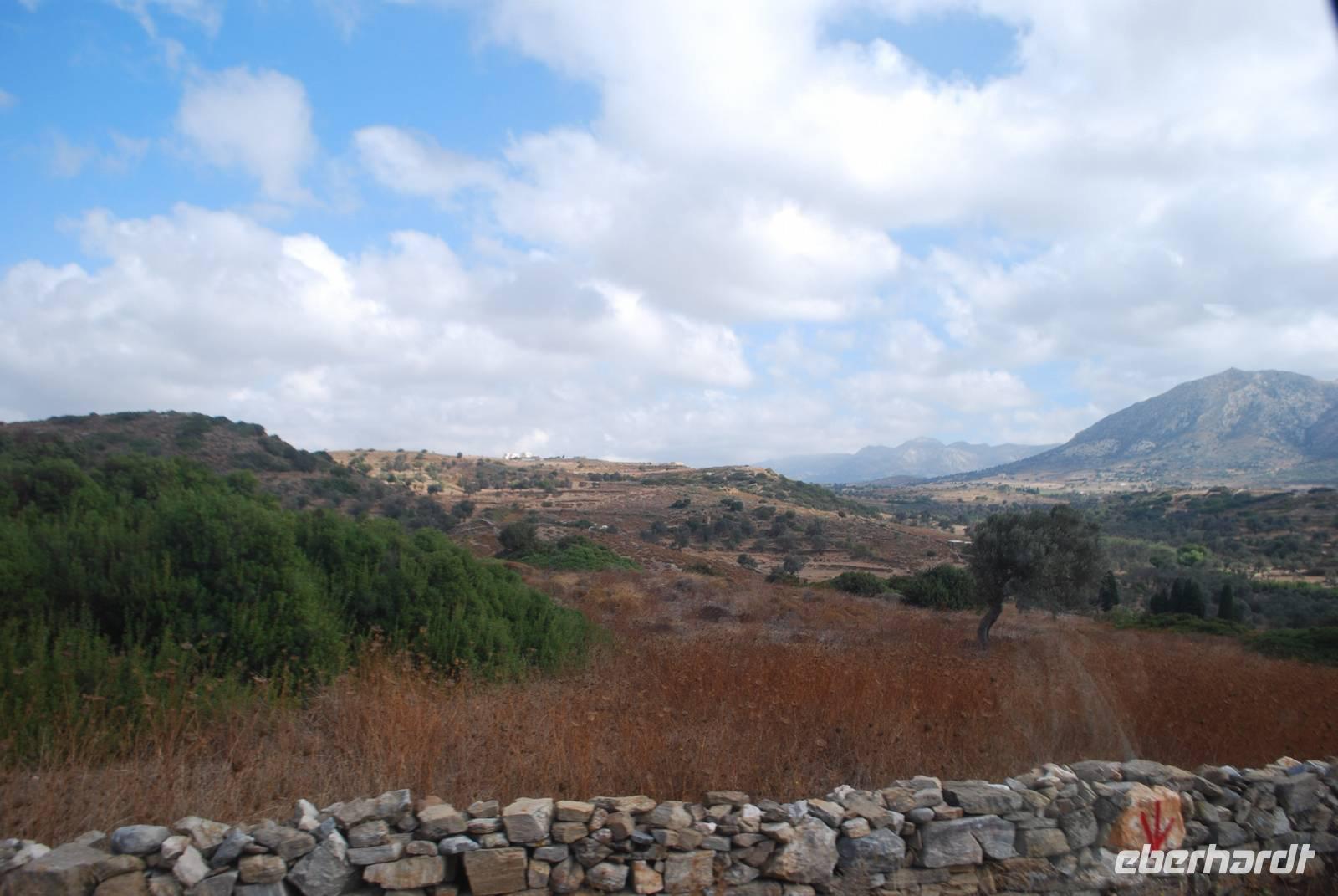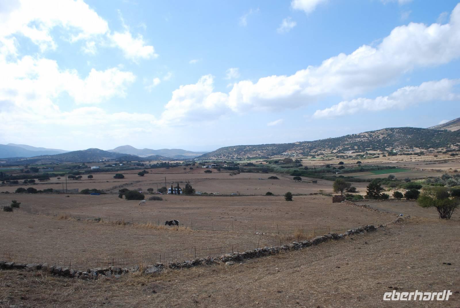 Anschließend fahren wir zu einem fruchtbaren Tal weiter ins Inselinnere, wo es ein Demeter-Heiligtum gibt - Demeter ist die Göttin der Fruchtbarkeit. Hier erhielten wir von Simeon zahlreiche Erklärungen über die Mythologie, wer Demeter war, ihre Rolle als Göttin und Vieles mehr. Auf dem Weg haben wir auch eine Menge Viehzüchter gesehen: Naxos ist eine sehr fruchtbare Insel und es gibt dort sehr viel Viehzucht, ob es Kühe, Schafe oder Ziegen sind, die unter anderem Milch produzieren. Die Milch wird für die Produktion von Käse genutzt, denn Naxos hat viele gute Käsesorten. Bei Melanes bekamen wir einen großen Kouros zu sehen. Er stammt noch aus der Zeit vor Christus und wurde nie vollendet.