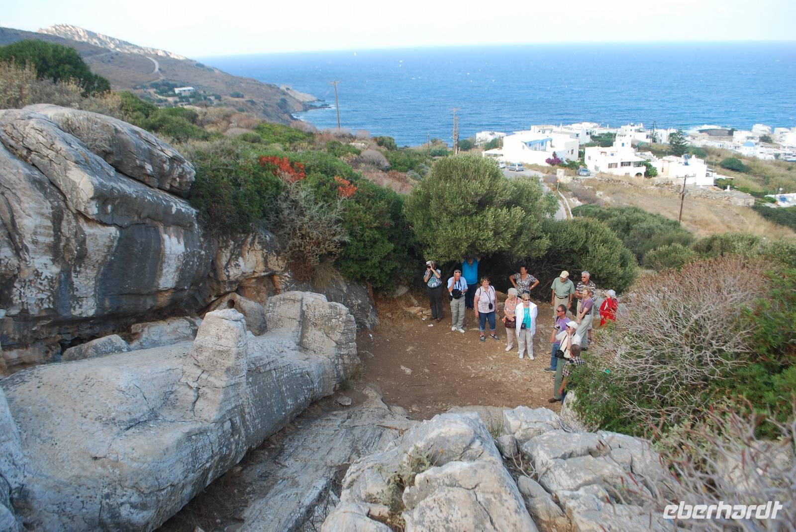 Unsere letzte Etappe war die Nordküste von Naxos mit dem Fischerort Apollonas, wo sich wieder ein Kouros befindet. Bei diesem wird vermutet, dass es sich um eine Statue von Dionysos handelt. Er ist noch größer als der, den wir am Vortag zu sehen bekommen hatten! Fußgröße: mindestens 150 ;-)