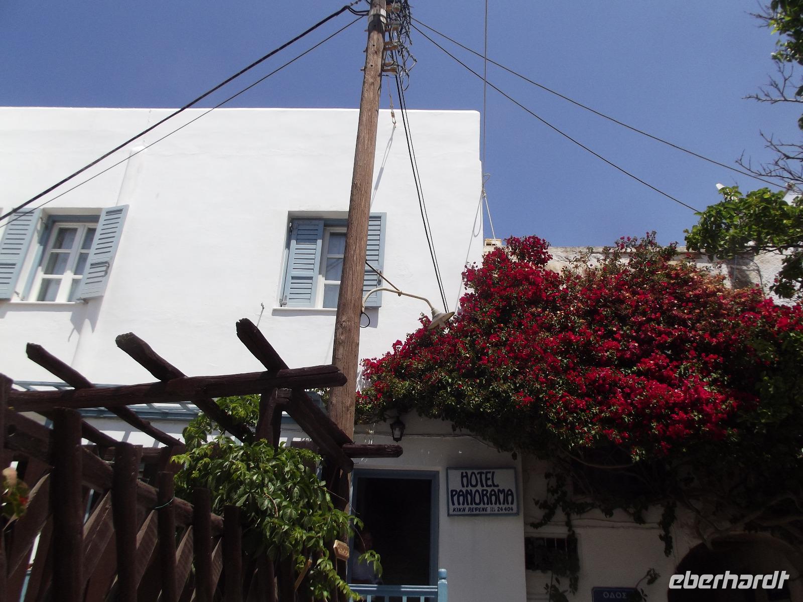 Wir wollen die Insel Paros ein wenig genauer kennenlernen, daher steht auf dem heutigen Tagesprogramm eine schöne Inselrundfahrt. Nach einem ausgiebigen Frühstück startet unser Bus gegen 9 Uhr und unser Weg führt uns vorbei an vielen Weinbergen und sanften Hängen. Kurze Zeit später erreichen wir Parikia, die Hauptstadt im Nordwesten von Paros. Unser Reiseleiter führt uns zur Kirche bzw. zum Kloster Paragia Ekatontapiliani - ein wichtiger Wallfahrtsort auf der Insel. Wir lauschen seinen Erzählungen und führen unseren Spaziergang schließlich fort. Wir bummeln durch die Gassen und bewundern die farbenfrohe Pflanzenwelt an den Häusermauern. Die Insel hat noch viel zu bieten, daher fahren wir mit dem Bus zum nächsten Highlight: den Marmorbrüchen von Marathi. Marmor gilt als ein sehr wichtiger Baustoff auf den Kykladen und ist vielerorts zu entdecken. Zur Mittagszeit, nach einem kurzen Halt im Ort Lefkes, fahren wir nach Naoussa und verbringen dort die Mittagspause. In kleinen, hübschen Restaurants mit Blick auf den Strand lassen wir uns griechische Spezialitäten schmecken und haben auch noch genug Zeit, um die Promenade entlang zu gehen. Zurück im Hotel bekommen wir zum Abendessen schmackhaften Fisch serviert und beobachten, wie sich der Himmel lila färbt und die Sonne untergeht.