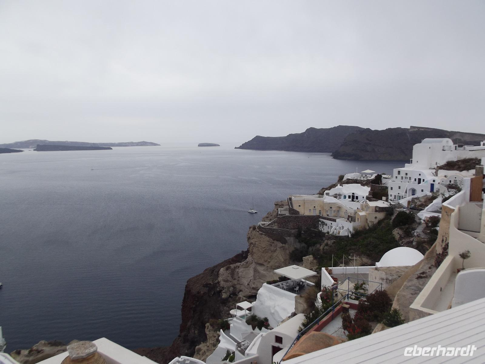 Calimera! (Guten Morgen!) Die Sonne lacht, die Wellen rauschen und der Kaffee schmeckt. Beste Voraussetzungen, um Santorin zu erkunden. Zunächst besuchen wir die Ausgrabungen von Thira und können dort bewundern, wie gut die freigelegten Privathäuser erhalten sind. Man fühlt sich an mancher Stelle in die damalige Zeit versetzt und kann sich das Treiben auf dem Marktplatz lebhaft vorstellen. Im Archäologischen Museum kann man dann diverse Krüge, Teller etc. entdecken, die ebenfalls ausgegraben wurden. Schließlich haben wir etwas freie Zeit, um in den kleinen Straßen zu schlendern, bis wir gegen 14 Uhr weiter zum Küstenort Oia fahren. Es bietet sich uns ein Postkarten-Panorama: die weißen Häuser mit ihren blauen Türen und Fensterläden leuchten in der Sonne und heben sich vom tiefblauen Meer im Hintergrund hervor. Hier hat die Gruppe Zeit zur individuellen Gestaltung: die Gäste trinken einen Kaffee in einer Taverne mit Blick auf den Wasser oder stöbern in den zahlreichen Keramikläden. Auf dem Weg zum Hotel machen wir noch einen Halt an dem Weingut Estate Agyros, bekommen eine kleine Führung und dürfen letztendlich mehrere Weine mit den passenden Häppchen testen. Leider ist der Tag zu Ende und der Hunger meldet sich. Beim Abendessen in der Taverne vor unserem Hotel kommen wir in den Genuss, griechischen Joghurt zu probieren. Guten Appetit!