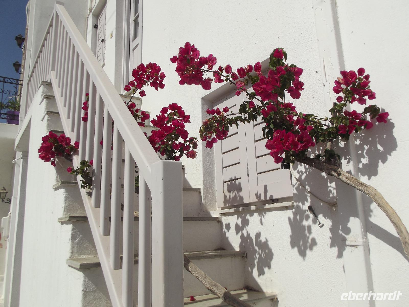 Wir ließen uns während unserer Rundreise von der Schönheit der Kykladen verzaubern: die flachen Weinberge, die weißen Dörfer mit ihren bunten Türen, die historischen Stätten und das strahlend blaue Me