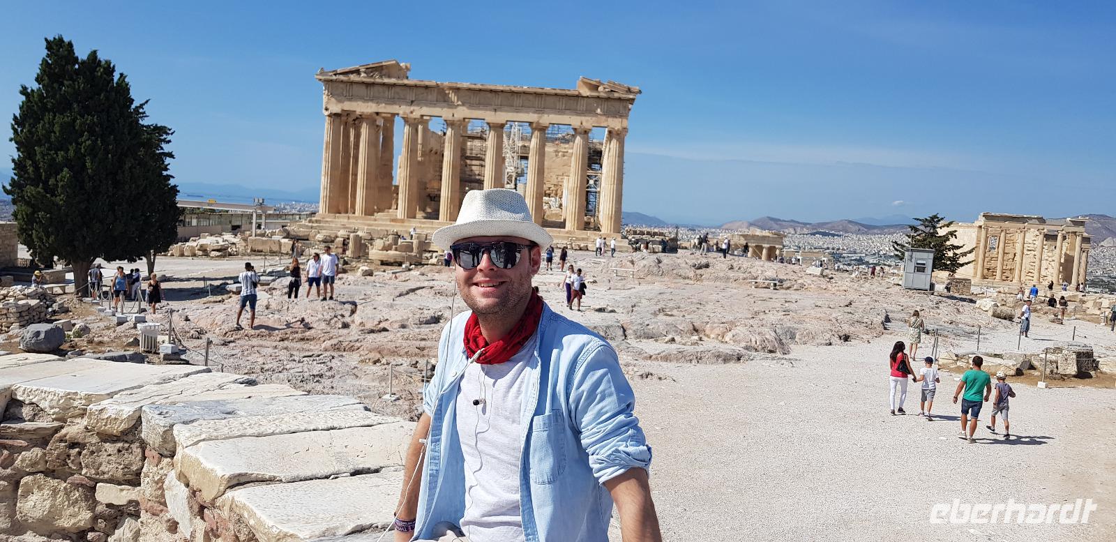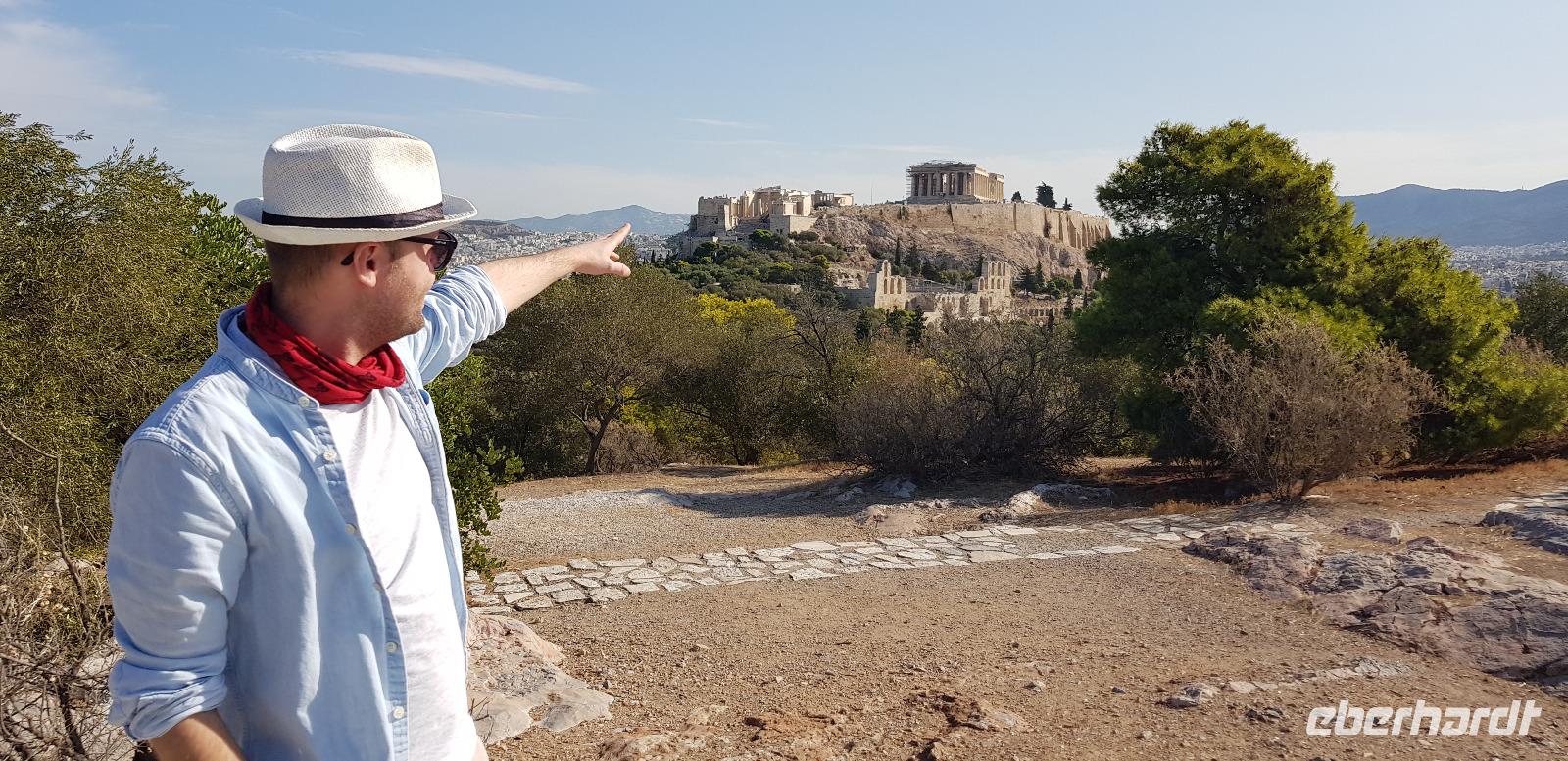 Die Akropolis sollte auch das erste Highlight unserer Reise an unserem ersten vollen Tag in Griechenland werden. Nach dem Frühstück fuhren wir zunächst zum Filopappou Hügel, um einen grandiosen Blick auf diese historische Sehenswürdigkeit zu werfen. Hier gab uns Anastasia erste intensive Einblicke und Erklärungen über die Geschichte von Athen und der griechischen Mythologie.