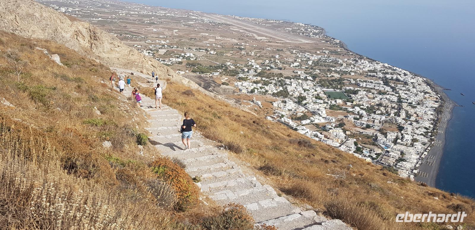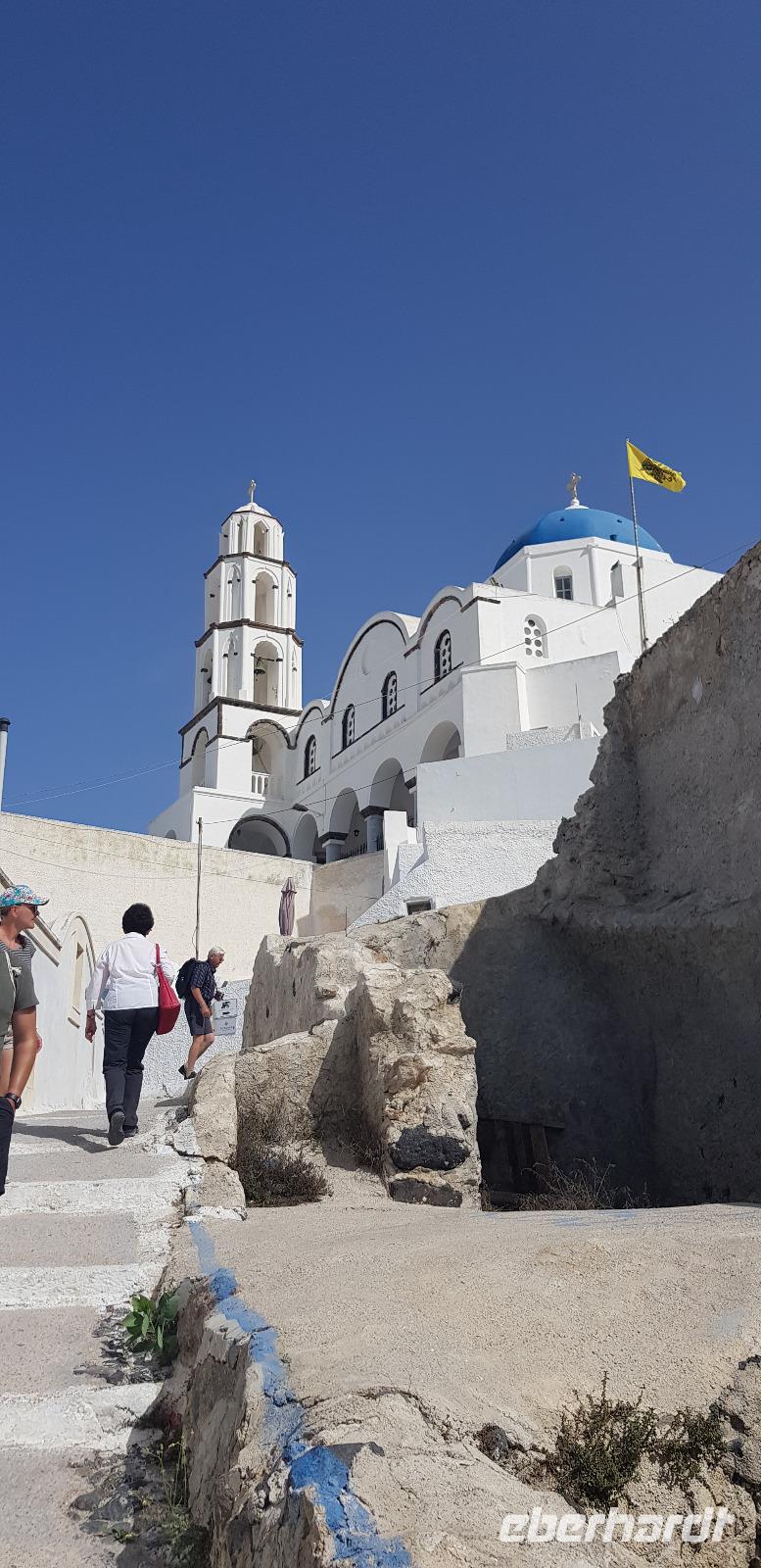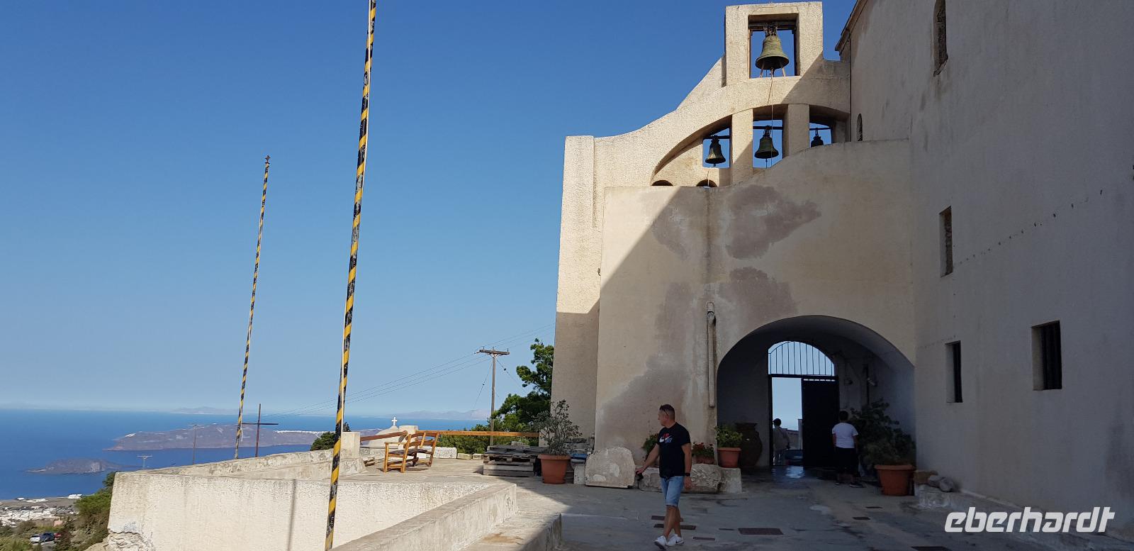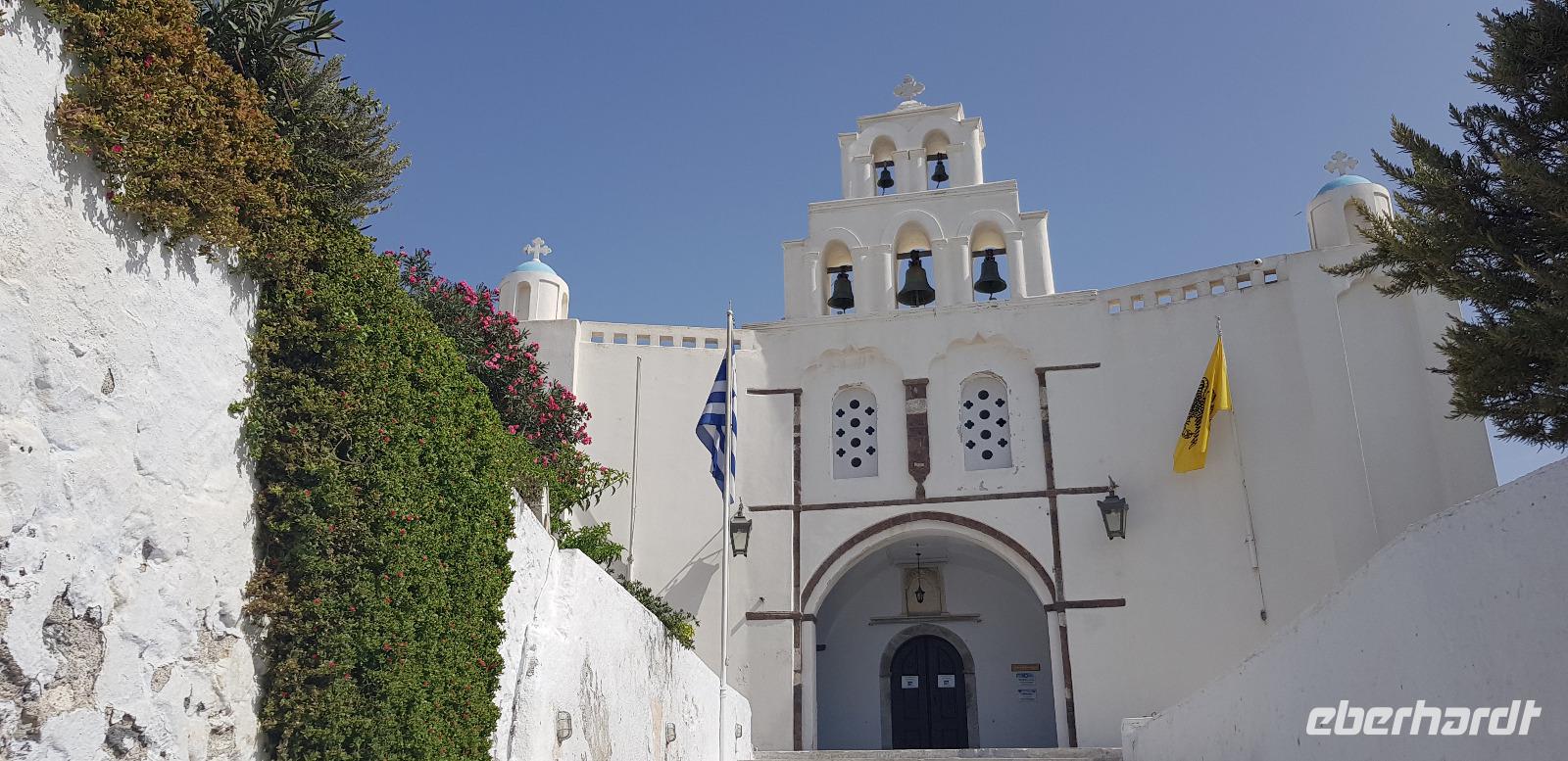 Am nächsten Tag standen die Sehenswürdigkeiten der Insel im Fokus: Vom Kloster Profet Elias (Profiti Ilias) mit einer weiten Aussicht in die Umgebung über eine Besichtigung der archäologischen Ausgrabungsstätte Akrotiri bis zum prähistorisches Museum Thira, unsere Reiseleiterin Anastasia erklärte uns alle Stationen im Detail. In Fira hatten wir ausreichend Zeit für individuelle Rundgänge und Besichtigungen der weltberühmten Steilküste mit den weißen Häusern und engen Gassen.
