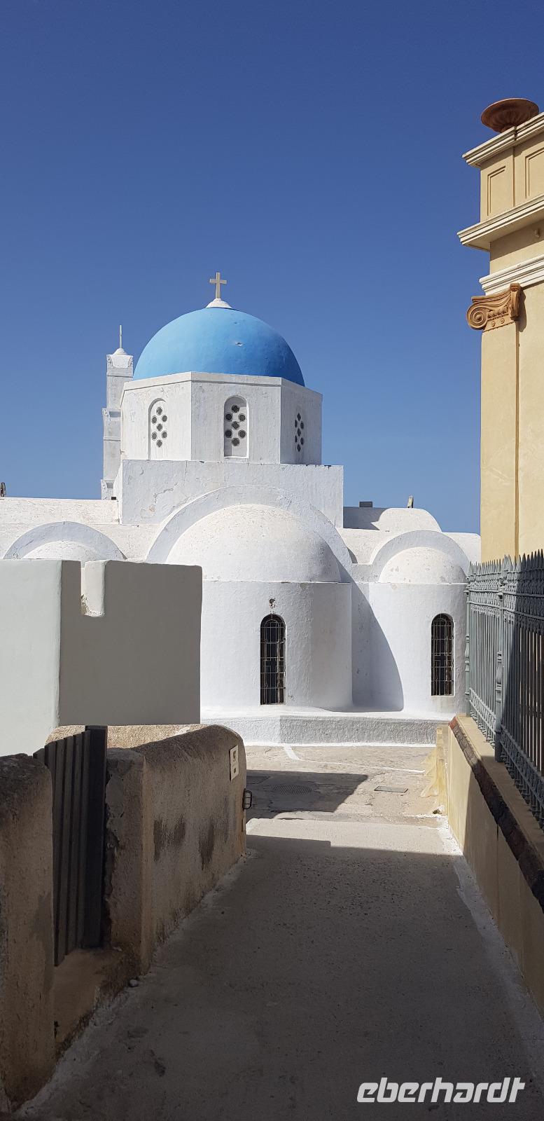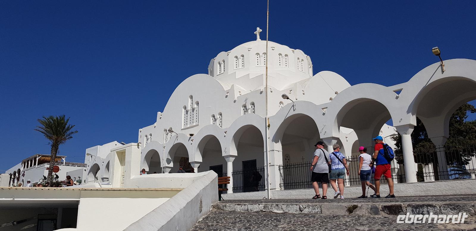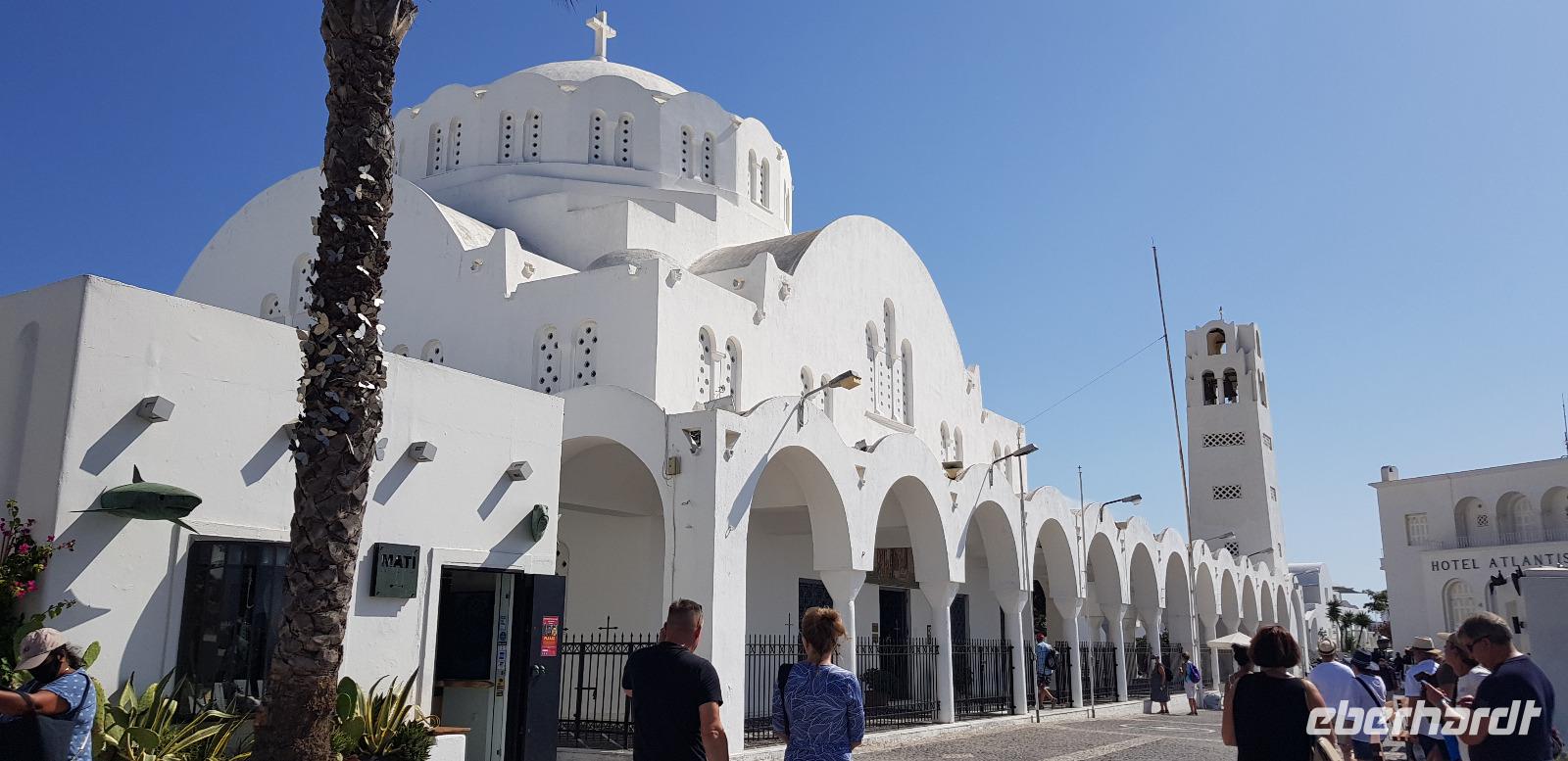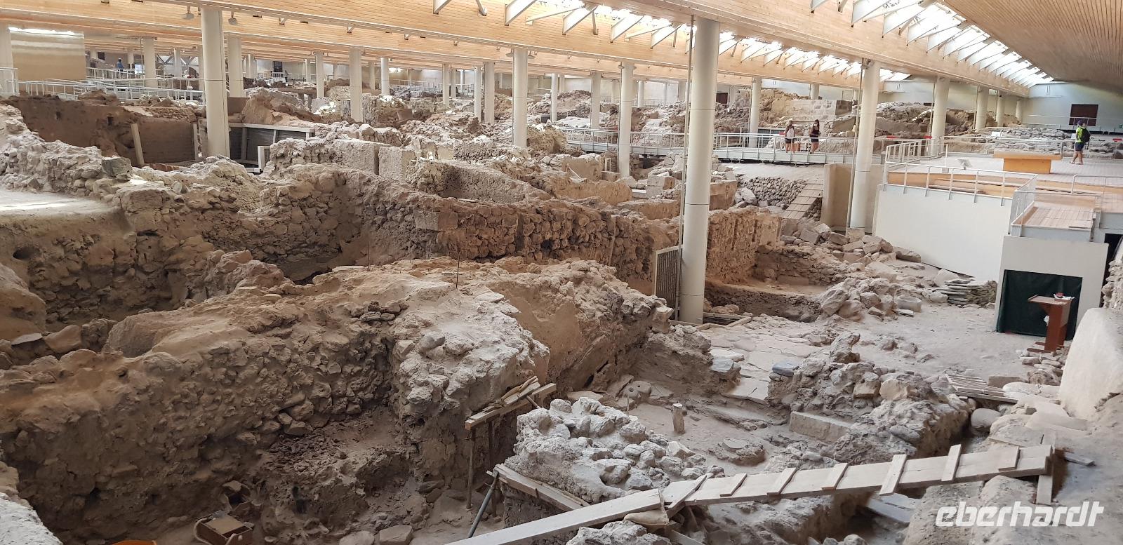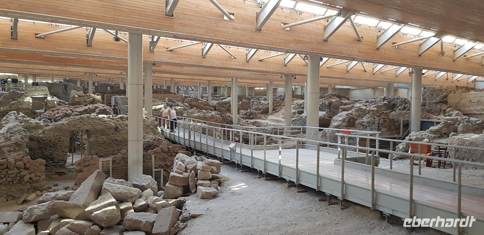Am nächsten Tag standen die Sehenswürdigkeiten der Insel im Fokus: Vom Kloster Profet Elias (Profiti Ilias) mit einer weiten Aussicht in die Umgebung über eine Besichtigung der archäologischen Ausgrabungsstätte Akrotiri bis zum prähistorisches Museum Thira, unsere Reiseleiterin Anastasia erklärte uns alle Stationen im Detail. In Fira hatten wir ausreichend Zeit für individuelle Rundgänge und Besichtigungen der weltberühmten Steilküste mit den weißen Häusern und engen Gassen.