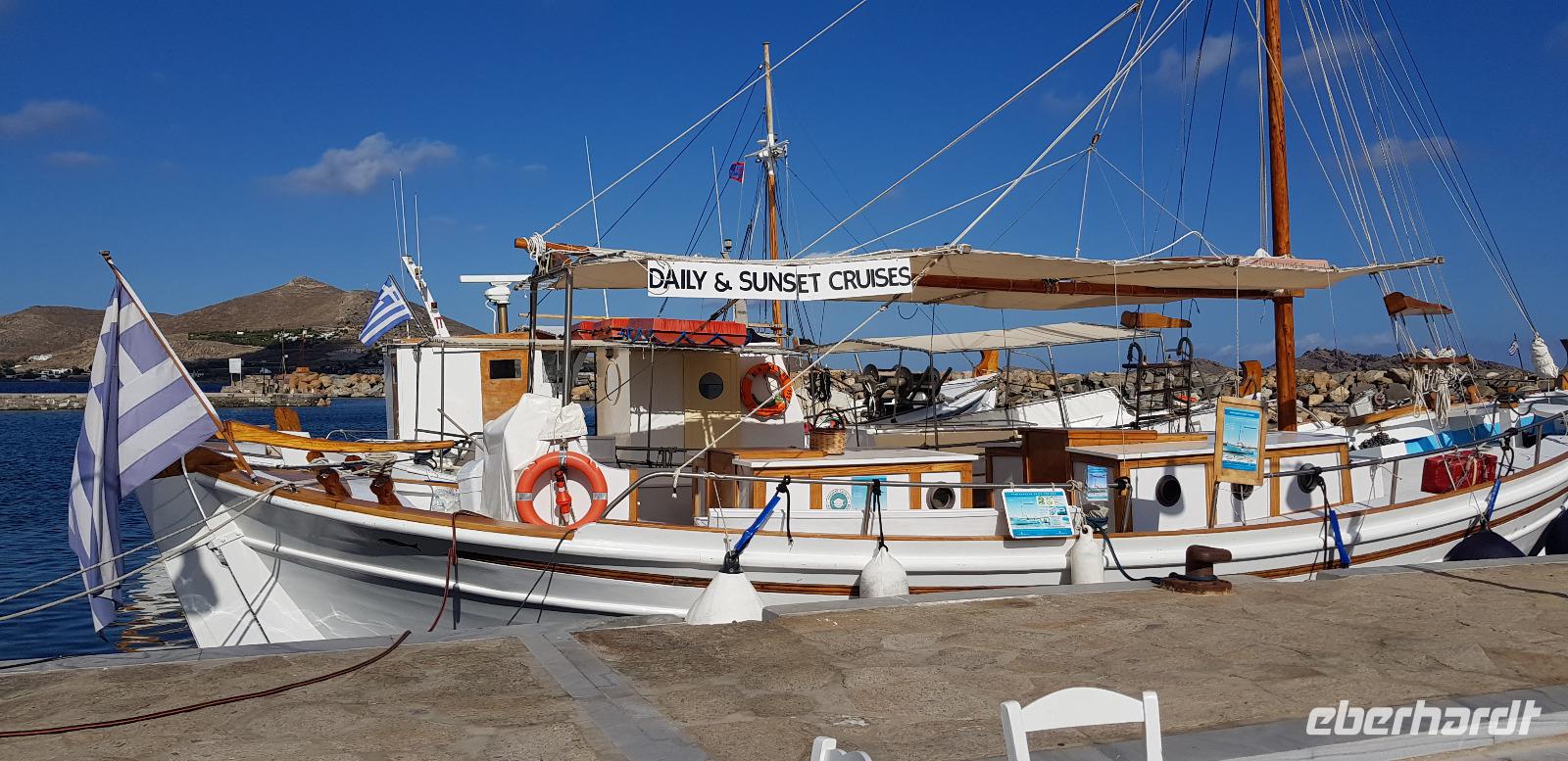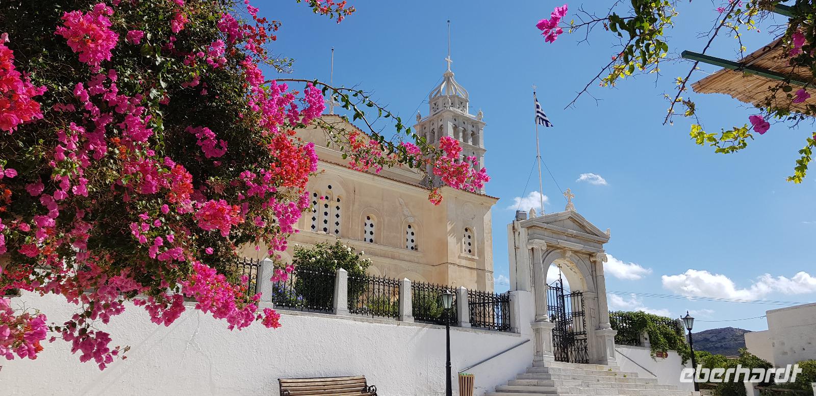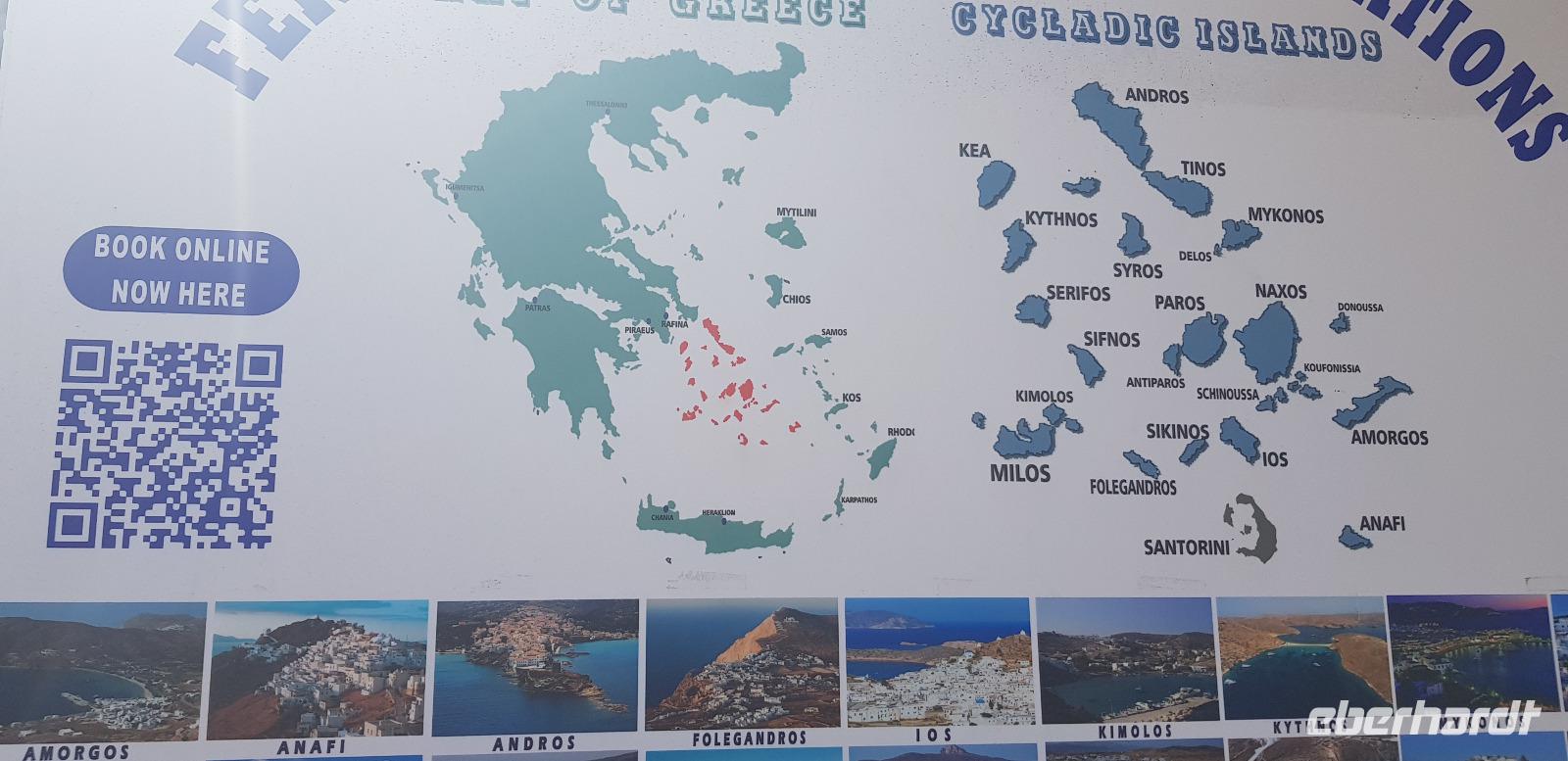 Am achten Tag unserer Reise ging es für die Gruppe in den Hafen von Paros. Von hier aus fuhren wir etwa eine Stunde mit dem Fährschiff auf die Nachbarinsel Paros. Hier unternahmen wir in der Inselhauptstadt Parikia einen kleinen Rundgang mit unserer Reiseleiterin und besichtigten u.a. die älteste Kirche Griechenlands "Ekatopyliani".