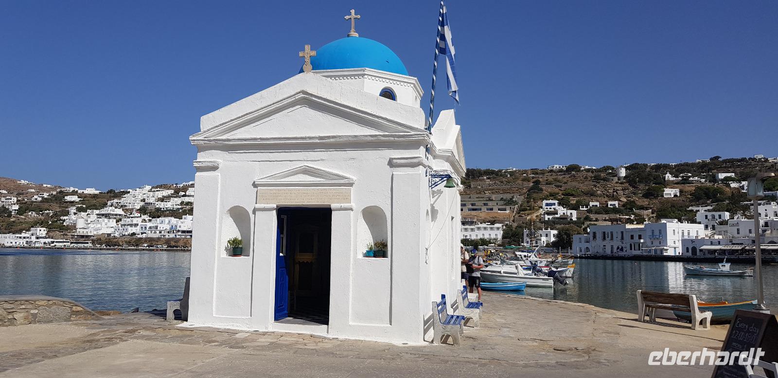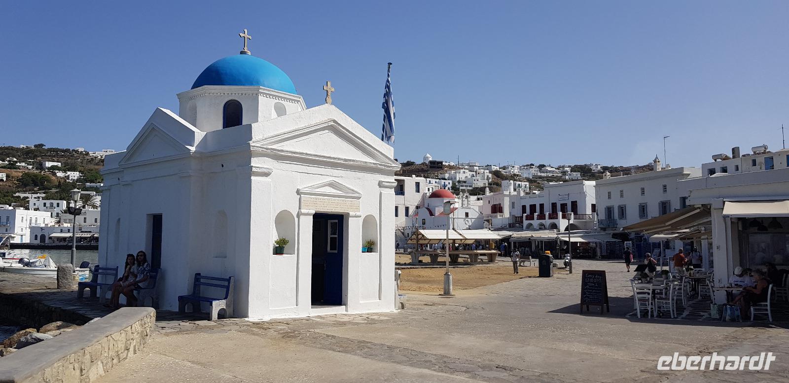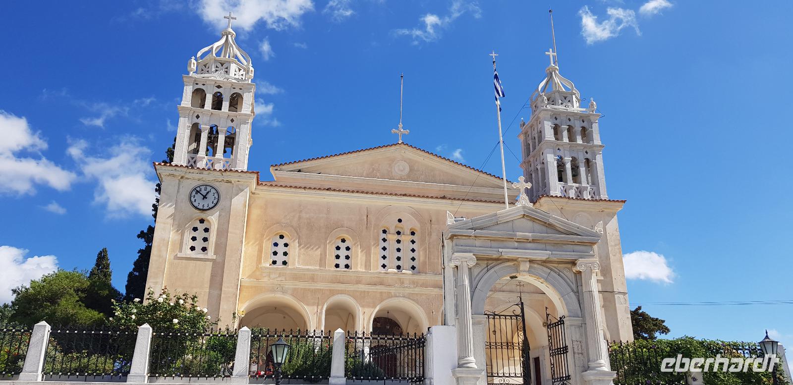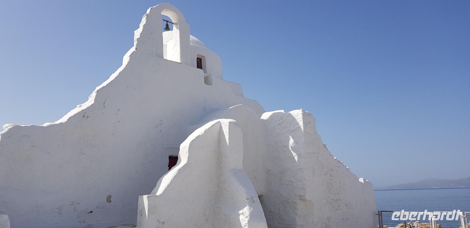 Am achten Tag unserer Reise ging es für die Gruppe in den Hafen von Paros. Von hier aus fuhren wir etwa eine Stunde mit dem Fährschiff auf die Nachbarinsel Paros. Hier unternahmen wir in der Inselhauptstadt Parikia einen kleinen Rundgang mit unserer Reiseleiterin und besichtigten u.a. die älteste Kirche Griechenlands "Ekatopyliani".