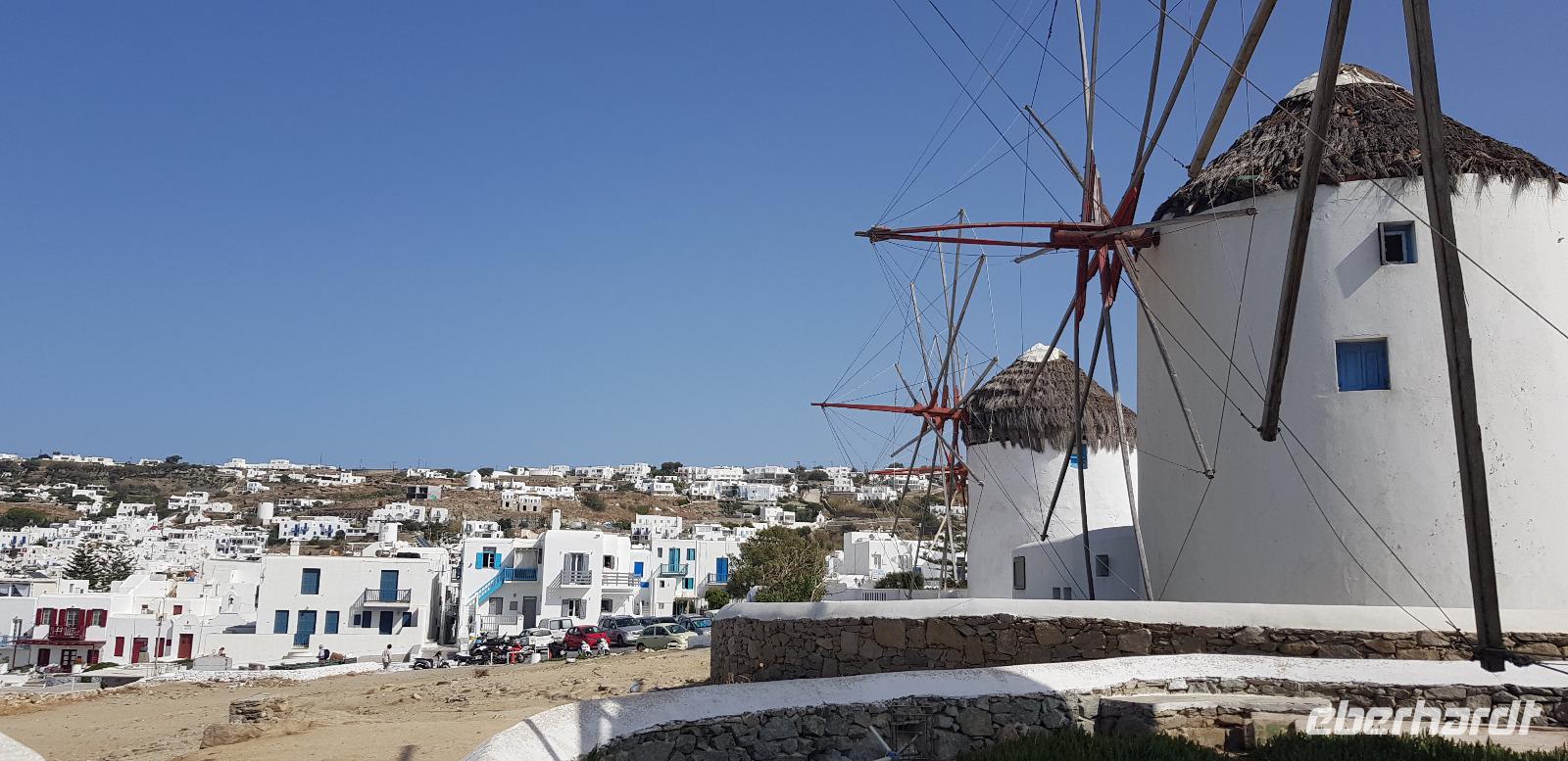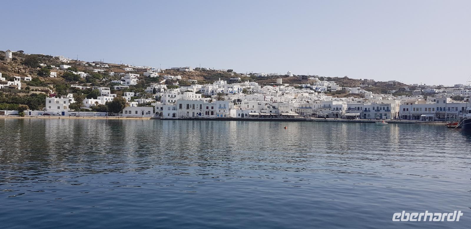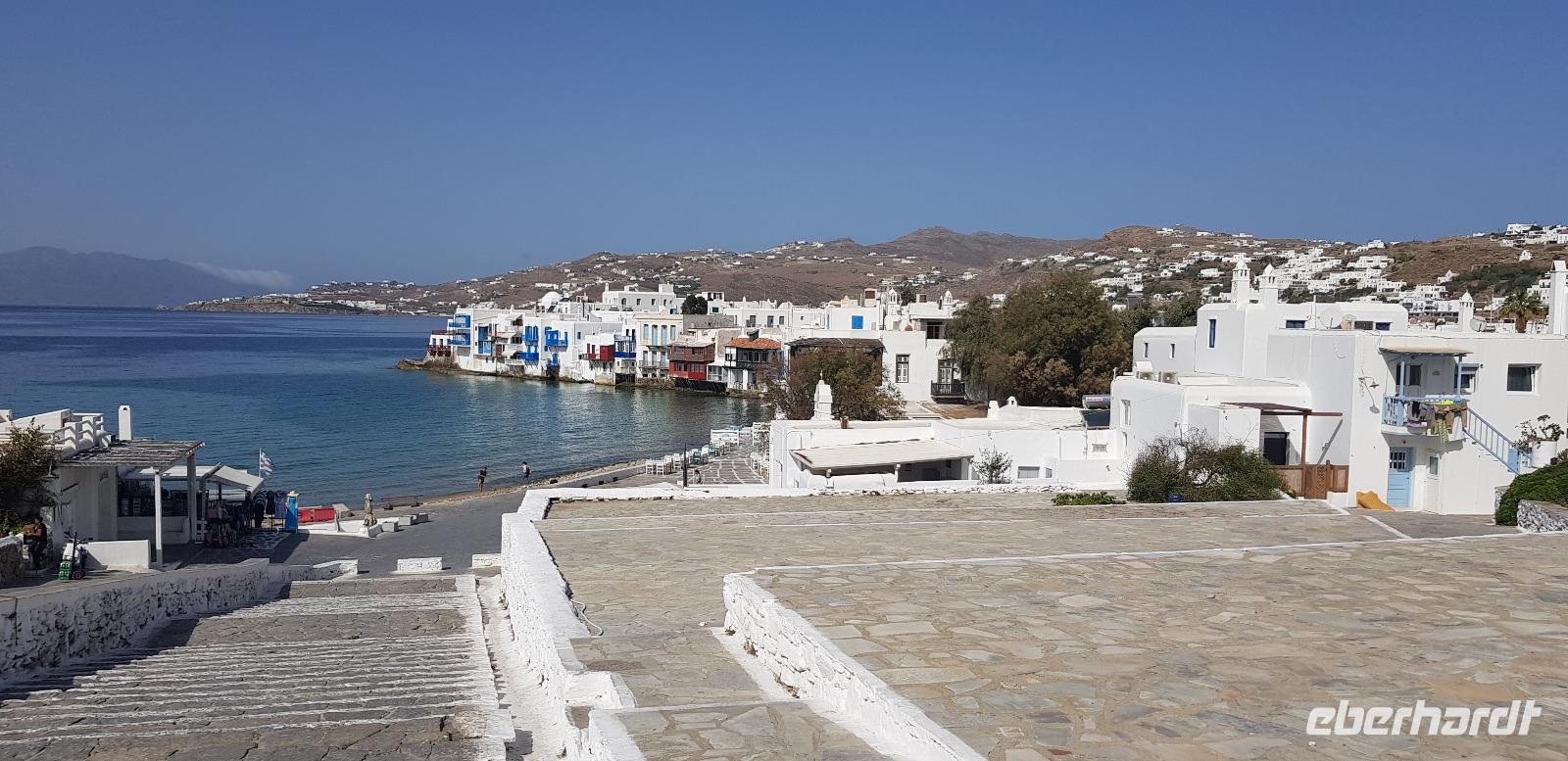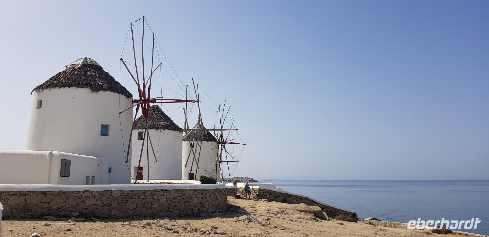 Bevor wir uns am nächsten Tag Naxos genauer anschauen, fuhren wir zunächst mit der Fähre auf die nahegelegene Insel Delos. Die Insel wurde 1990 von der UNESCO zum Weltkulturerbe erklärt. Bei einem 1,5-stündigen Rundgang erklärte uns Anastacia alles über die Geschichte von Delos. Die Insel war einst ein geheiligter Ort, da sich hier der Mythos erzählt wurde, dass die schwimmende Insel der Geburtsort von Apollo, Gott des Tageslichts und Artemis, Göttin des Nachtlichts ist. Weiter ging es anschließend auf einer kurzen Fährfahrt zur berühmten Kykladeninsel Mykonos. Hier besichtigten wir in Mykonos-Stadt die verträumten Gassen bis hin zu einer von Mykonos' bekanntesten Sehenswürdigkeiten, der Paraportiani Kirche mit der ältesten Kapelle. Weiter ging es durch die Altstadt zu einem weiteren Postkartenmotiv, den Häusern von Little Venice - was nach der italienischen Wasserstadt benannt wurde. Von hier aus konnten wir auch die Windmühlen von Kato Myli sehen, die aus dem 15. Jahrhundert stammen. Einfach traumhafte Postkartenmotive. Danach erkundeten die Gäste die Stadt auf eigene Faust bevor es am späten Nachmittag zurück nach Naxos ging.