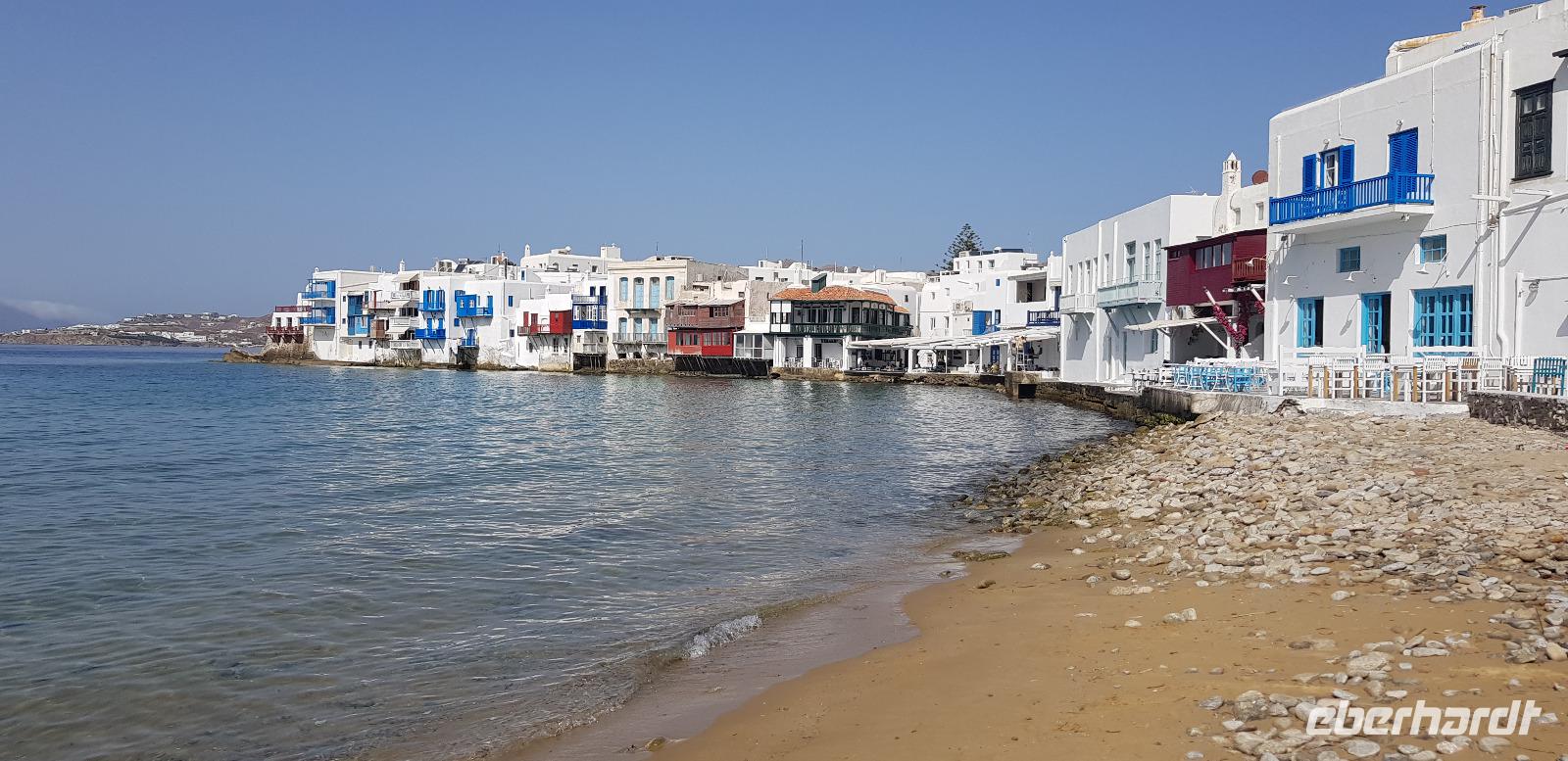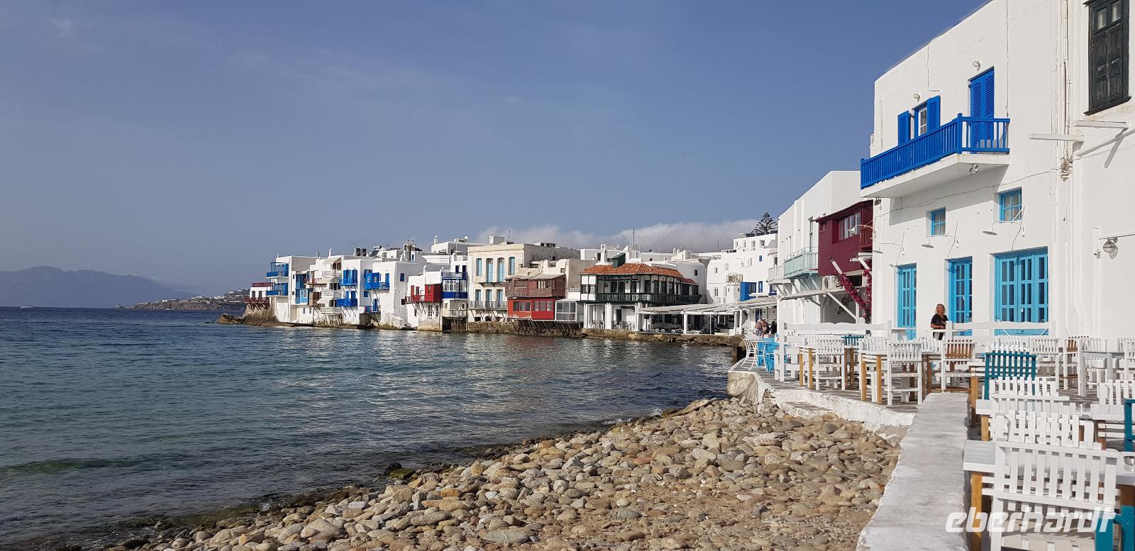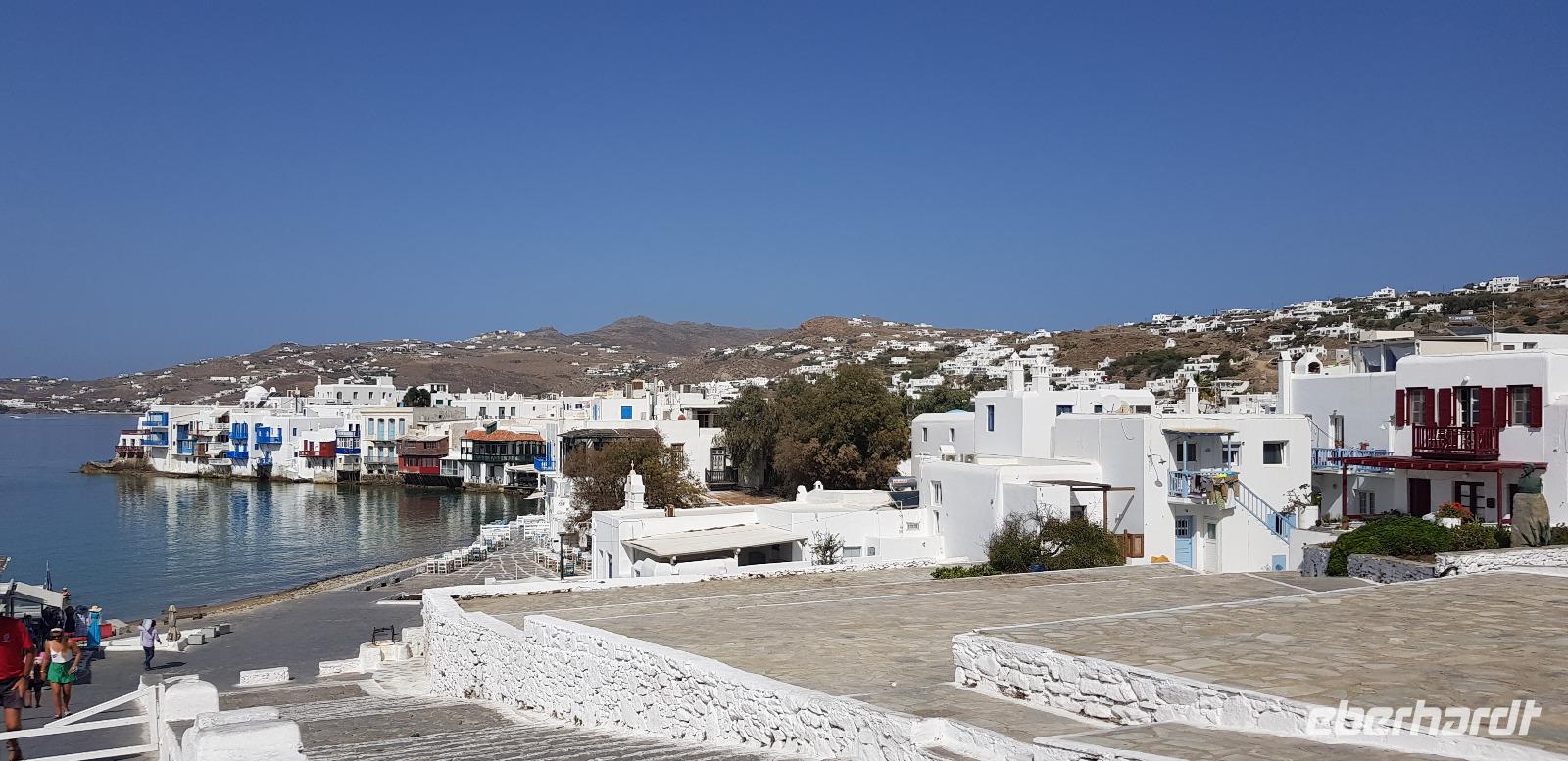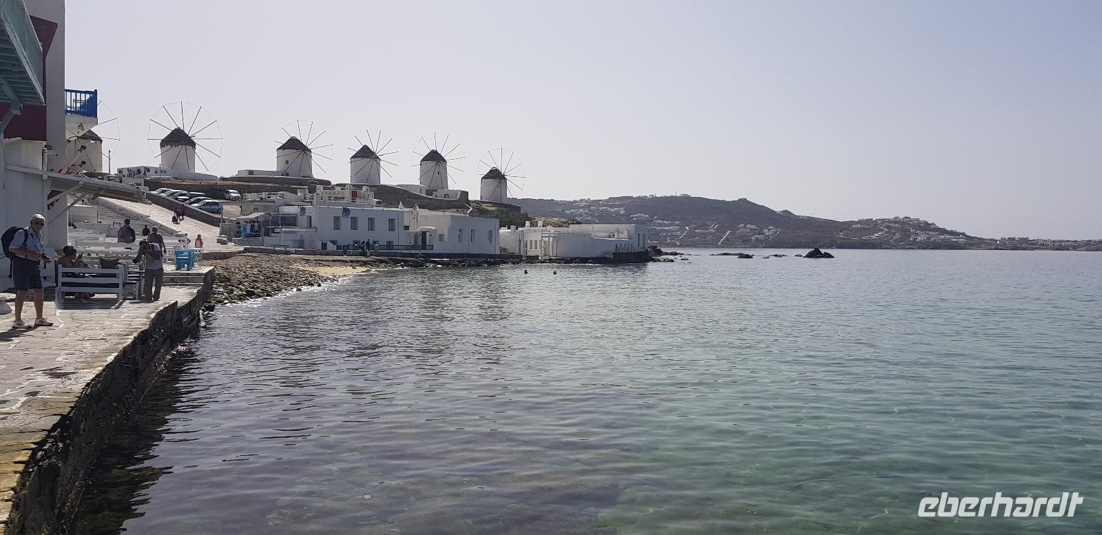 Bevor wir uns am nächsten Tag Naxos genauer anschauen, fuhren wir zunächst mit der Fähre auf die nahegelegene Insel Delos. Die Insel wurde 1990 von der UNESCO zum Weltkulturerbe erklärt. Bei einem 1,5-stündigen Rundgang erklärte uns Anastacia alles über die Geschichte von Delos. Die Insel war einst ein geheiligter Ort, da sich hier der Mythos erzählt wurde, dass die schwimmende Insel der Geburtsort von Apollo, Gott des Tageslichts und Artemis, Göttin des Nachtlichts ist. Weiter ging es anschließend auf einer kurzen Fährfahrt zur berühmten Kykladeninsel Mykonos. Hier besichtigten wir in Mykonos-Stadt die verträumten Gassen bis hin zu einer von Mykonos' bekanntesten Sehenswürdigkeiten, der Paraportiani Kirche mit der ältesten Kapelle. Weiter ging es durch die Altstadt zu einem weiteren Postkartenmotiv, den Häusern von Little Venice - was nach der italienischen Wasserstadt benannt wurde. Von hier aus konnten wir auch die Windmühlen von Kato Myli sehen, die aus dem 15. Jahrhundert stammen. Einfach traumhafte Postkartenmotive. Danach erkundeten die Gäste die Stadt auf eigene Faust bevor es am späten Nachmittag zurück nach Naxos ging.
