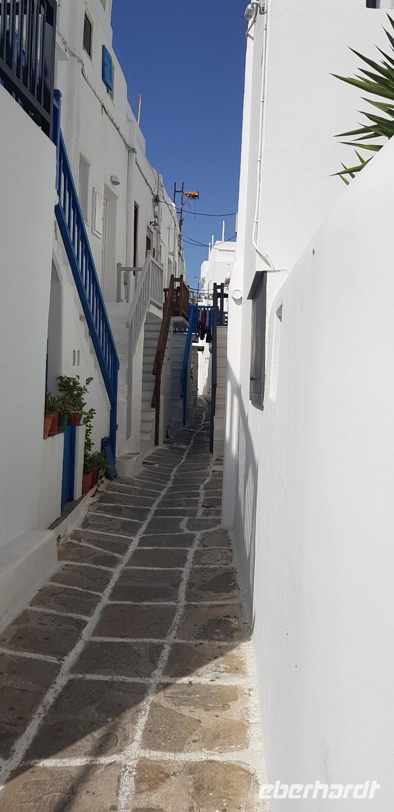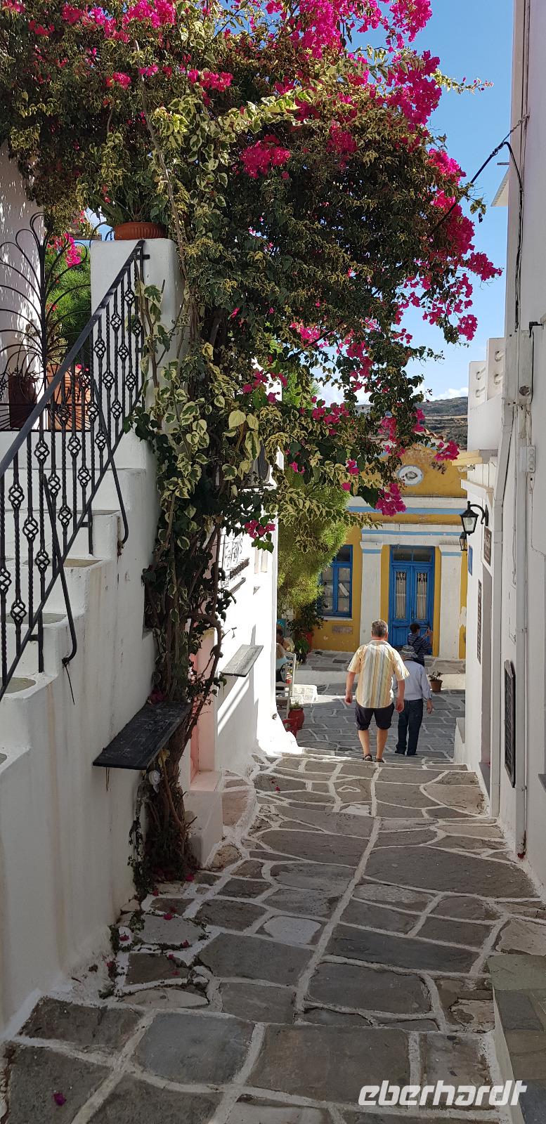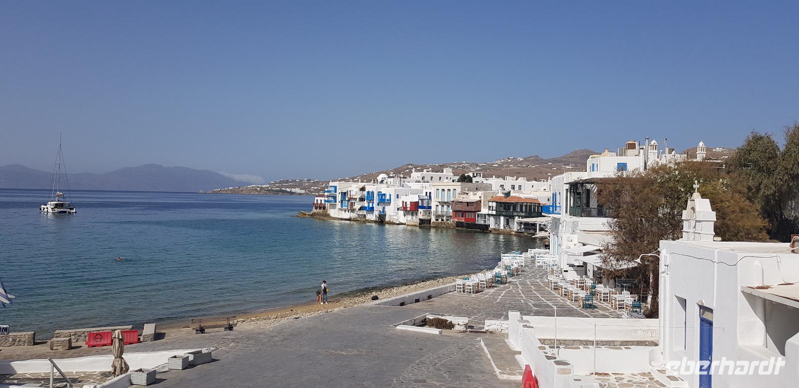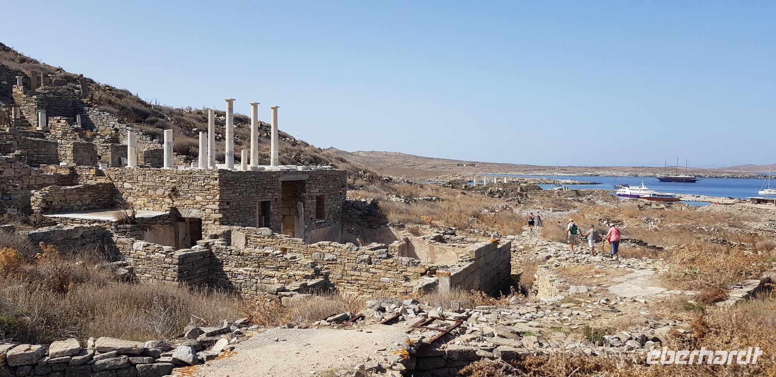 Bevor wir uns am nächsten Tag Naxos genauer anschauen, fuhren wir zunächst mit der Fähre auf die nahegelegene Insel Delos. Die Insel wurde 1990 von der UNESCO zum Weltkulturerbe erklärt. Bei einem 1,5-stündigen Rundgang erklärte uns Anastacia alles über die Geschichte von Delos. Die Insel war einst ein geheiligter Ort, da sich hier der Mythos erzählt wurde, dass die schwimmende Insel der Geburtsort von Apollo, Gott des Tageslichts und Artemis, Göttin des Nachtlichts ist. Weiter ging es anschließend auf einer kurzen Fährfahrt zur berühmten Kykladeninsel Mykonos. Hier besichtigten wir in Mykonos-Stadt die verträumten Gassen bis hin zu einer von Mykonos' bekanntesten Sehenswürdigkeiten, der Paraportiani Kirche mit der ältesten Kapelle. Weiter ging es durch die Altstadt zu einem weiteren Postkartenmotiv, den Häusern von Little Venice - was nach der italienischen Wasserstadt benannt wurde. Von hier aus konnten wir auch die Windmühlen von Kato Myli sehen, die aus dem 15. Jahrhundert stammen. Einfach traumhafte Postkartenmotive. Danach erkundeten die Gäste die Stadt auf eigene Faust bevor es am späten Nachmittag zurück nach Naxos ging.