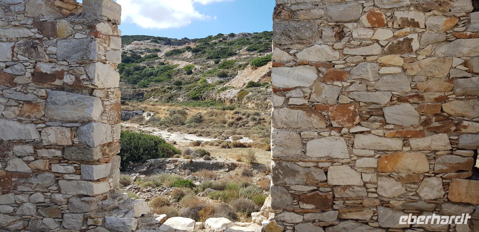 nahe gelegene ehemalige Festung der Stadt. Aber auch im Landesinneren hat die Insel einiges zu bieten. Wir fuhren beispielsweise zu den Ausgrabungen vom Demeterheiligtum bei Sangri. Der Tempel wurde vollständig aus naxischem Marmor errichtet und beeindruckte die gesamte Gruppe. Anschließend ging es weiter nach Halki, wo uns eine Likörverkostung des sogenannten Kitrons Likör erwartete. Anschließend besuchten wir außerdem das Bergdorf Apiranthos, welches an den Hängen des Mount Fanari, in einer Höhe von 800 Metern liegt. Die traditionelle Architektur der Häuser und Bögen ist einmalig.