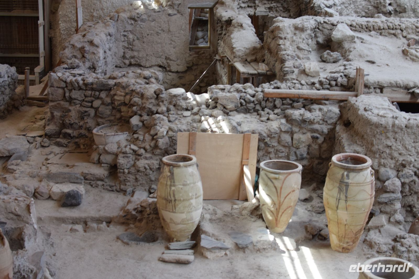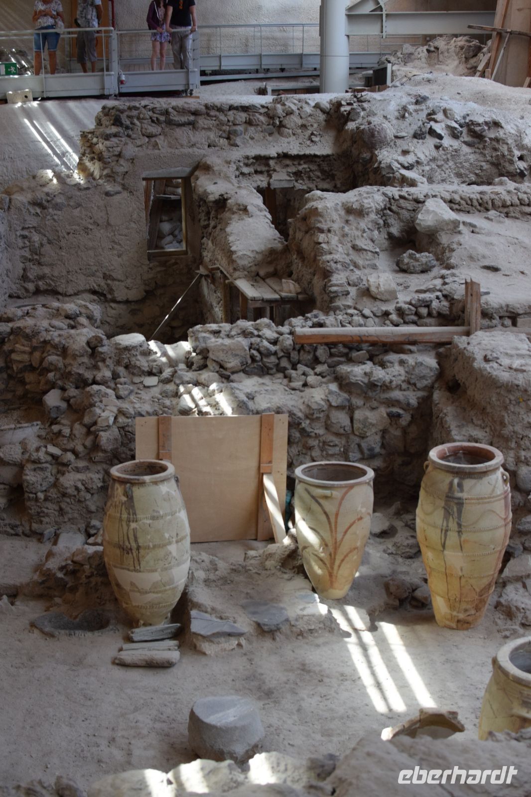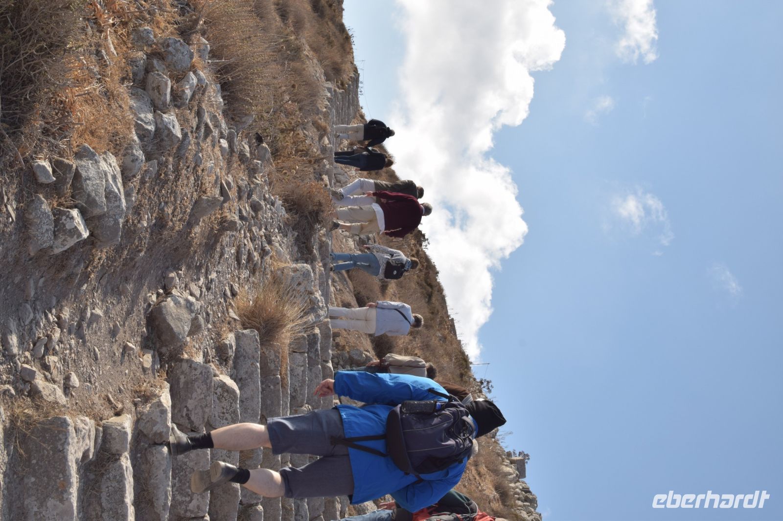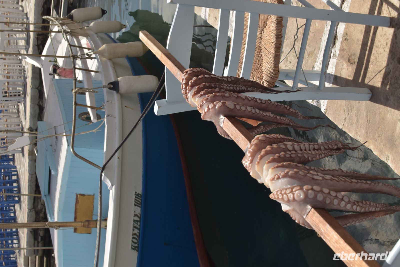 Nach dem fröhlichen Tavernen-Abend, konnten wir heute etwas länger schlafen als am Vortag. Gut gesättigt vom reichhaltigen Frühstück, fuhren wir zuerst, in zwei Gruppen geteilt, zur Ausgrabungsstätte von Alt-Thira. Da die Ausgrabungsstätte auf dem Berg liegt, traf uns der starke Wind, welcher uns einige Tage lang verfolgte, ziemlich hart. Deshalb blieben auch einige Teilnehmer unserer Gruppe am Eingang zu Alt-Thira zurück. Die Ausgrabungsstätte beeindruckte die meisten durch die spektakuläre Lage mit den einzigartigen Panorama. Zudem kann man sich in die Geschichte der Stadt, welche aus einer anderen Epoche wie Akrotiri stammt, gut nachvollziehen. Anastasia tat noch ihr übriges, um uns in das Leben der Einwohner gedanklich zurück zu versetzen. Danach fuhren wir wieder geteilt in zwei Gruppen den Berg hinab, um beim Hotel in den großen Reisebus zu steigen. Dieser fuhr uns, wieder mit Nikos als Fahrer, nach Fira. In der Inselhauptstadt besuchten wir zuerst das prähistorische Museum, in dem auf moderne Weise, Funde aus Akrotiri ausgestellt werden. Im Anschluss blieb für alle Zeit, um Fira zu entdecken und zu Mittag zu essen. Wir trafen uns nach einige Zeit wieder auf dem Hauptplatz und fuhren gemeinsam zu unserer Weinprobe. Die Mitarbeiter des größten Insel-Weingutes Estate Agyros nahmen uns herzlich in Empfang und erzählte uns einiges um den speziellen Anbau und die Verarbeitung des inseltypischen Weines. Im Anschluss durften wir natürlich einige der Erzeugnisse probieren. Das Abendessen gab es wieder in einer Taverne in Kamari. Diesmal aber ohne Live-Musik, aber das Essen schmeckte dennoch vorzüglich.
