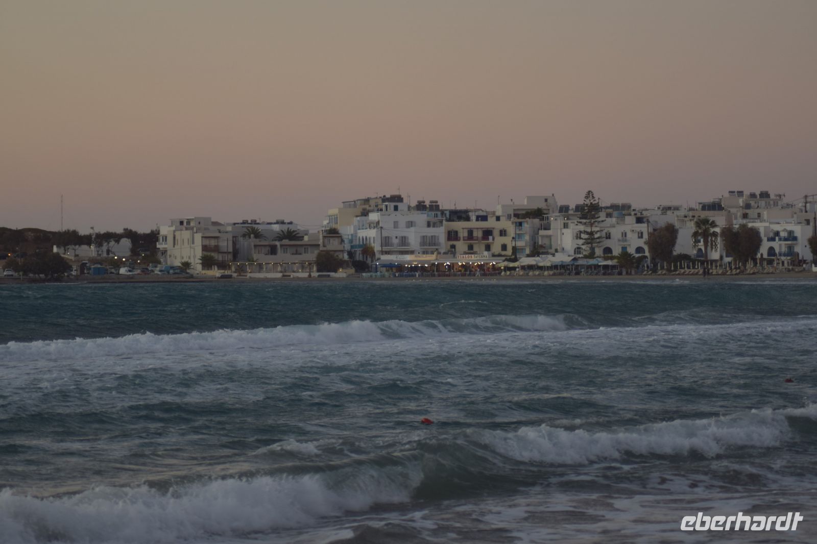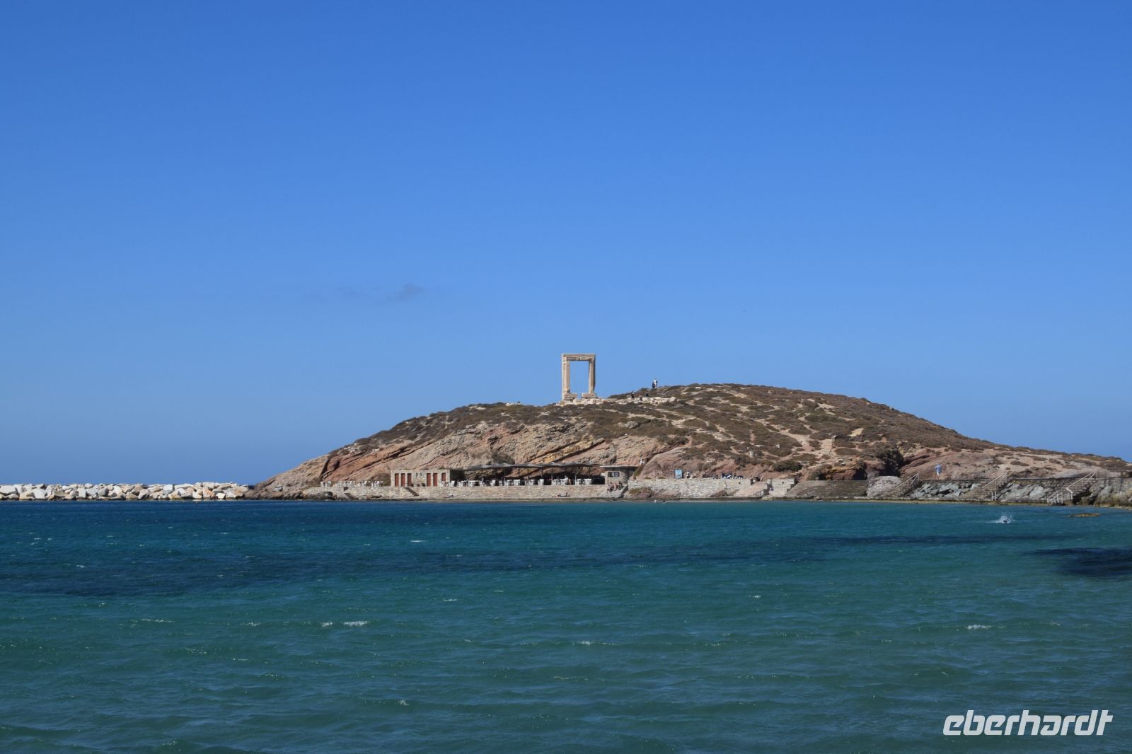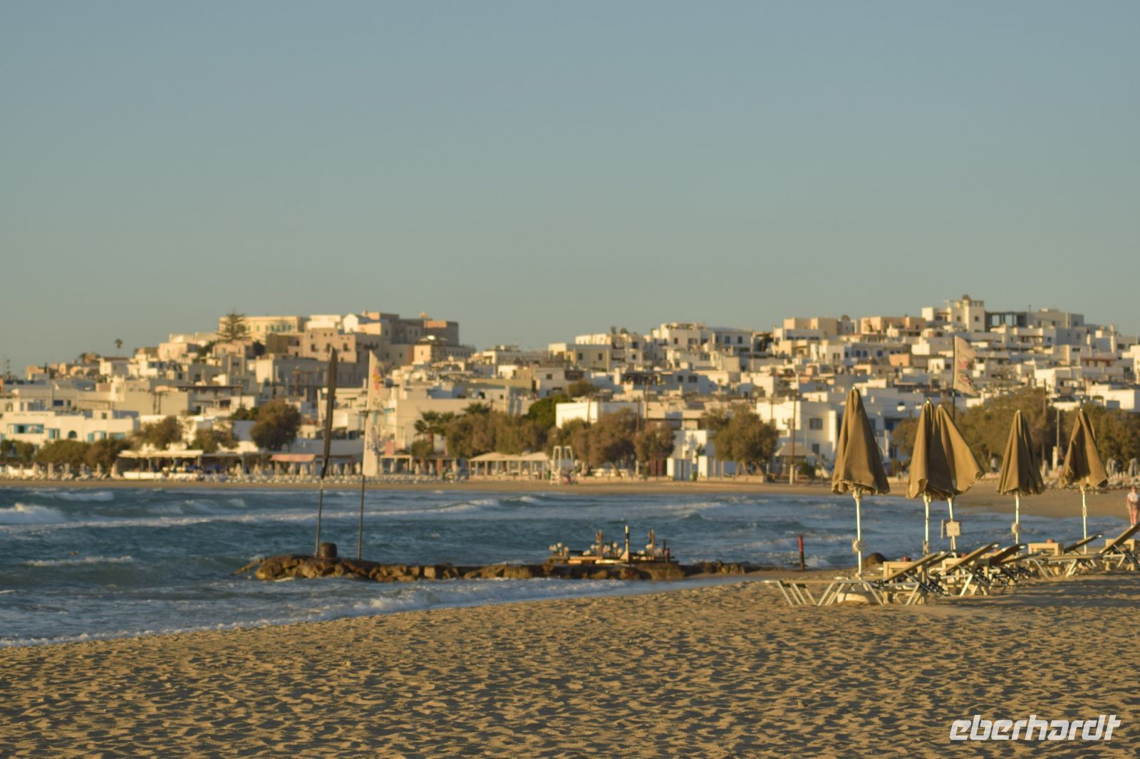 Der heutige Tag konnte mit etwas ausschlafen und einem späten Frühstück starten. Viele standen aber etwas zeitiger auf, um den Sonnenaufgang vom Hotel ein letztes Mal zu genießen. Mit gepackten Koffern starteten wir vom Hotel, um noch zwei besondere Orte auf Santorin zu besuchen, bevor wir am Nachmittag auf die Fähre gingen. Zuerst fuhren wir nach Profiti Ilias, einen Kloster auf dem höchsten Punkt von Santorin. Die Anlage ist leider nicht mehr von Mönchen bewohnt, ist aber traumhaft gestaltet. Zudem genossen wir den wunderbaren Ausblick über die Insel, beim Spaziergang. Mit dem Bus und Nikos am Steuer fuhren wir nach Pyrgos. Ähnlich wie Oia und Fira verfügt der Ort über viele kleine Gassen mit den weißen Häusern und blau-weißen Kirchen. Hier waren nur wenige Touristen unterwegs und die freie Zeit konnte ausgiebig genutzt werden um Pyrgos entspannt zu erkunden und ein kleines Mittag zu sich zu nehmen. Mit vielen Eindrücken von Santorin im Gepäck brachte uns Nikos zum Hafen von Santorin und hier mussten wir Abschied von ihm nehmen. Die Fähre hatte etwas Verspätung, ansonsten konnten wir ohne Probleme nach Naxos übersetzen. Die Überfahrt dauerte etwa zwei Stunden und so kamen wir am Abend in Naxos-Chora an. Nach wenigen Minuten Fahrt mit dem neuen Reisebus erreichten wir unser neues Hotel direkt am Strand von der Bucht von Naxos. Schnell im Hotel eingecheckt und danach ging es direkt zum Abendessen im Hotelrestaurant. Im Hotel gab es auch eine kleine Überraschung, der letzte verschollene Koffer hatte endlich seinen Weg zu uns gefunden. Mit einigen Teilnehmern der Gruppe verbrachte ich noch den restlichen Abend an der Poolbar, bevor es ins neue Bett ging.