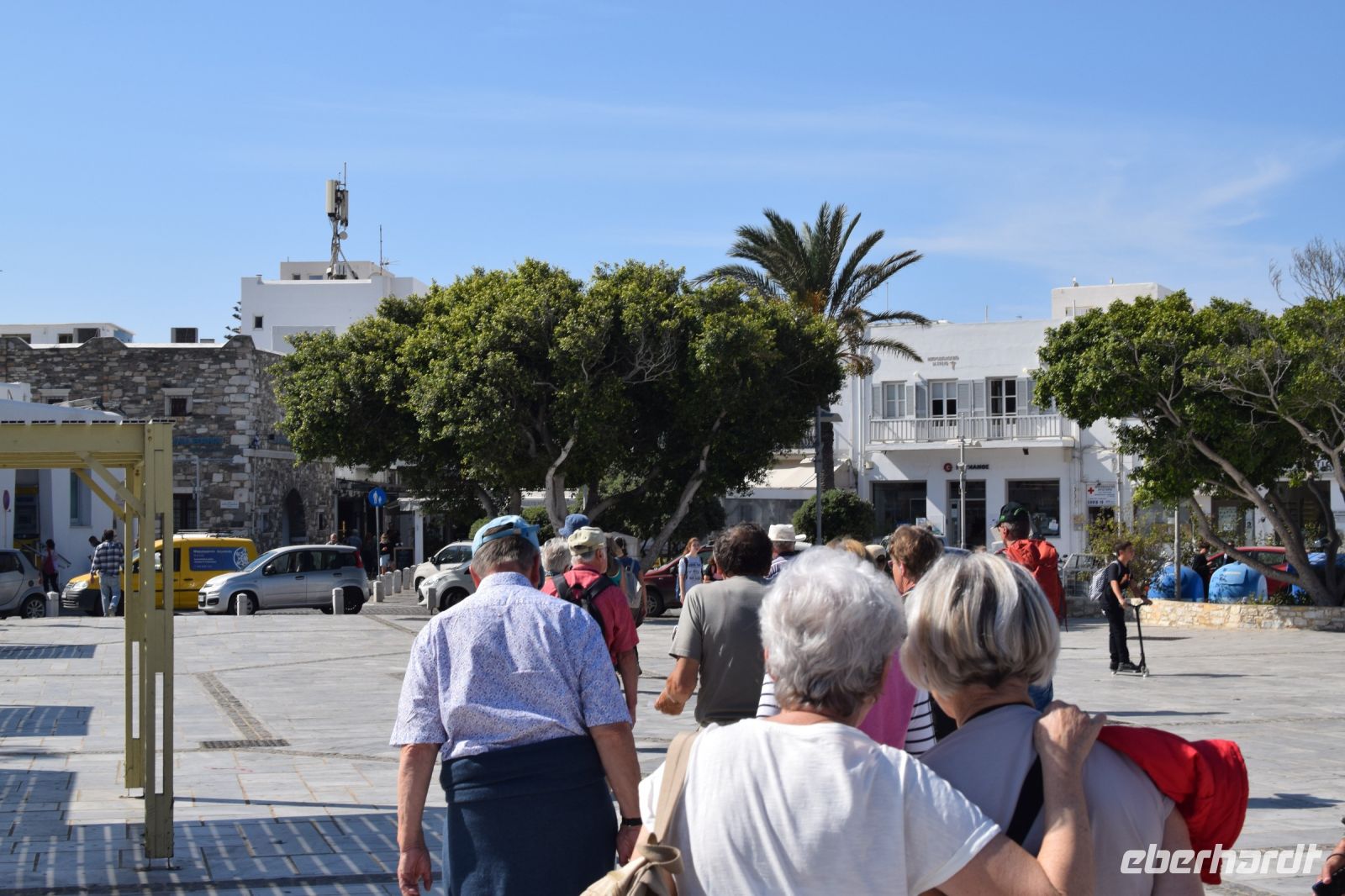 Das heutige Frühstück überraschte uns mit seiner verführerisch großen Auswahl. Gut gesättigt ging es dann auf unsere Inselrundfahrt über Paros. Als ersten Stopp fuhren wir Marathi an. Hier wurde über Jahrhunderte einer der besten Marmore der Welt abgebaut. Dieser parische Mamor wurde unter anderen für die Venus von Milo verwendet. Im Anschluss fuhren wir zum Bergdorf Lefkes. Dieses liegt idyllisch im Herzen von Paros. Besonders in Erinnerung blieb uns hier die Herzlichkeit der Bewohner. So bekamen wir zum Kaffee einen der besten Schokokuchen der Insel, aufs Haus. Nachdem wir dieses herrliche Dorf bei einen Spaziergang erkundet hatten, fuhren wir weiter nach Marpissa, einen kleinen Ort, der durch seine wunderbare Ursprünglichkeit punktete. Bei der Fahrt zu unseren letzten Ziel, Naoussa, legten wir noch einen kleinen Fotostopp in Piso Livadi bzw. Seiner traumhaften Bucht, ein. In Naoussa besichtigten wir den alten Fischerhafen, bevor alle in der Mittagspausen den Fischerort selbst erkundeten. Am Nachmittag fuhren wir wieder zum Hotel, wo die meisten noch einmal die schöne Poolanlage nutzten