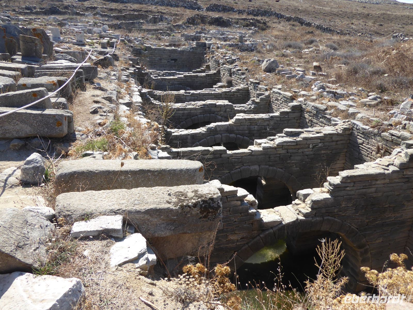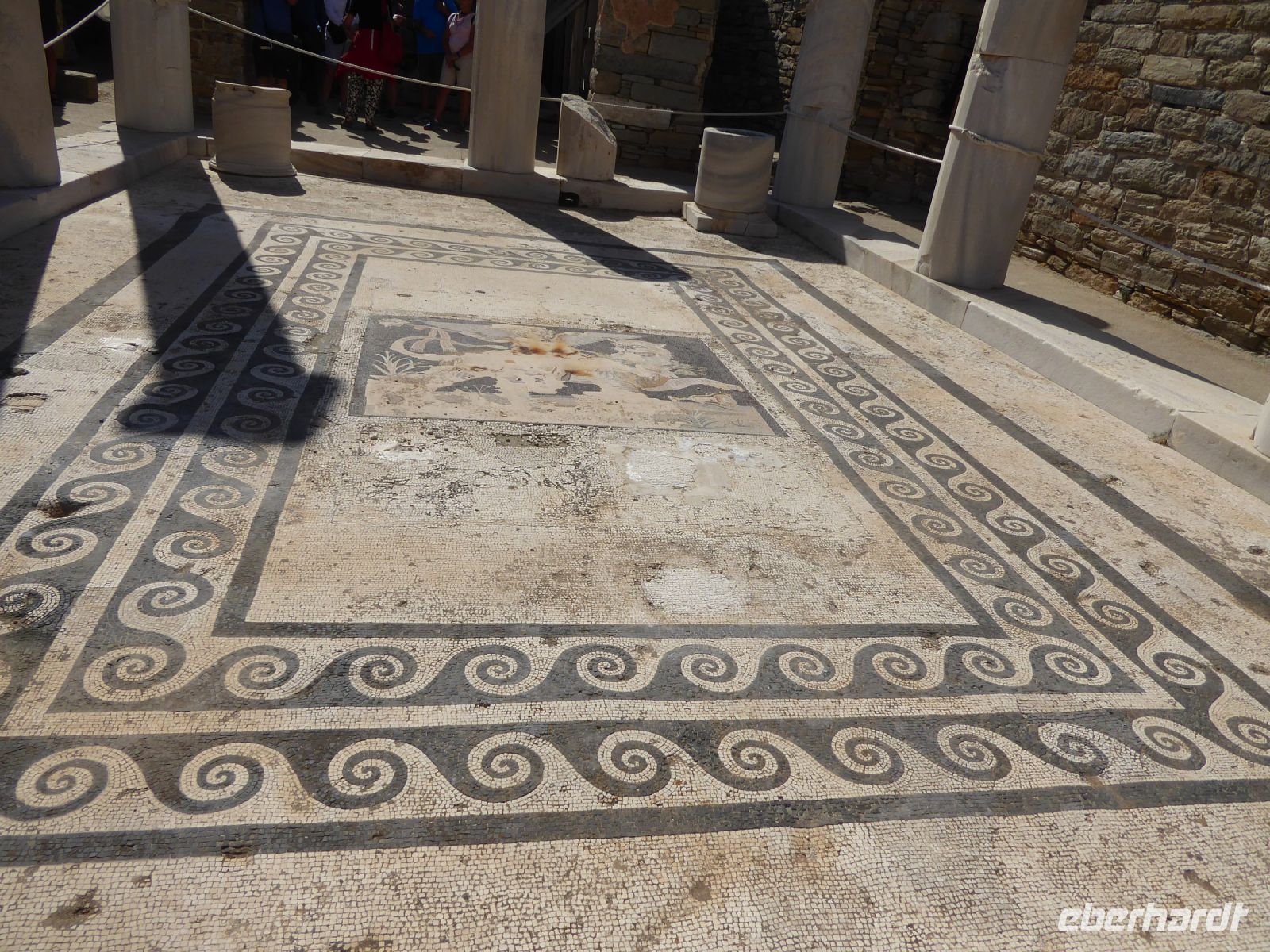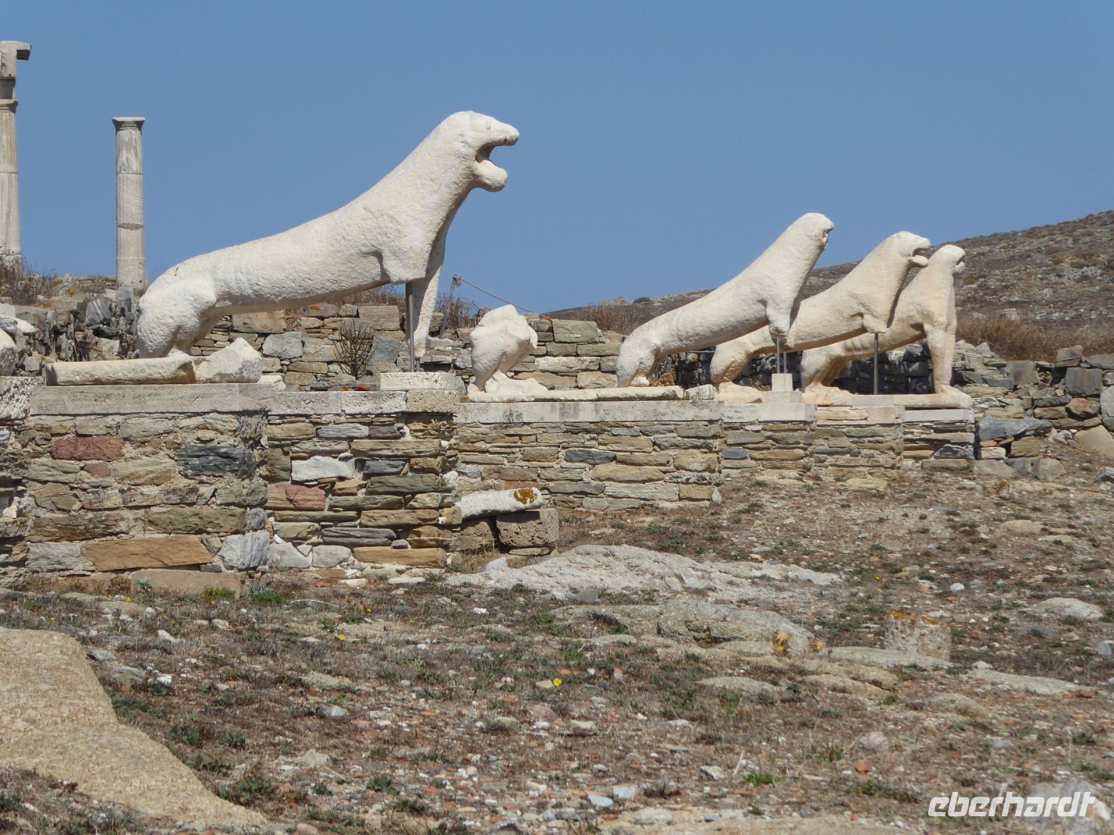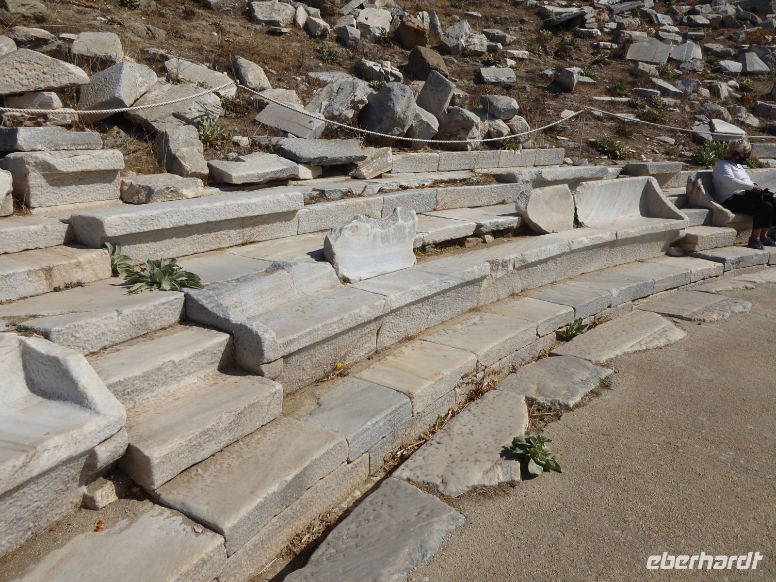 Kurz vor Mittag erreichte das Schiff den Hafen der unbewohnten Insel Delos. Der Geschichte nach war diese Insel das Zentrum der Kykladen, Geburtsstätte der antiken Götter Apollon und Artemis – eine heilige Insel, auf der Sterbliche nicht gestorben und nicht geboren werden durften. Die ganze Insel ist seit 1990 auf der Liste der UNESCO als Weltkulturerbe.