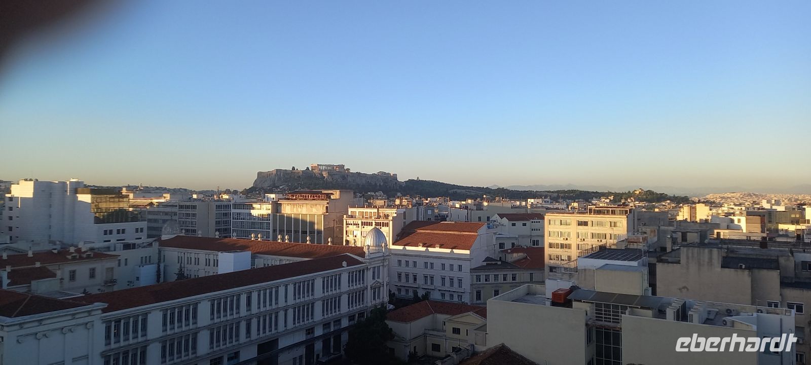 Der zweite Reisetag beginnt mit einem tollen Frühstück auf der Dachterrasse des Hotel. Große Auswahl an Speisen, die wunderbare Aussicht auf Athen und die Akropolis – ein wirklich guter Start in den Tag!