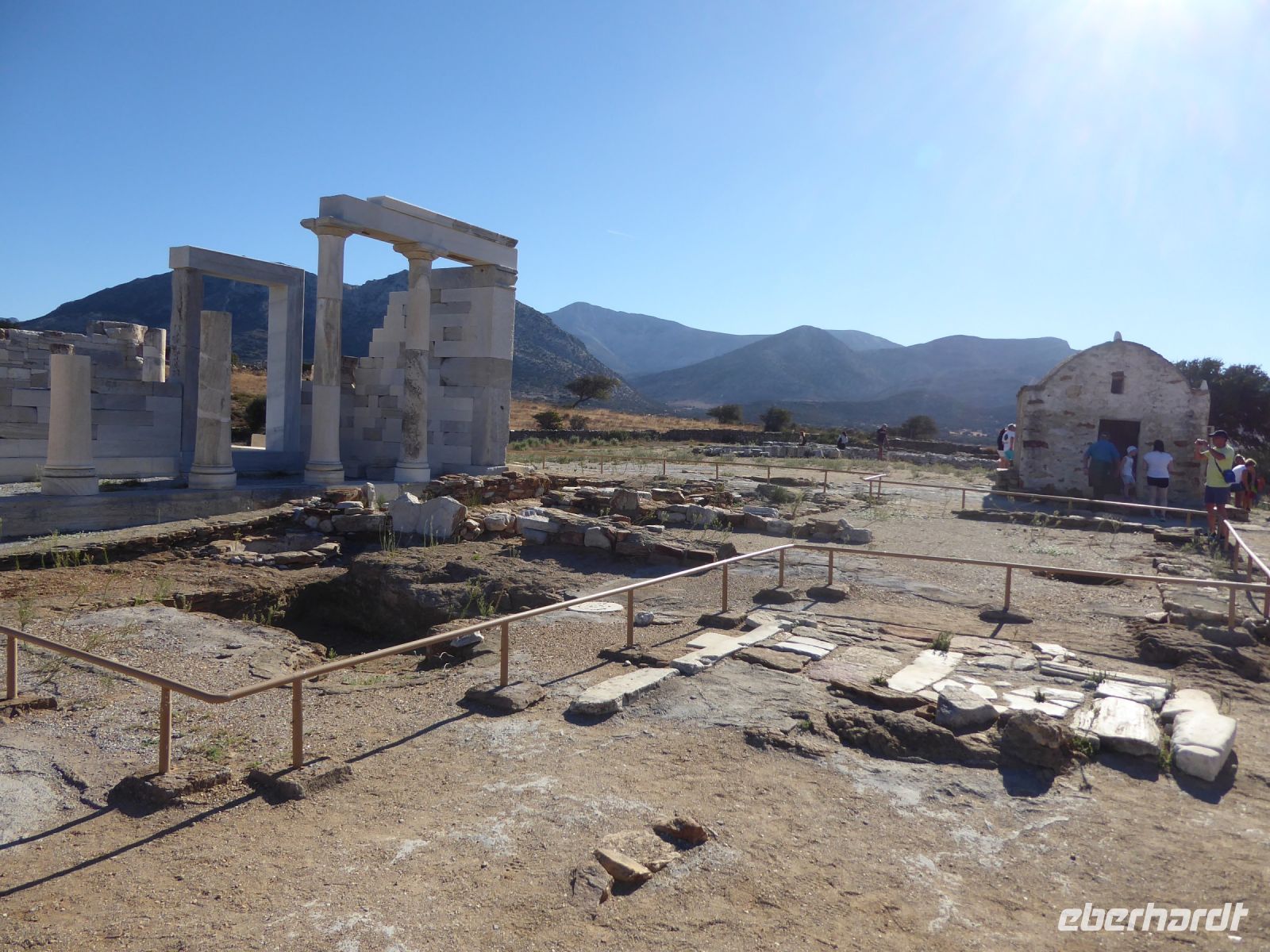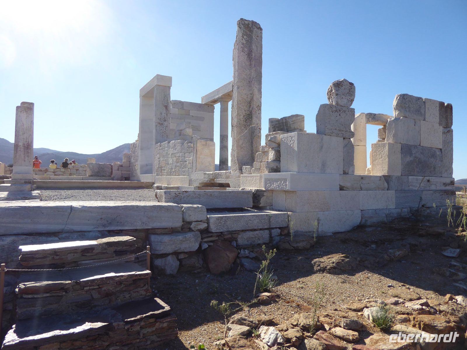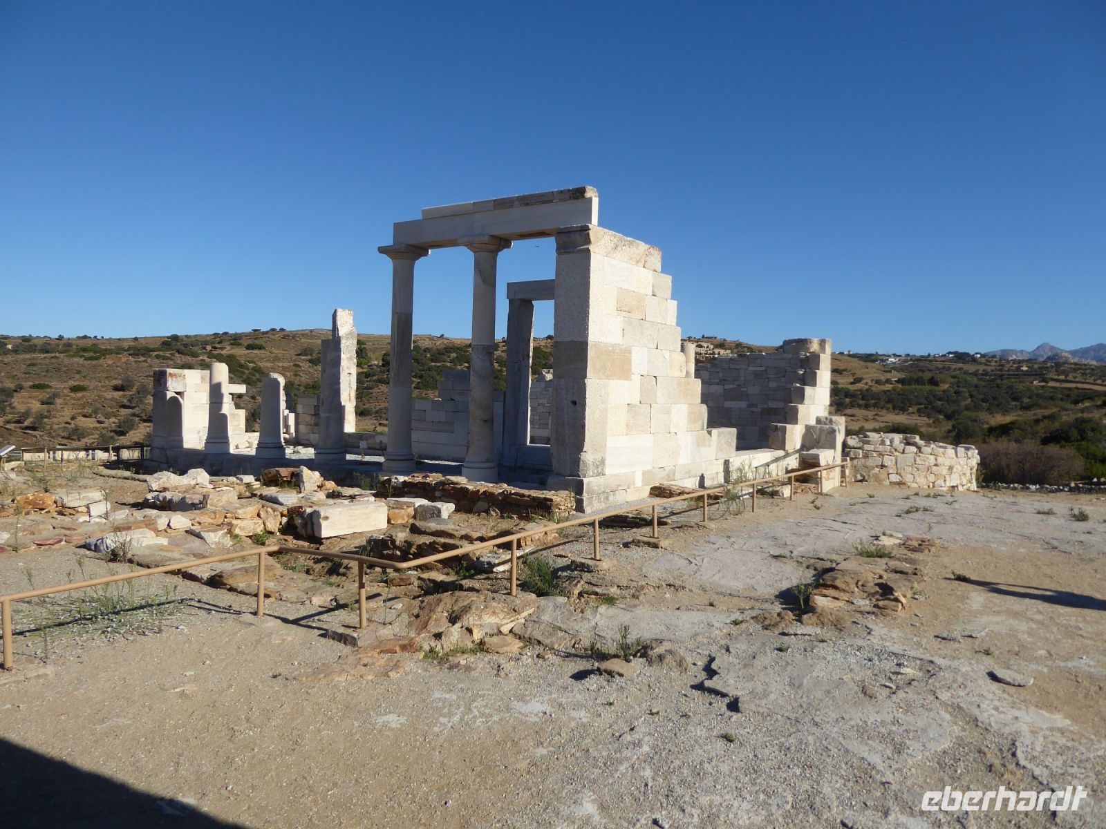 Zuerst zum Demeter-Tempel, einem vergleichsweise kleinen, spätarchaischen (ca. 530 v.Chr.) Heiligtum aus naxischem Marmor, in Ionischem Stil gebaut. Ausgegraben, erforscht und teilweise restauriert wurde der Tempel von Mitarbeitern der Universität Athen und der TU München. Das kleine, angeschlossene Museum zeigt ausgegrabene Exponate aus der Tempelanlage.
