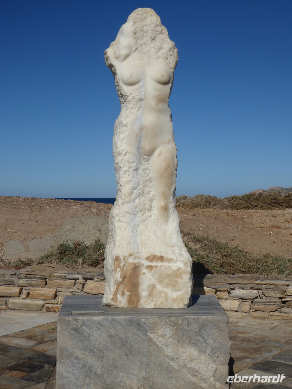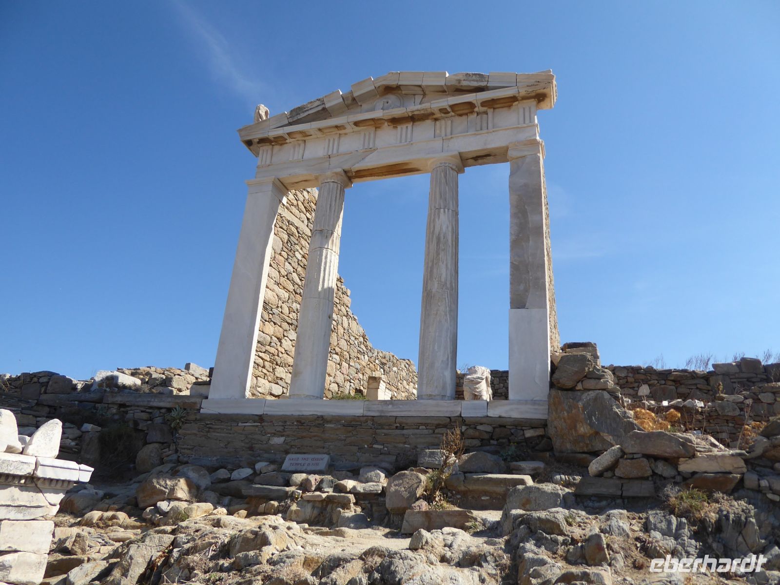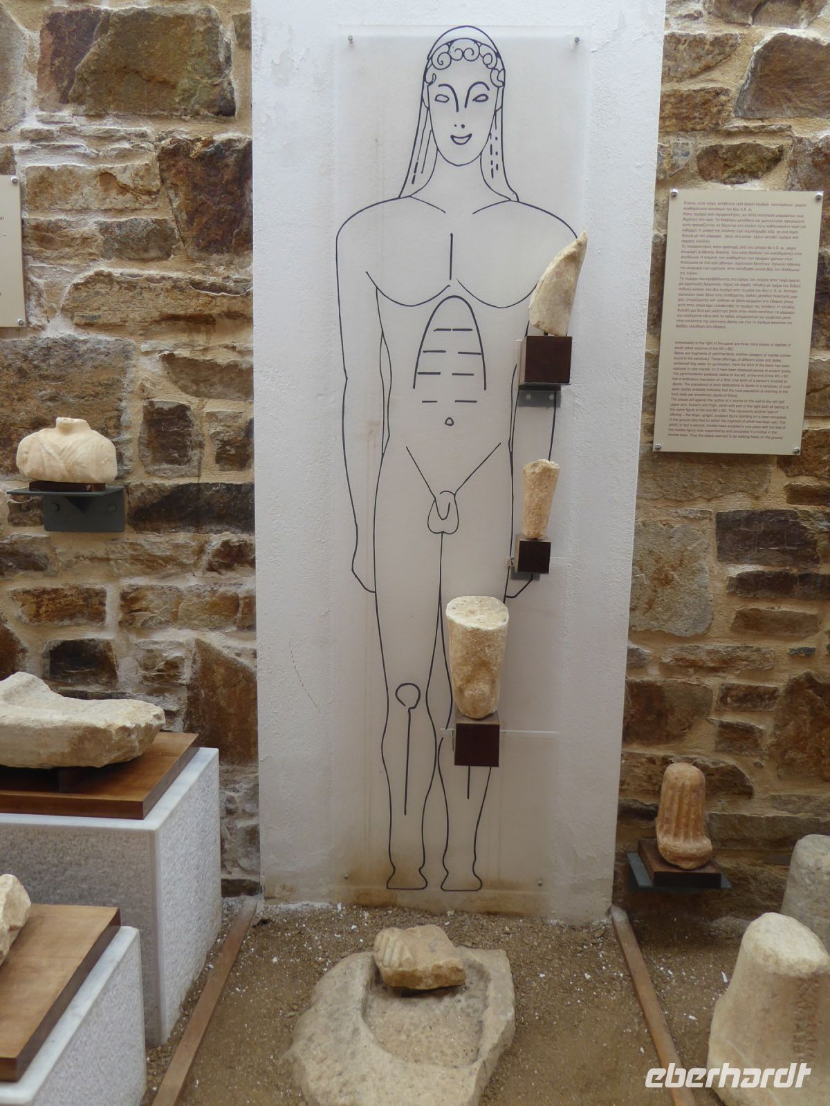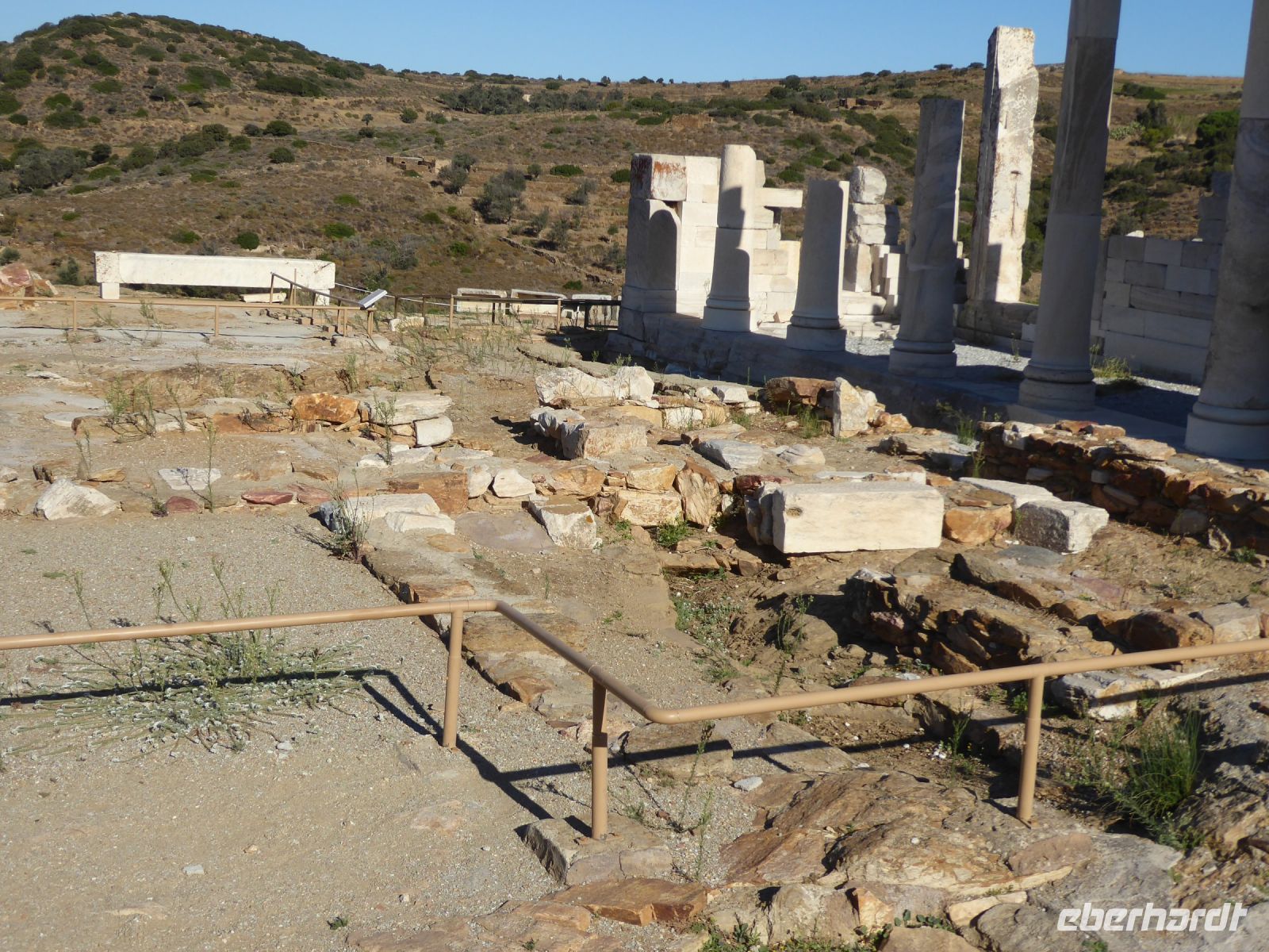 Zuerst zum Demeter-Tempel, einem vergleichsweise kleinen, spätarchaischen (ca. 530 v.Chr.) Heiligtum aus naxischem Marmor, in Ionischem Stil gebaut. Ausgegraben, erforscht und teilweise restauriert wurde der Tempel von Mitarbeitern der Universität Athen und der TU München. Das kleine, angeschlossene Museum zeigt ausgegrabene Exponate aus der Tempelanlage.