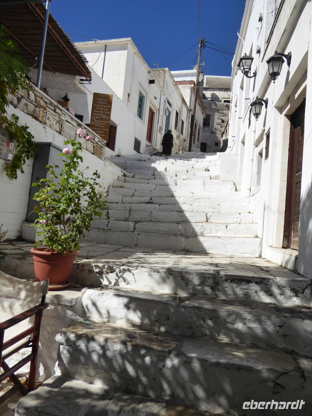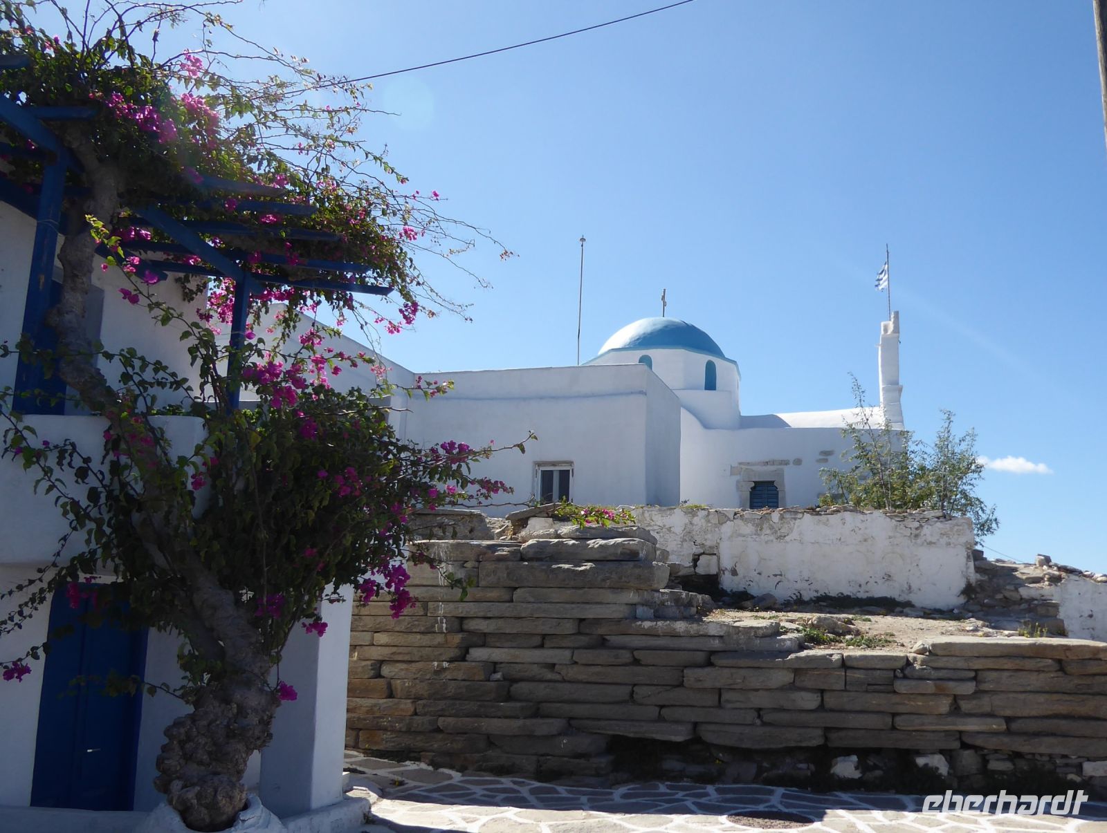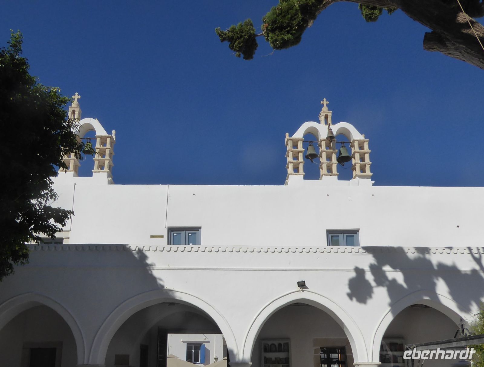Weiter geht es in die Berge nach idyllisches Dorf Lefkes im Zentrum der Insel mit einer beeindruckenden Kirche, Agia Triada und dem „Taubenturm“, aber auch dem autofreien, schönem Ortskern. Der Ort war einmal Hauptort der Insel bevor Parikia, verkehrsgünstiger am Meer gelegen, Hauptstadt wurde.