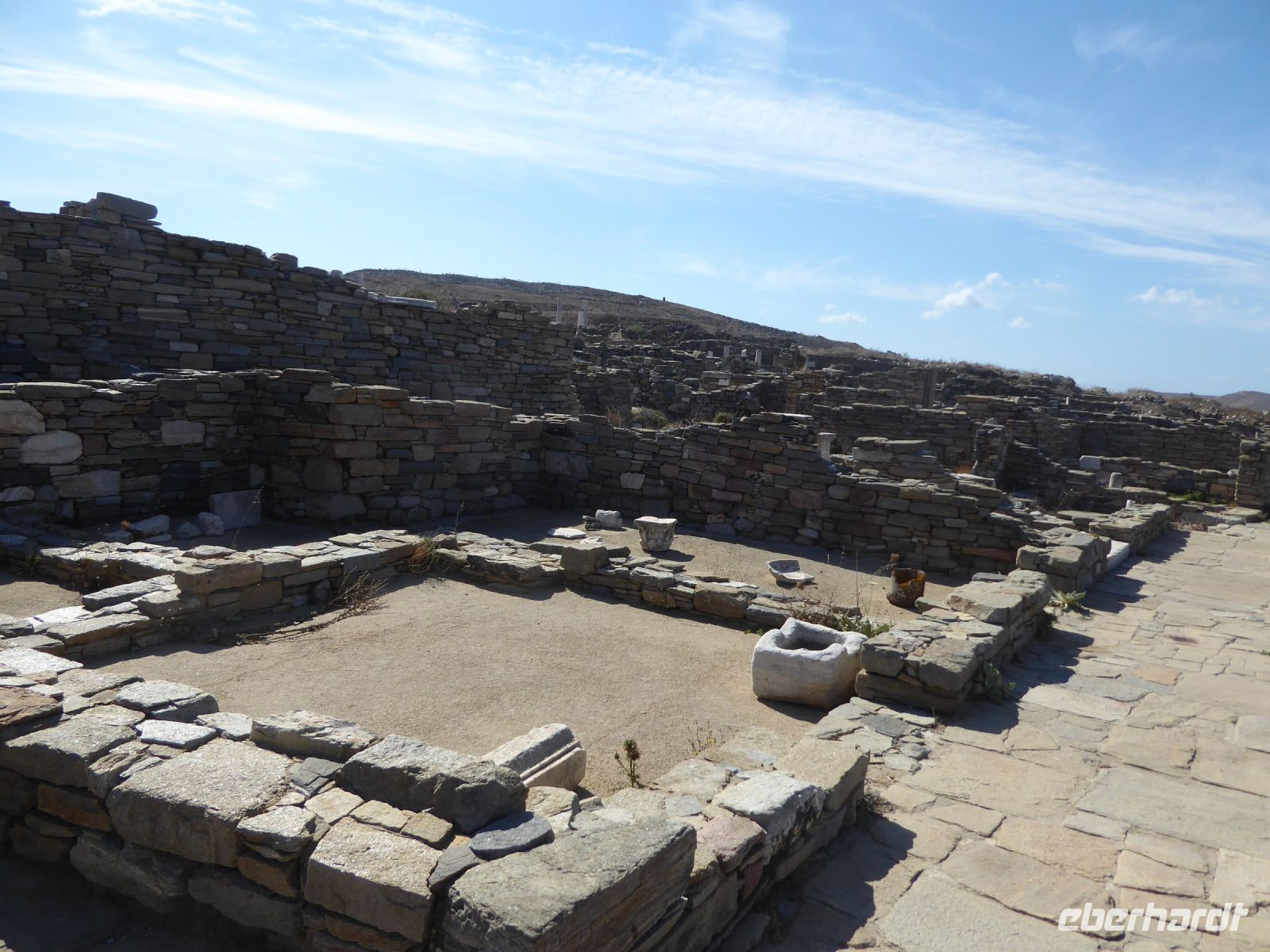 Unser Guide Nikkos führte uns durch die Ausgrabungen und Reste der Tempel und Häuser und erklärte sie aus der Mythologie und Geschichte heraus. Über diese Ausgrabungsstätte sind Bücher geschrieben worden, so umfassend sind die Ausgrabungen.